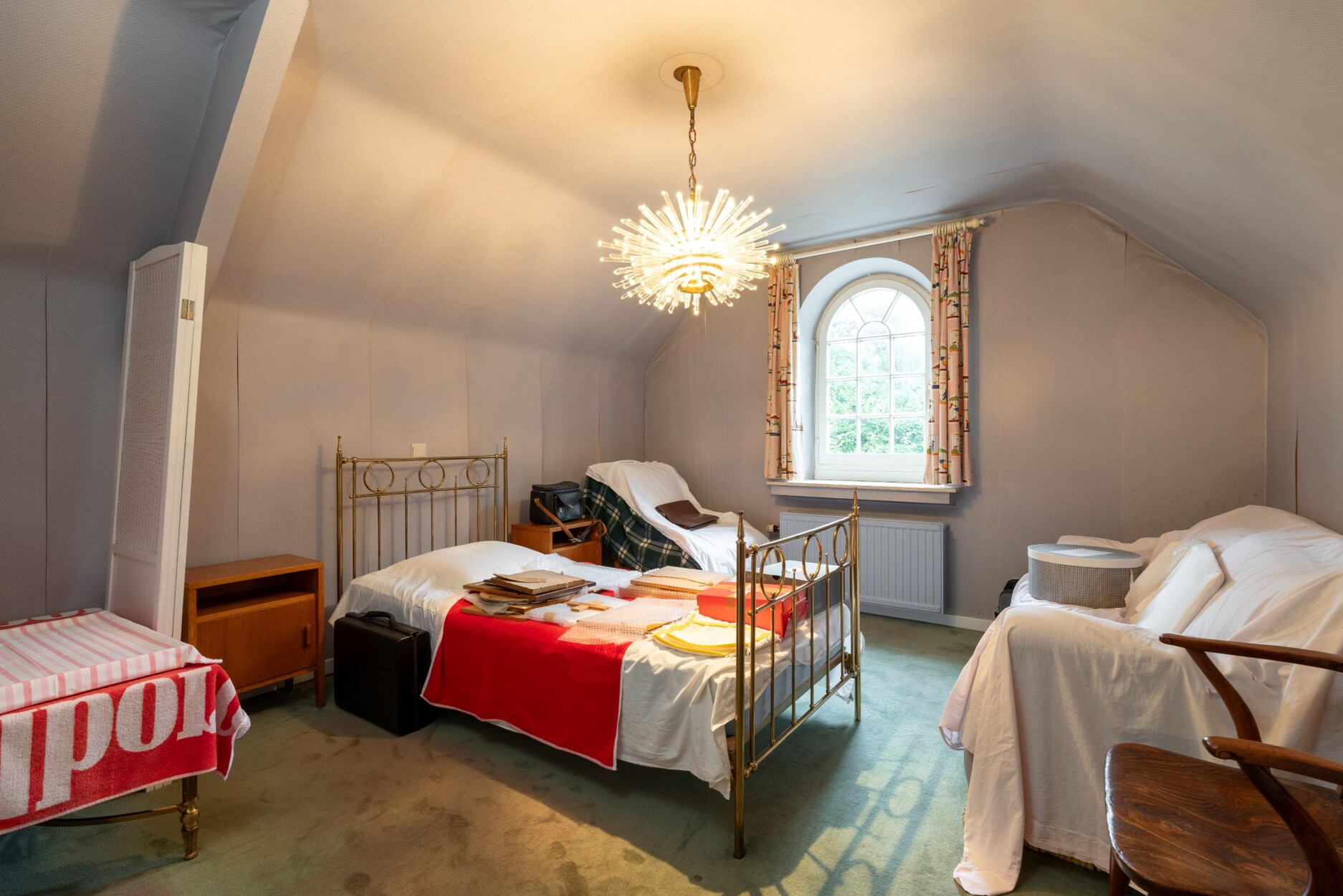De vaste trap brengt ons tot de 2e verdieping met hier een kleine overloop. Deze brengt ons tot de 6e slaapkamer met eigen douchekamer. Het overige deel is een ontzettend ruime zolder (110 m²) met tal van mogelijkheden.