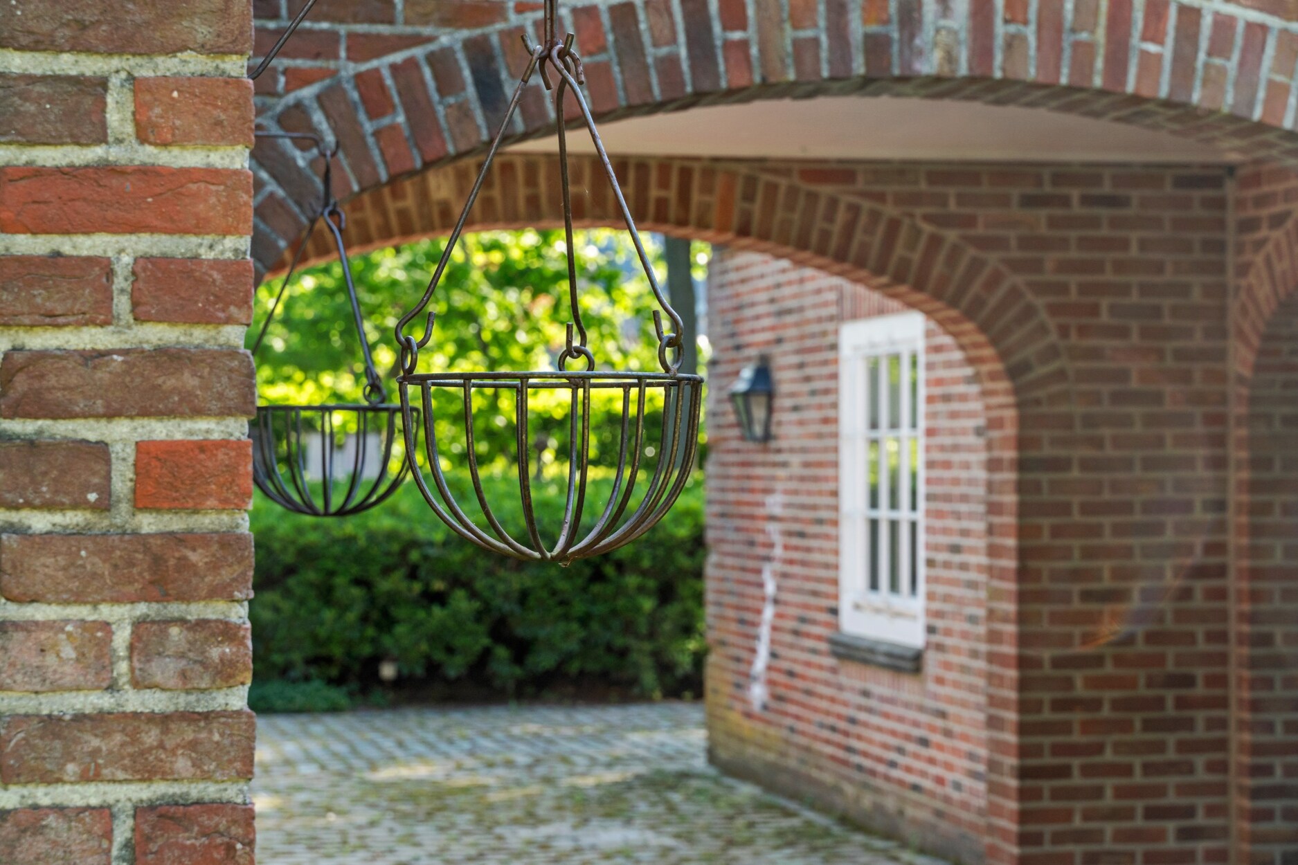 Via een overdekte doorgang naar de tuin komen we tot de 3e extra aangebouwde garage.