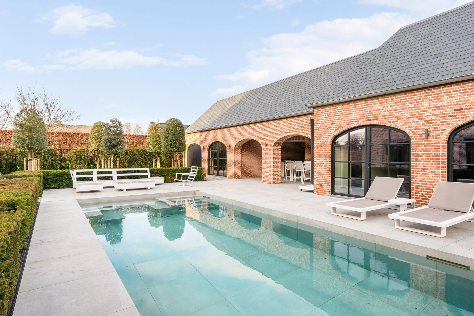 Deze uitzonderlijk energiezuinige manoir (E-peil 20) is gelegen in een doodlopende straat op wandelafstand van het bruisende centrum van Hoogstraten. De villa is zeer kwalitatief afgewerkt met de meest hoogwaardige materialen, naar ontwerp van gerenommeerde (interieur)architecten en interieurbouwer. De villa omvat een prachtige leefruimte, kantoor, speelkamer, bijkeuken, dubbele inpandige garage, maar liefst 5 grote slaapkamers, 3 badkamers, wasplaats en een zeer ruim bijgebouw/poolhouse met bar, buitenkeuken, douchekamer, technische ruimte/berging. Mooi aangelegd buitenzwembad met terrassen rondom maken dit eigendom compleet. Het geheel is volledig afgesloten met automatische toegangspoort.