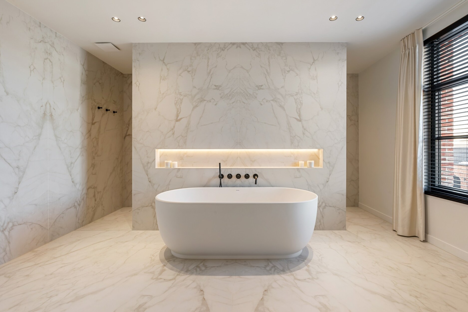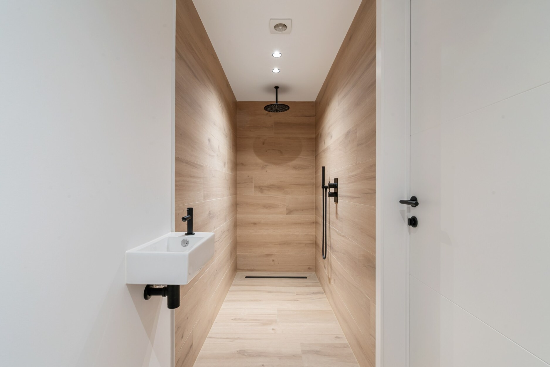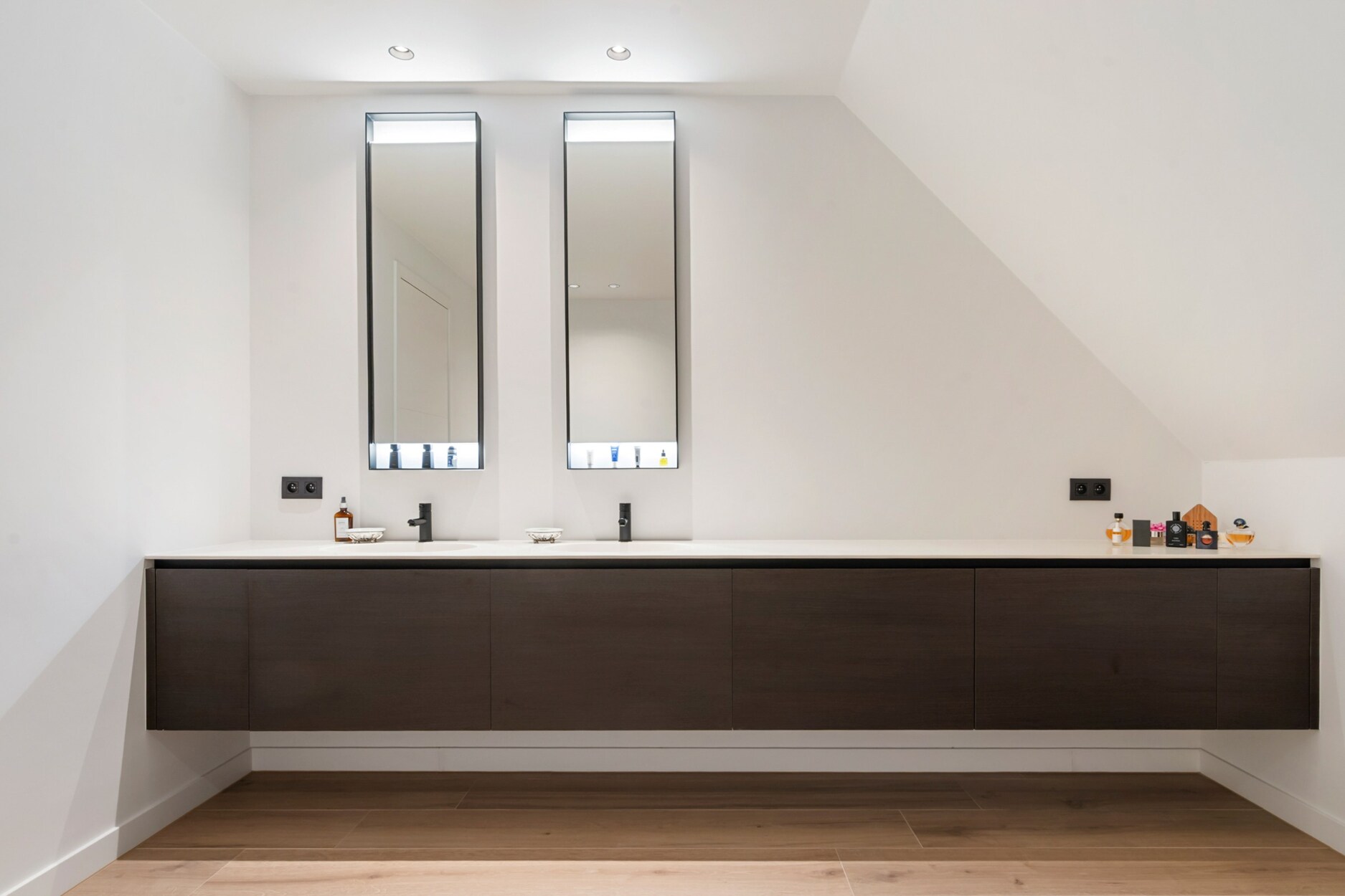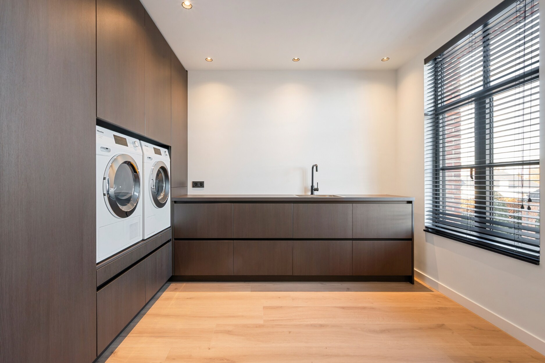Verder op deze verdieping treft u nog 2 ruime kinderkamers (21 m² - 19 m²), dewelke samen een badkamer delen, ingericht met ligbad, dubbele wastafel en douche. Apart toilet op de nachthal. De wasplaats bevindt zich eveneens op deze verdieping en is top ingericht met inbouwkasten, veel lades, spoelbak en aansluitingen voor was- en droogmachine op hoogte.