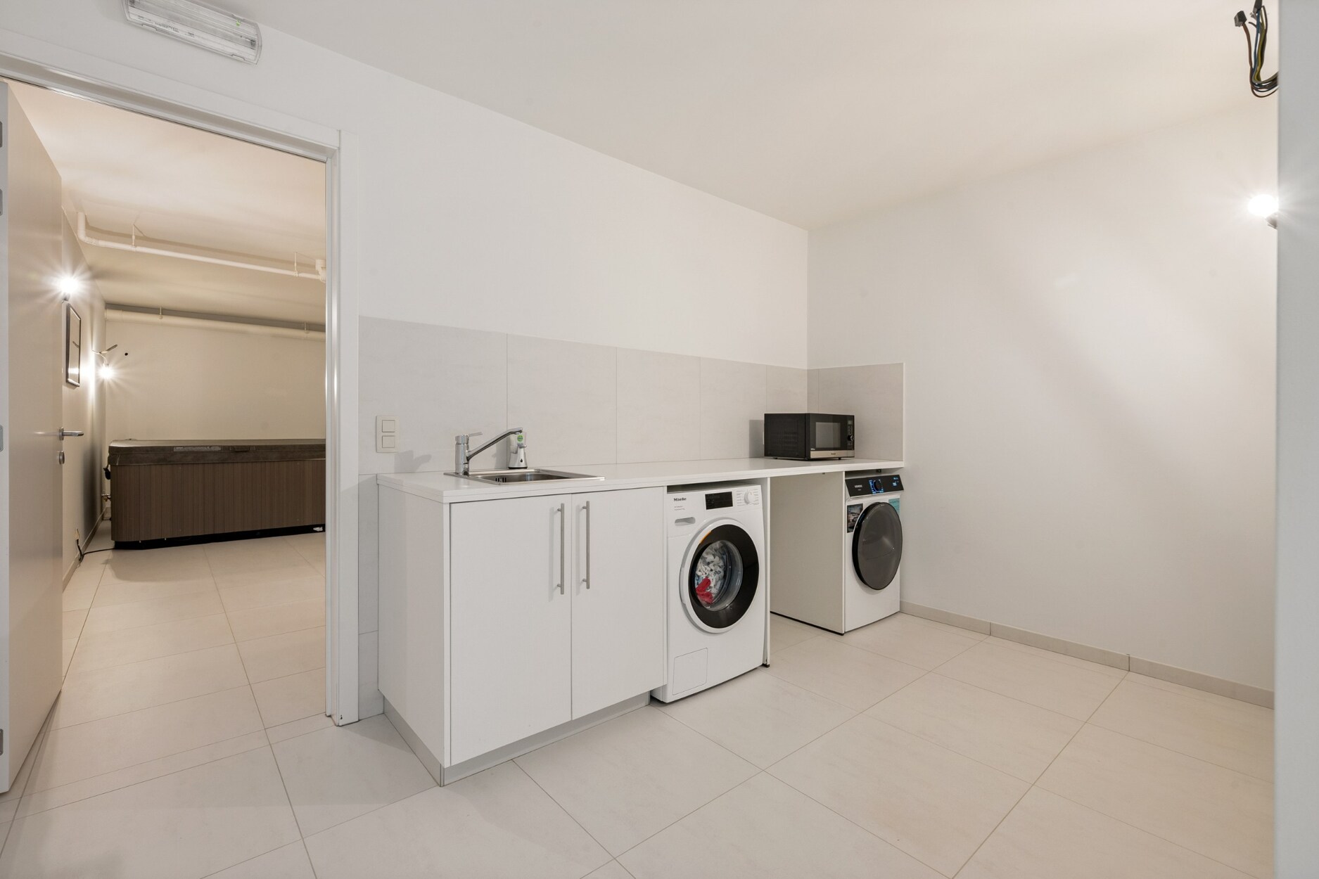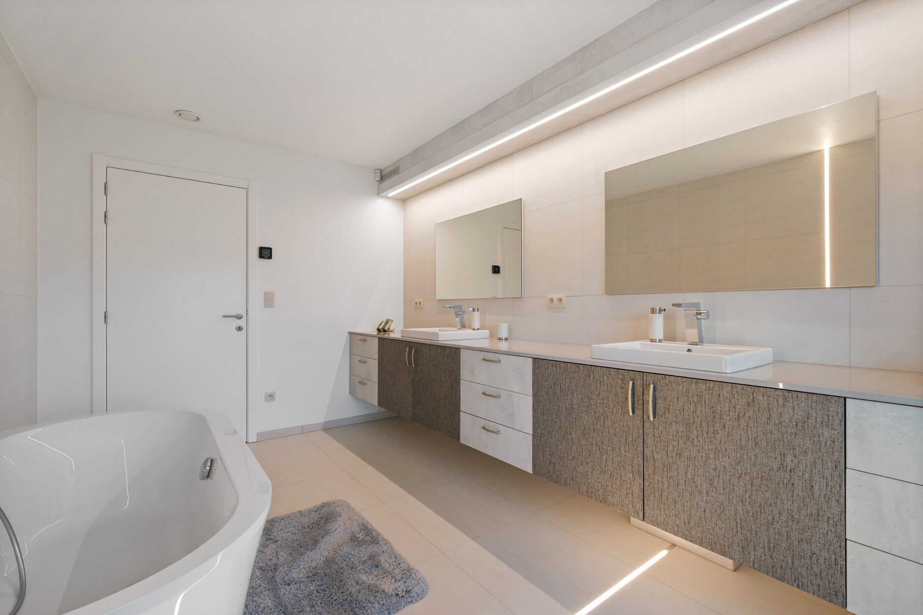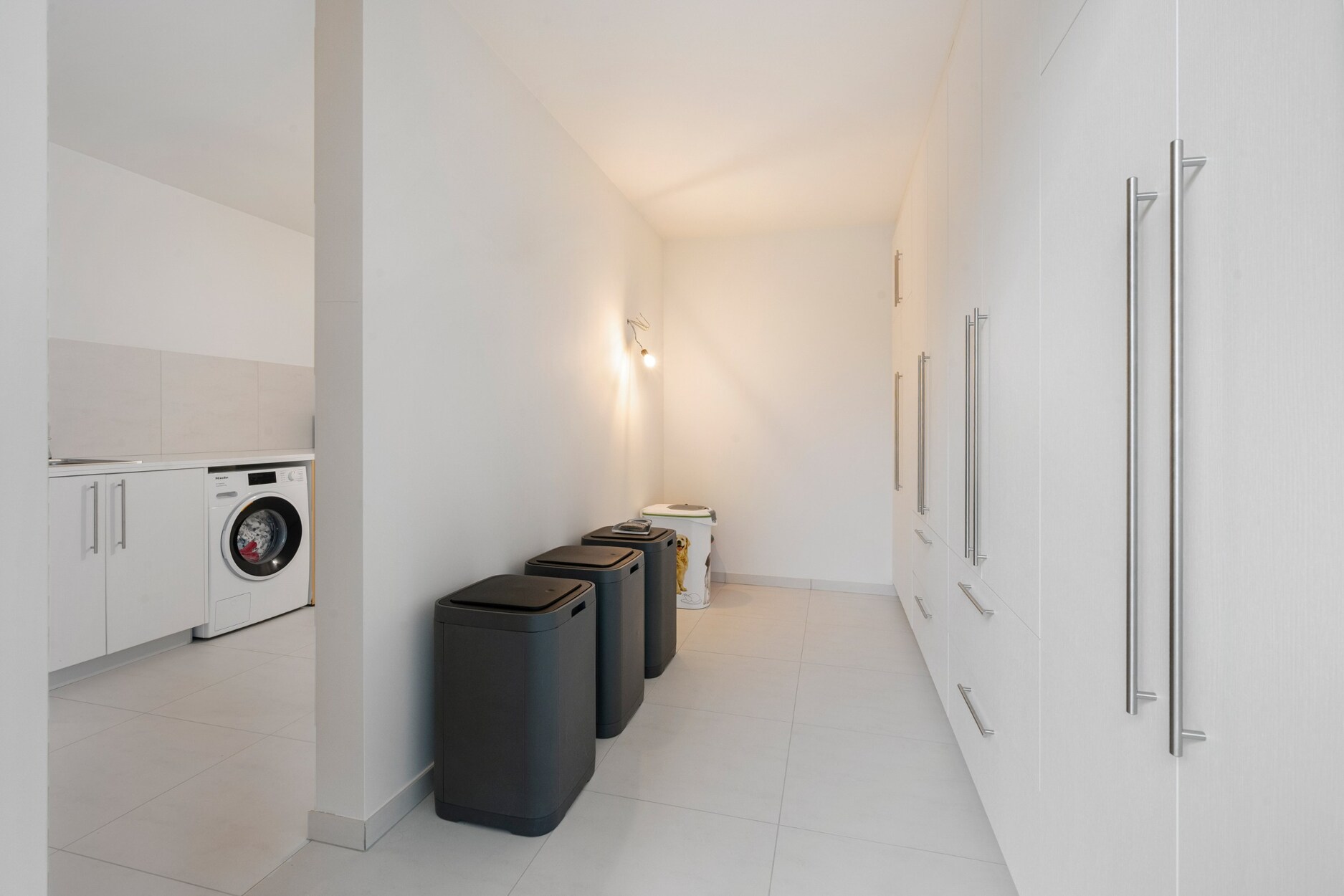 De woning werd gebouwd en afgewerkt met uiterst kwalitatieve materialen, is perfect onderhouden en beschikt over talrijke maatwerkkasten, wat zorgt voor een strakke, tijdloze uitstraling en optimaal gebruiksgemak.