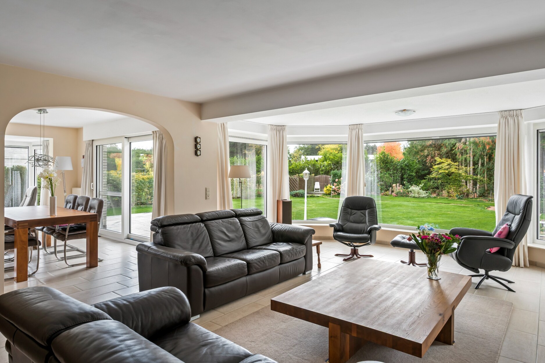 - 2 schuiframen vanuit eetkamer en slaapkamer naar de tuin
