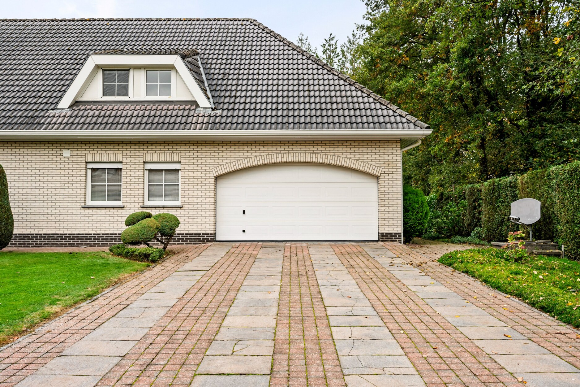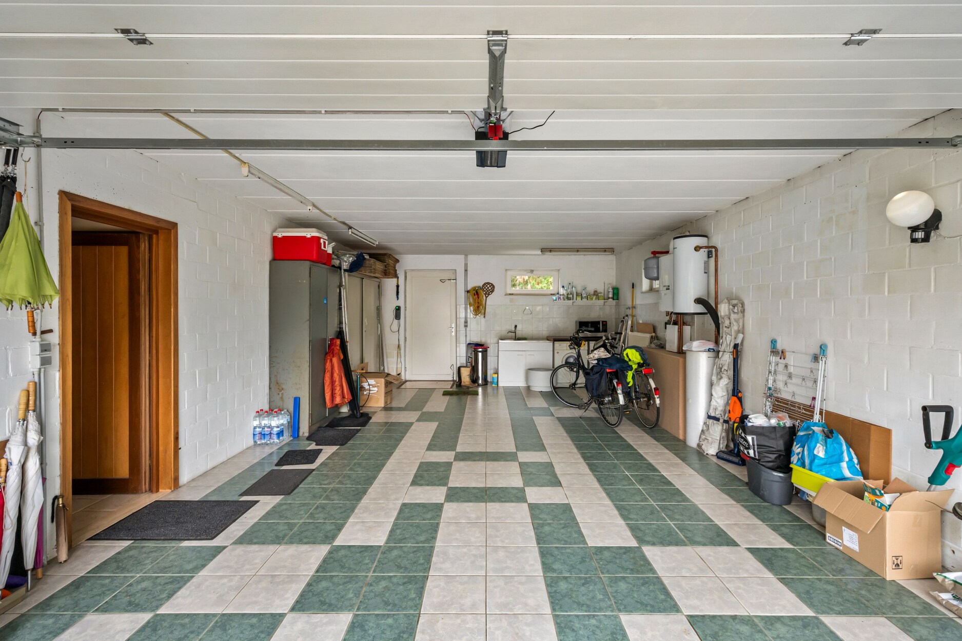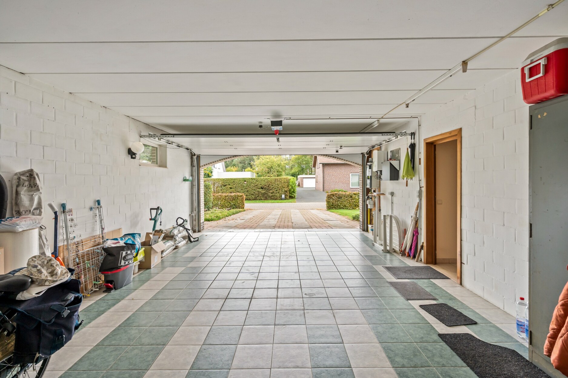 Voorts bevindt er zich de ruime dubbele garage met automatische poort en ruimte voor het plaatsen van wasmachine en droogkast.