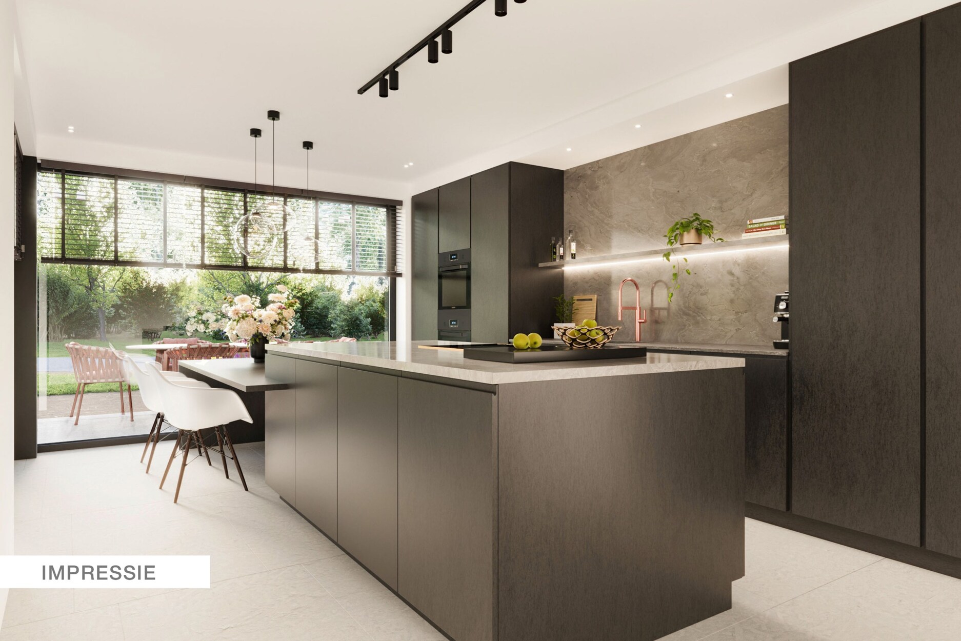De open keuken is luxueus uitgerust met onder meer een Quooker, BORA-kookplaat, keramisch werkblad en een royaal kookeiland. Aansluitend bevindt zich een praktische berging.