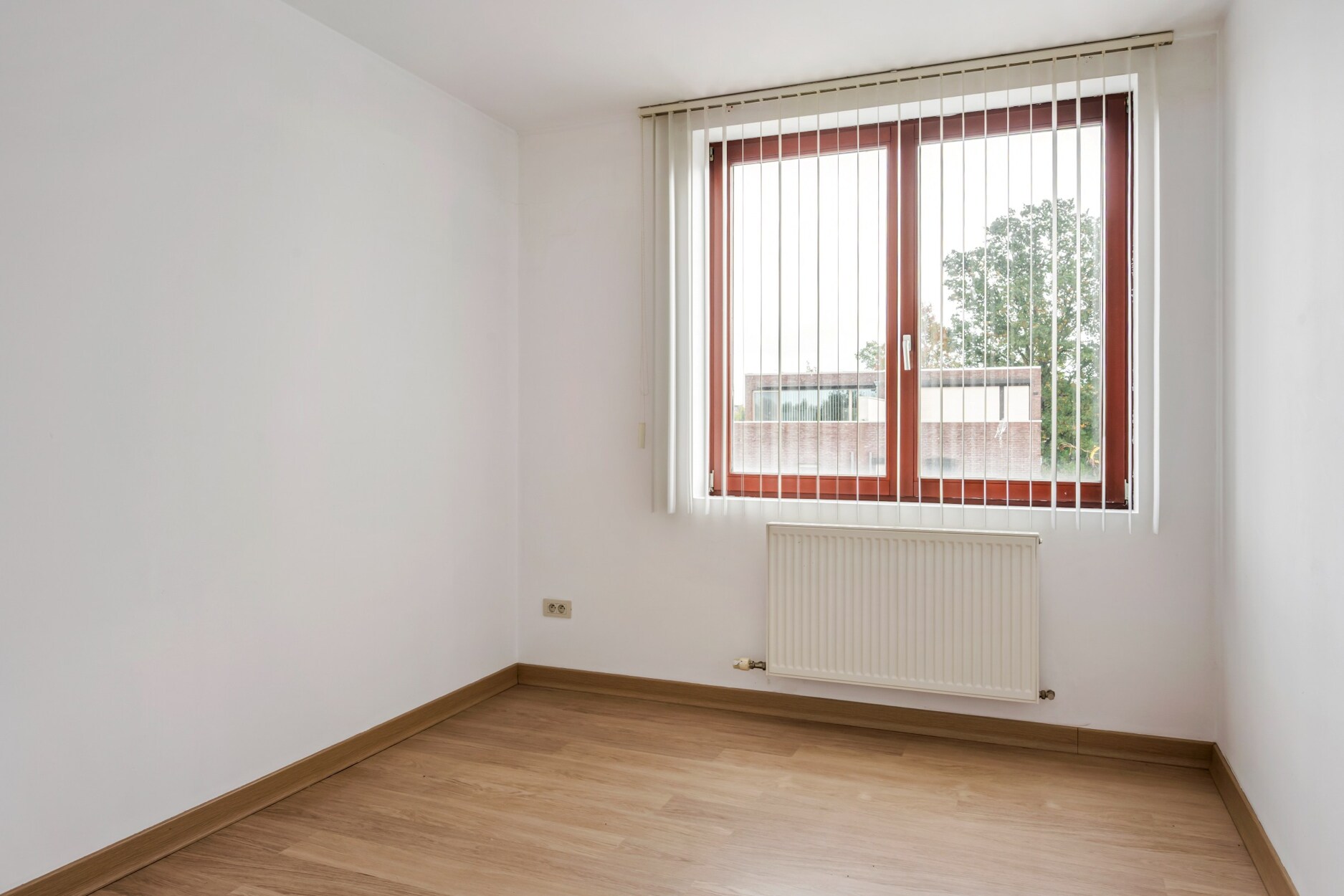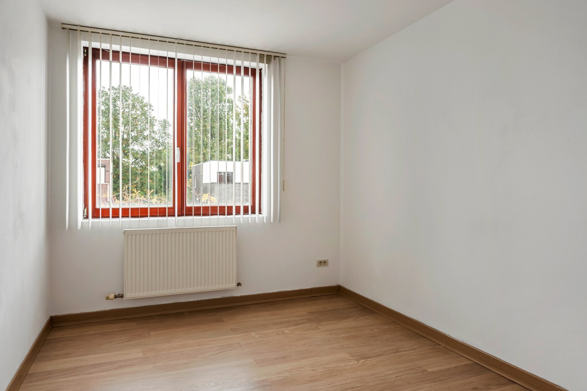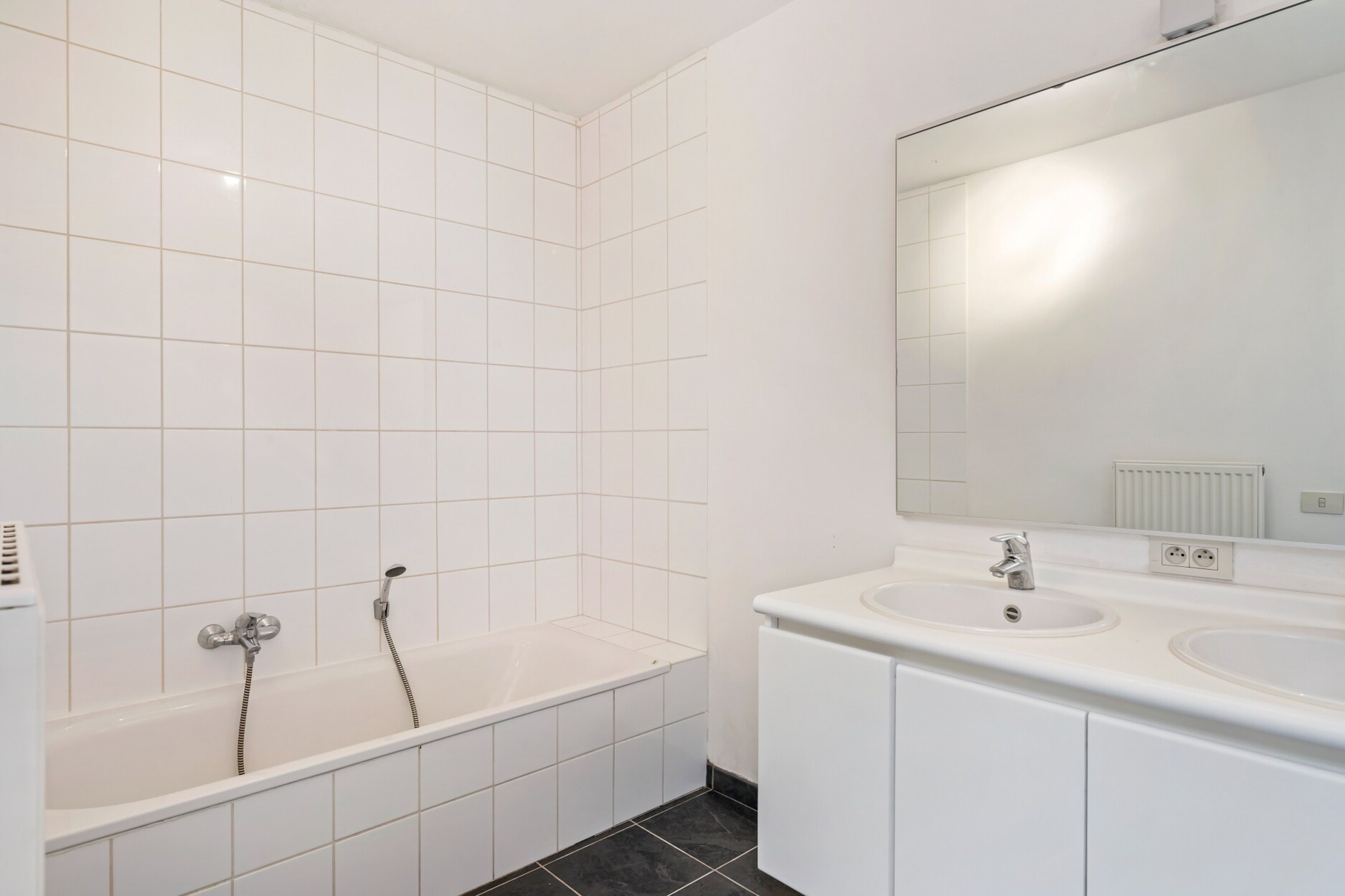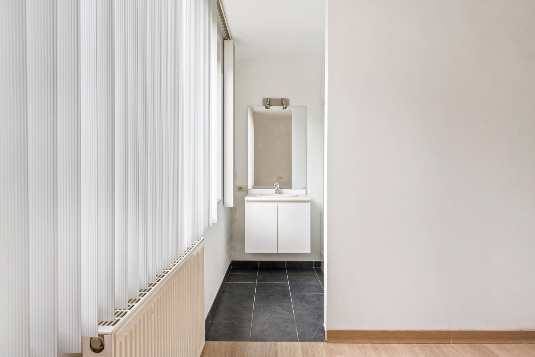 Vervolgens, lichtrijke leefruimte dankzij de hoge raampartijen en schuifdeur, met zich op de west-georiënteerde tuin. Op het split-level gedeelte bevindt zich de open keuken, met eethoek en aparte berging, aansluiting voor wasmachine en droogkast is hier voorzien.