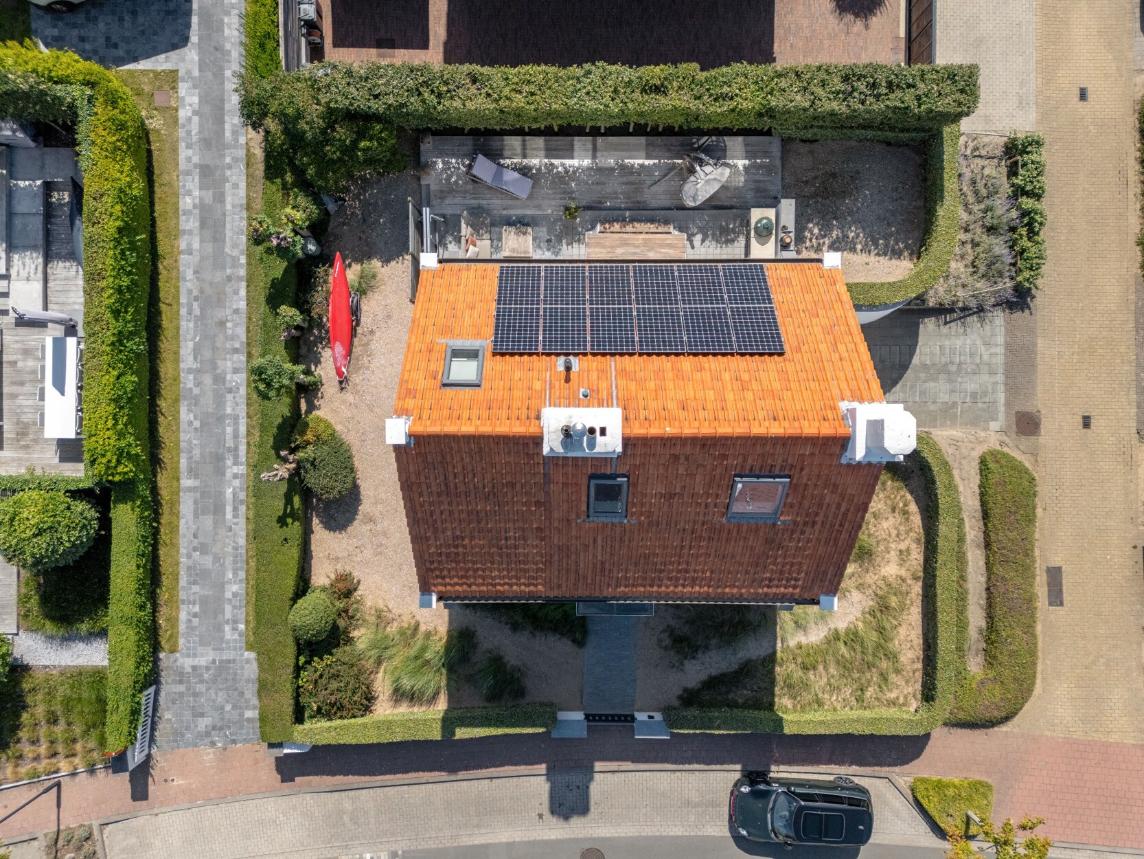 De villa is volledig onderkelderd, wat zorgt voor heel wat extra bergruimte. Daarnaast beschikt de woning over een uitzonderlijk ruime garage, toegankelijk via de oprit. Een bijkomende troef is de installatie van zonnepanelen, wat bijdraagt tot een gunstige EPC-score en lagere energiekosten.