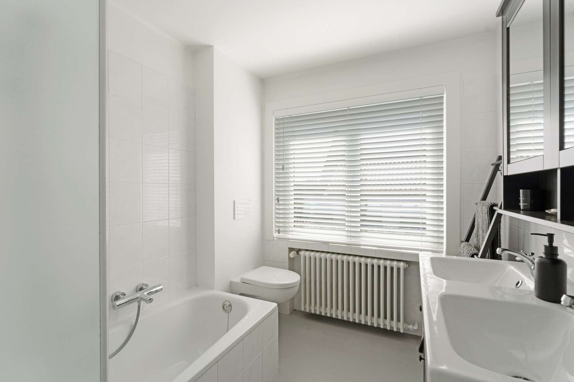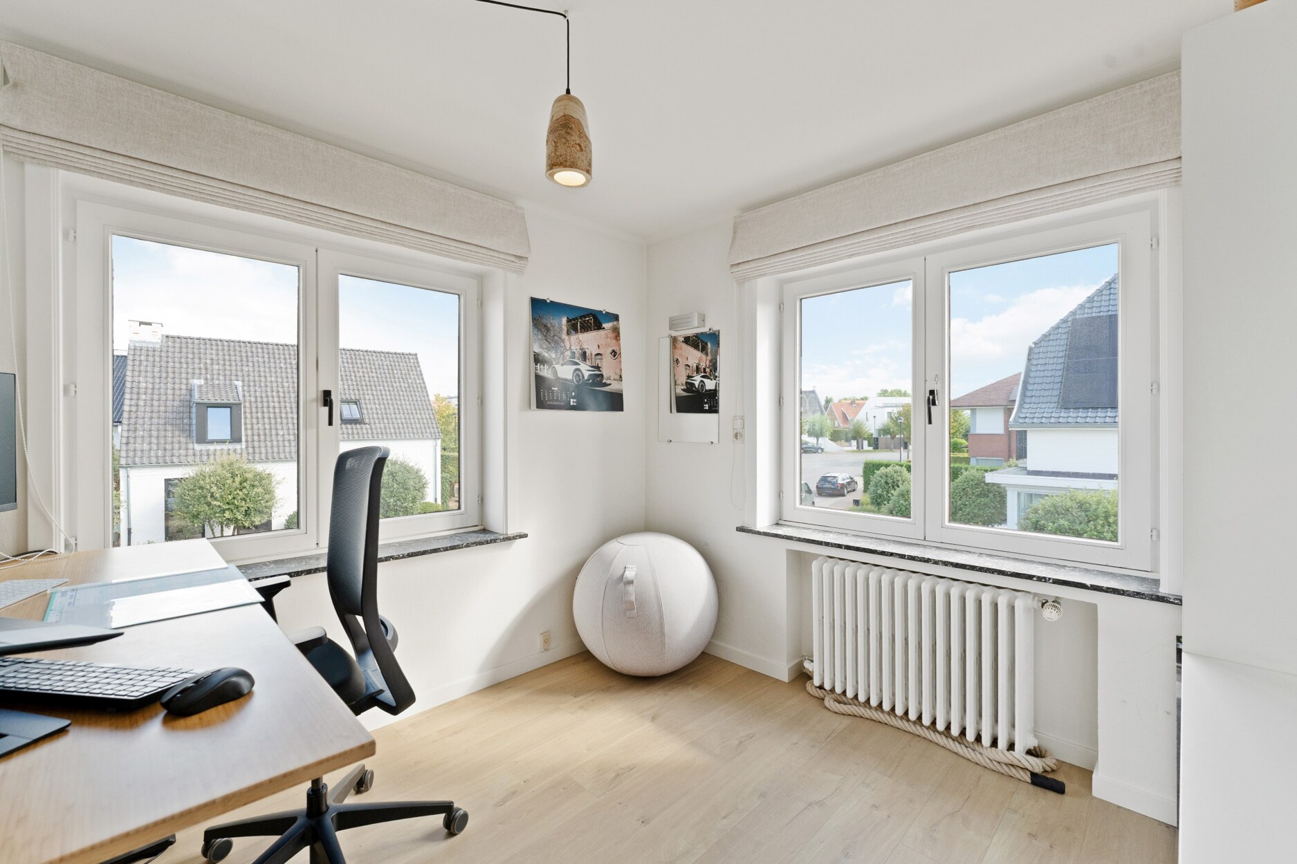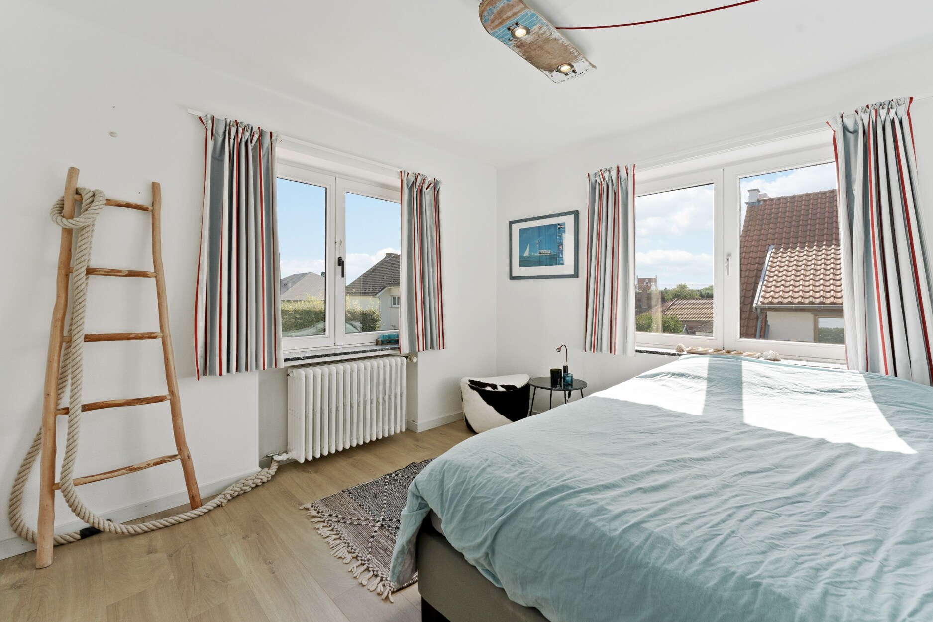 Op de eerste verdieping bereikt u via de authentieke trap een nachthal met drie volwaardige slaapkamers en een extra kamer die als kinderkamer, bureau of dressing kan worden ingericht. De badkamer is voorzien van een ligbad met douchescherm, dubbele wastafel en toilet.