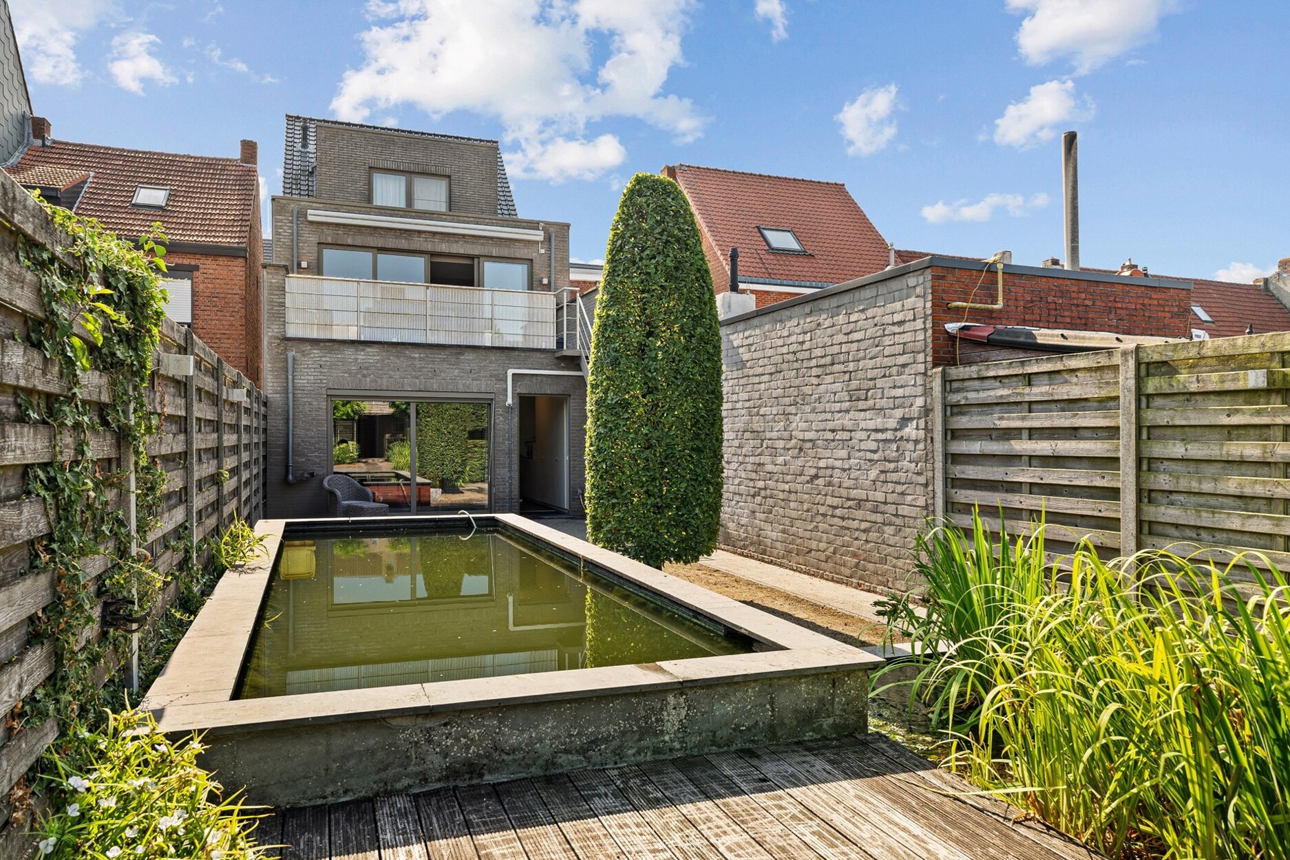 Dit pand doet momenteel dienst als een bankkantoor maar biedt ook tal van andere mogelijkheden. De commerciële ruimte heeft een totale oppervlakte van ca. 85m² en beschikt over een alarmsysteem. Centrale inkomhal met toilet en achteraan aparte kantoorruimtes, kitchenette met achteringang en bergruimte. Tevens een ruim zonneterras, volledig aangelegde tuin met vijver en bijgebouw/ overkapping achteraan. Het bijgebouw is voorzien van een buitenkeuken en sauna.