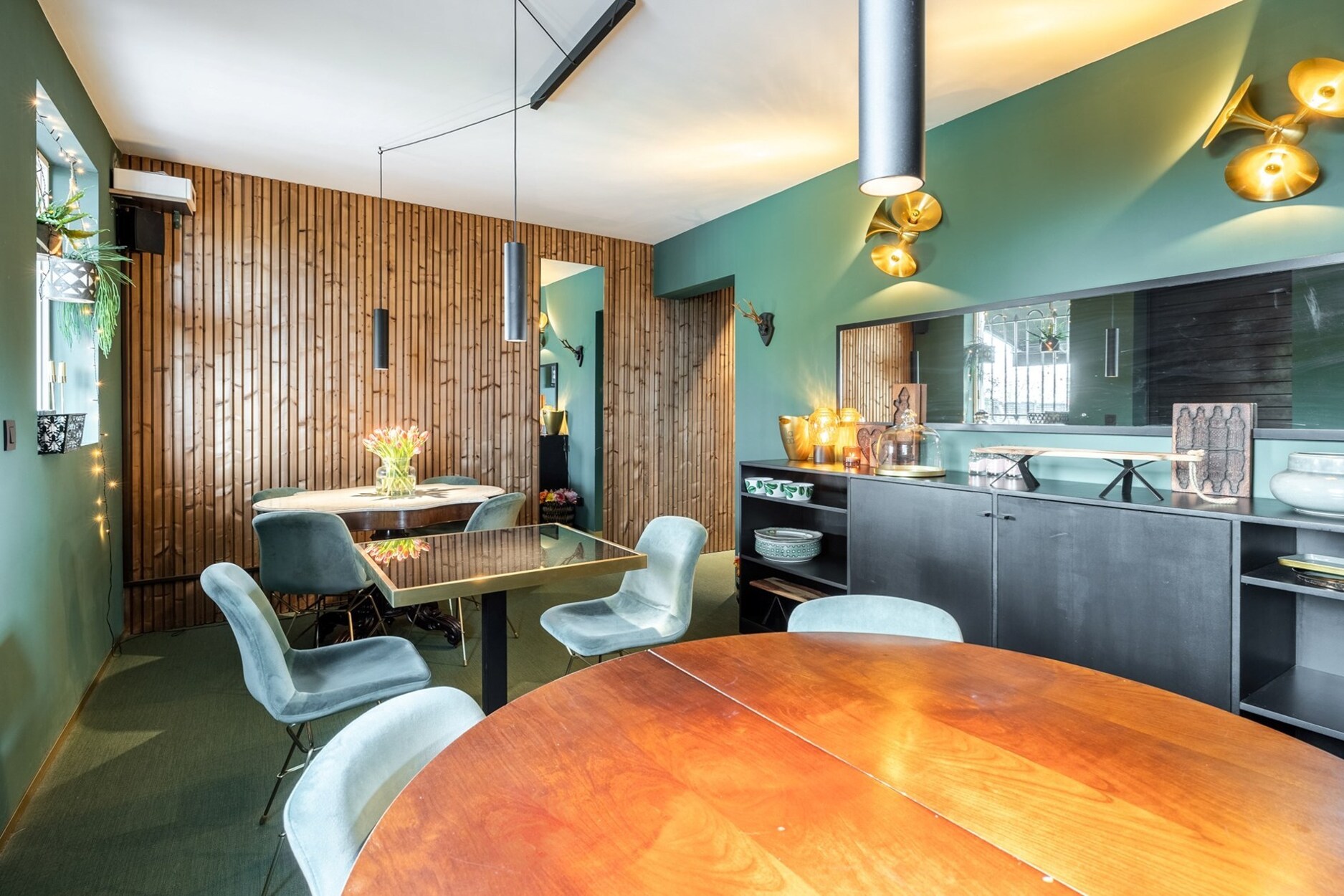 De leefruimte is volledig naar de tuin georiënteerd en geniet van veel natuurlijk licht dankzij de grote raampartijen. De huidige indeling biedt de mogelijkheid om de keuken opnieuw te integreren in de leefruimte, waardoor een royale open woonkeuken kan ontstaan die naadloos aansluit op het terras en de tuin.