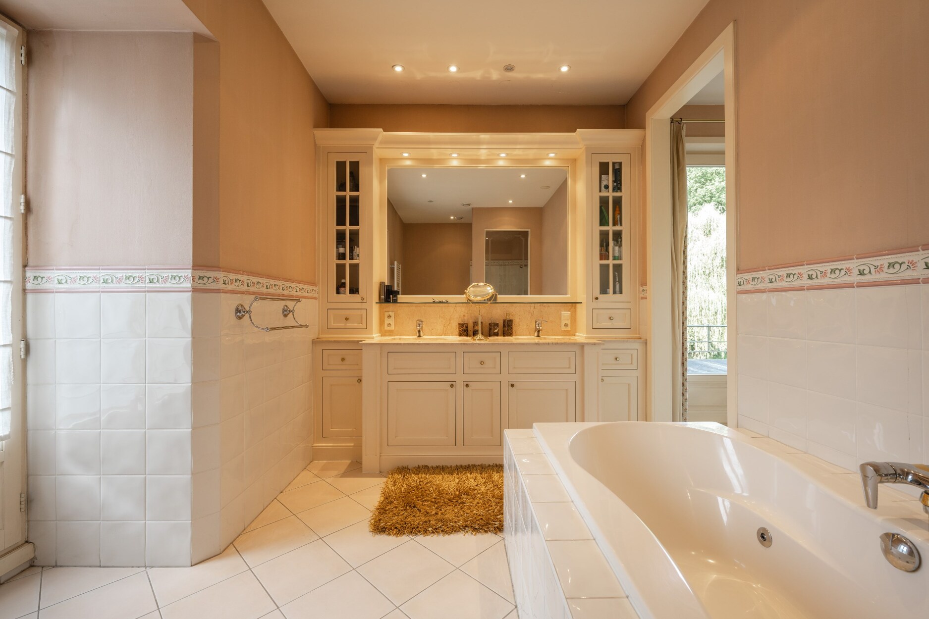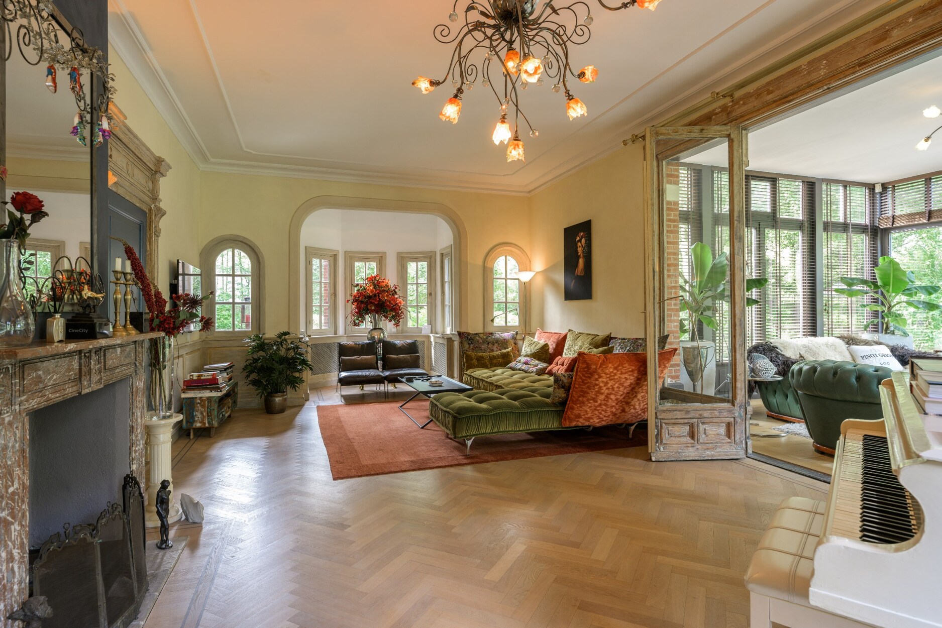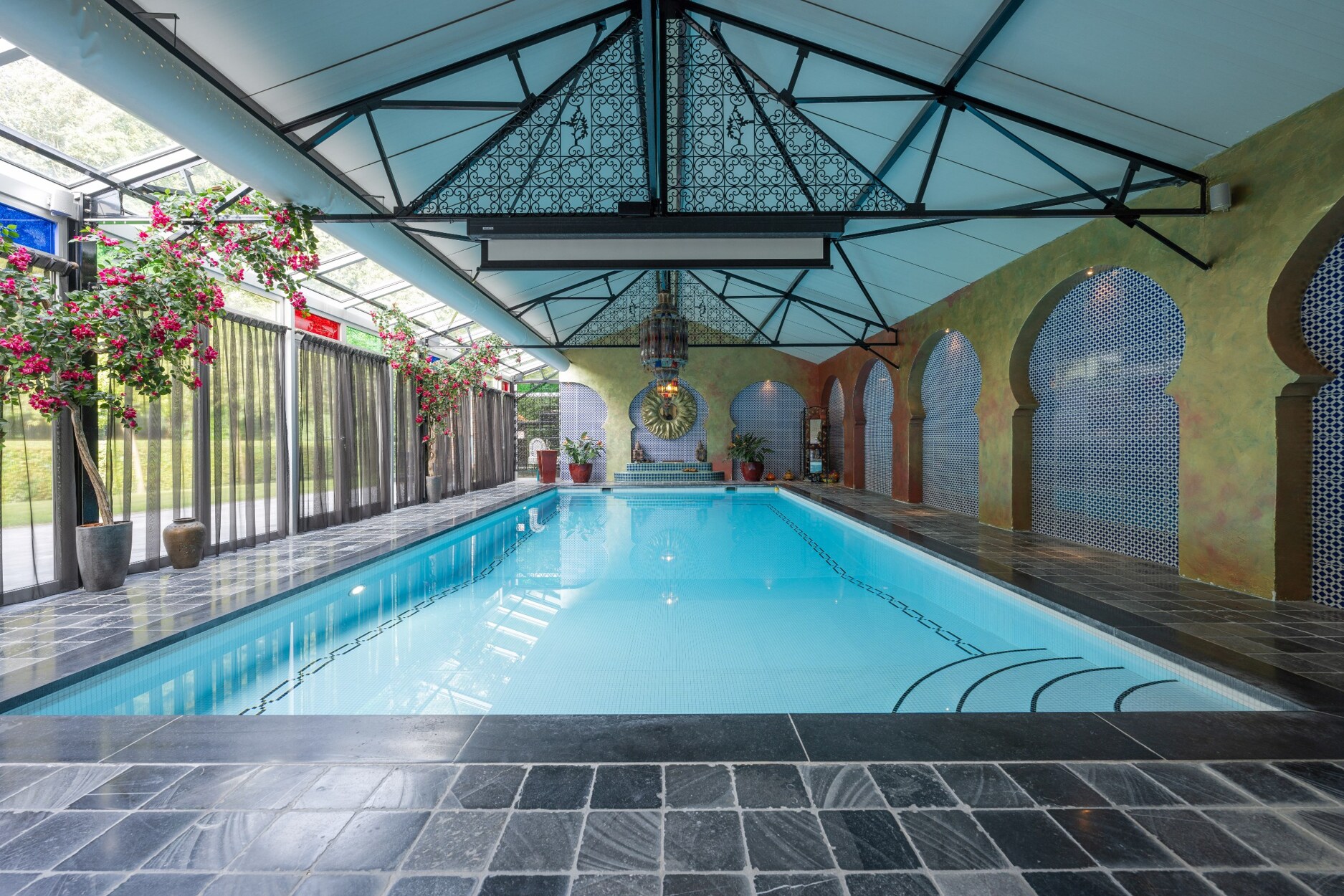 Aansluitend komt men tot de sfeerrijke orangerie uitgerust met grote raampartijen. De uitgebreide spa met sauna, hammam en binnenzwembad bevindt zich in het verlengde van de villa samen met nog een praktische wasruimte en kantoorruimte die dankzij de gigantische raampartij nauw verbonden is met de tuin waardoor men een echt buitengevoel krijgt.