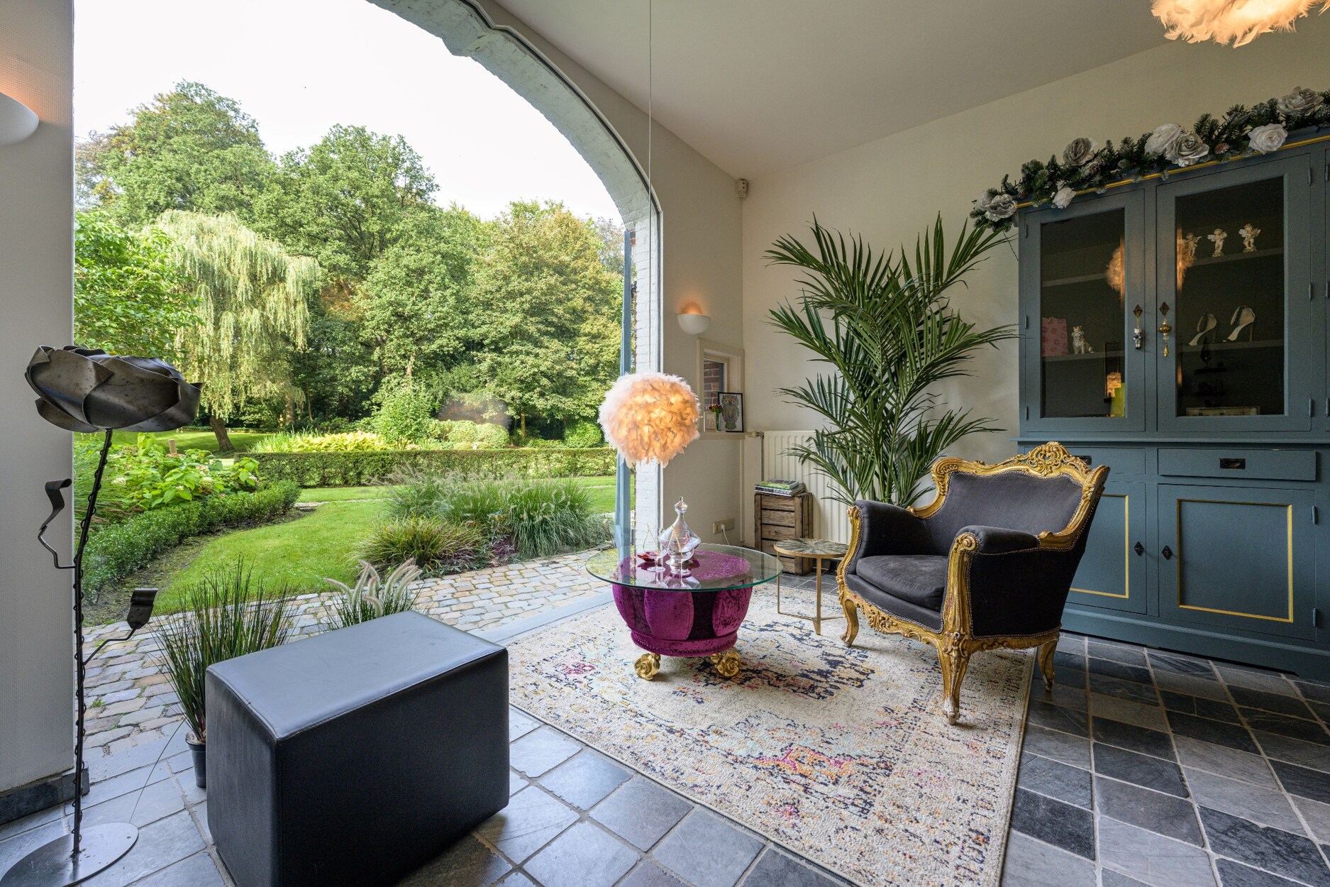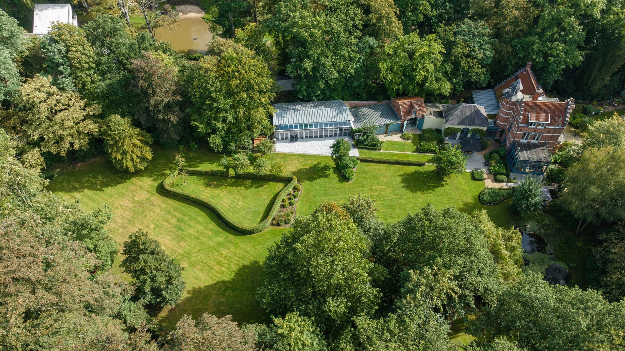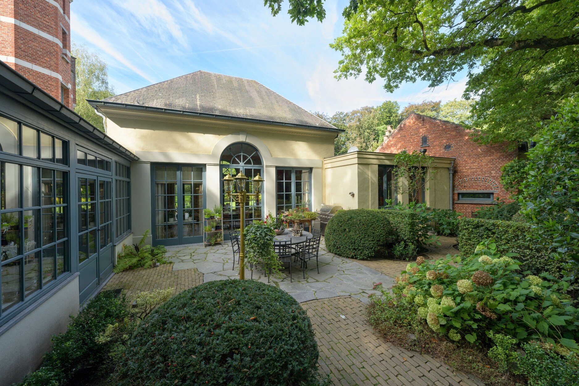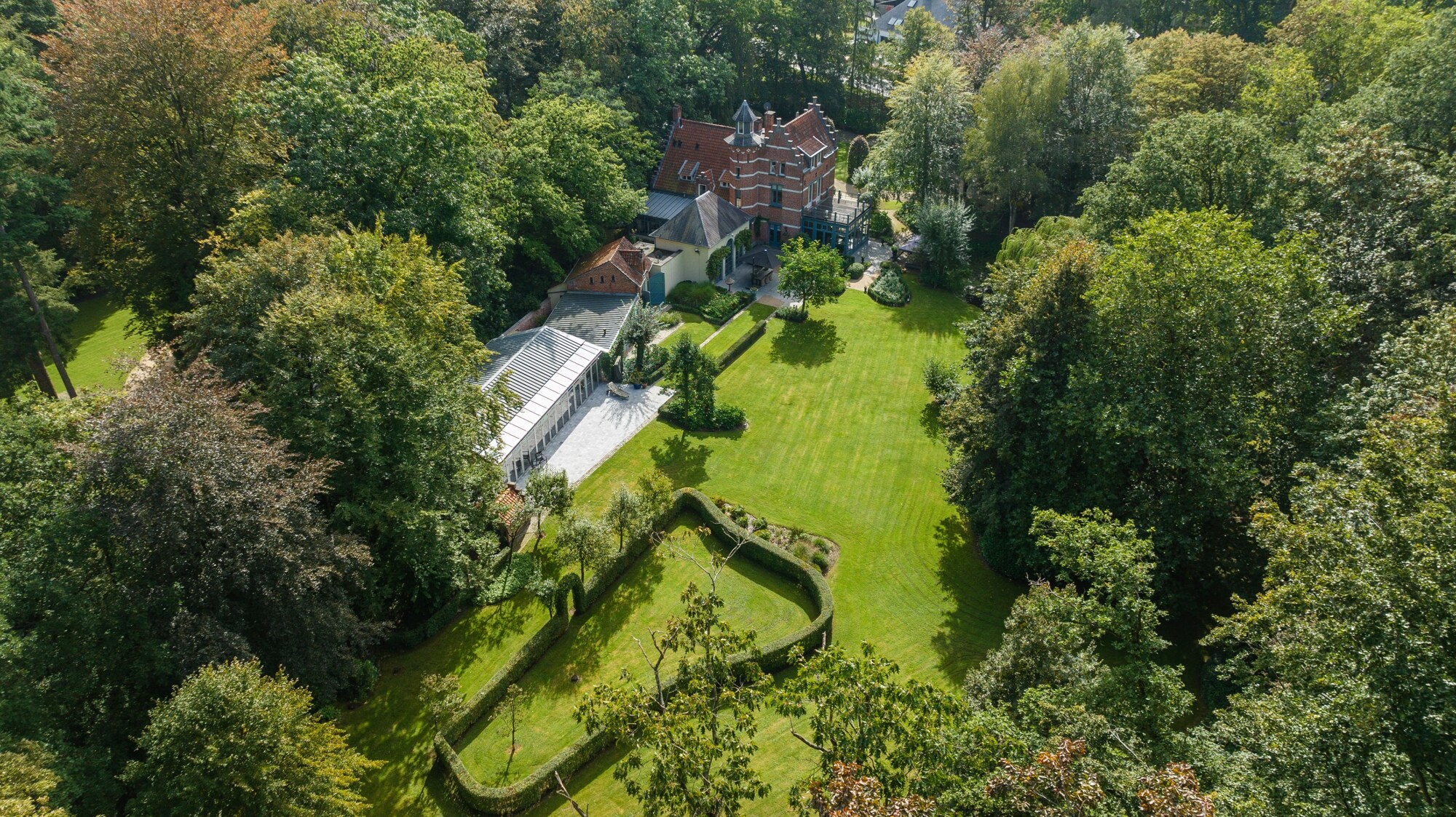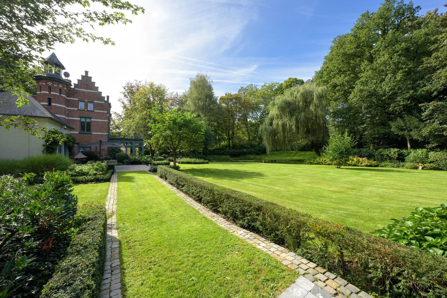De villa wordt omringd door de feeërieke parktuin ontworpen door Wirtz, waar het in eender welk seizoen heerlijk vertoeven is, zij het voor een rustige wandeling in eigen tuin of een gezellig diner met vrienden of familie.