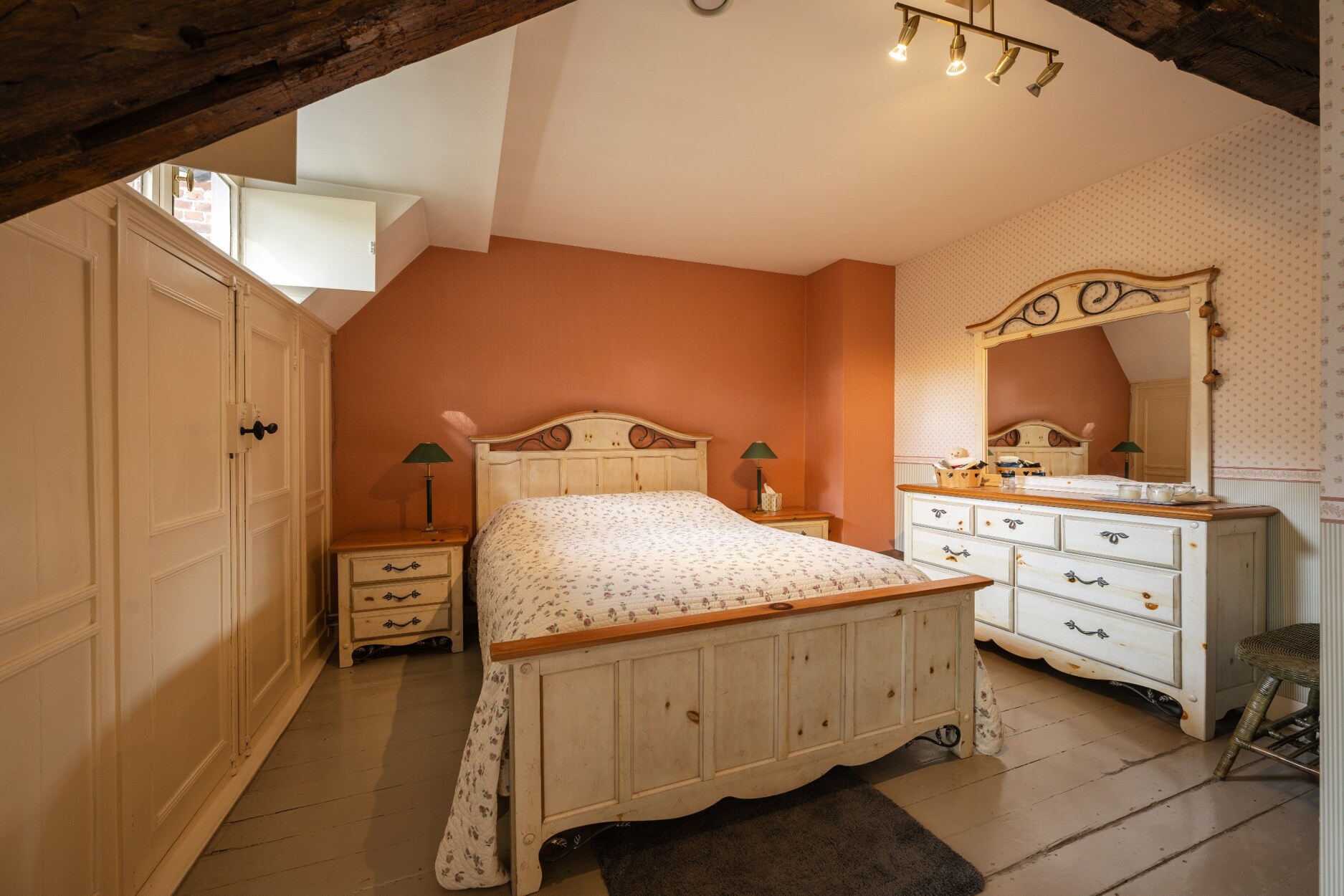 De tweede verdieping bereikt men via dezelfde trap, dit maal met uitzicht tot in de nok van het torentje waarin de trap zich bevindt. Op deze verdieping treffen we nog 2 ruime slaapkamers aan, alsook nog een praktische bergruimte.