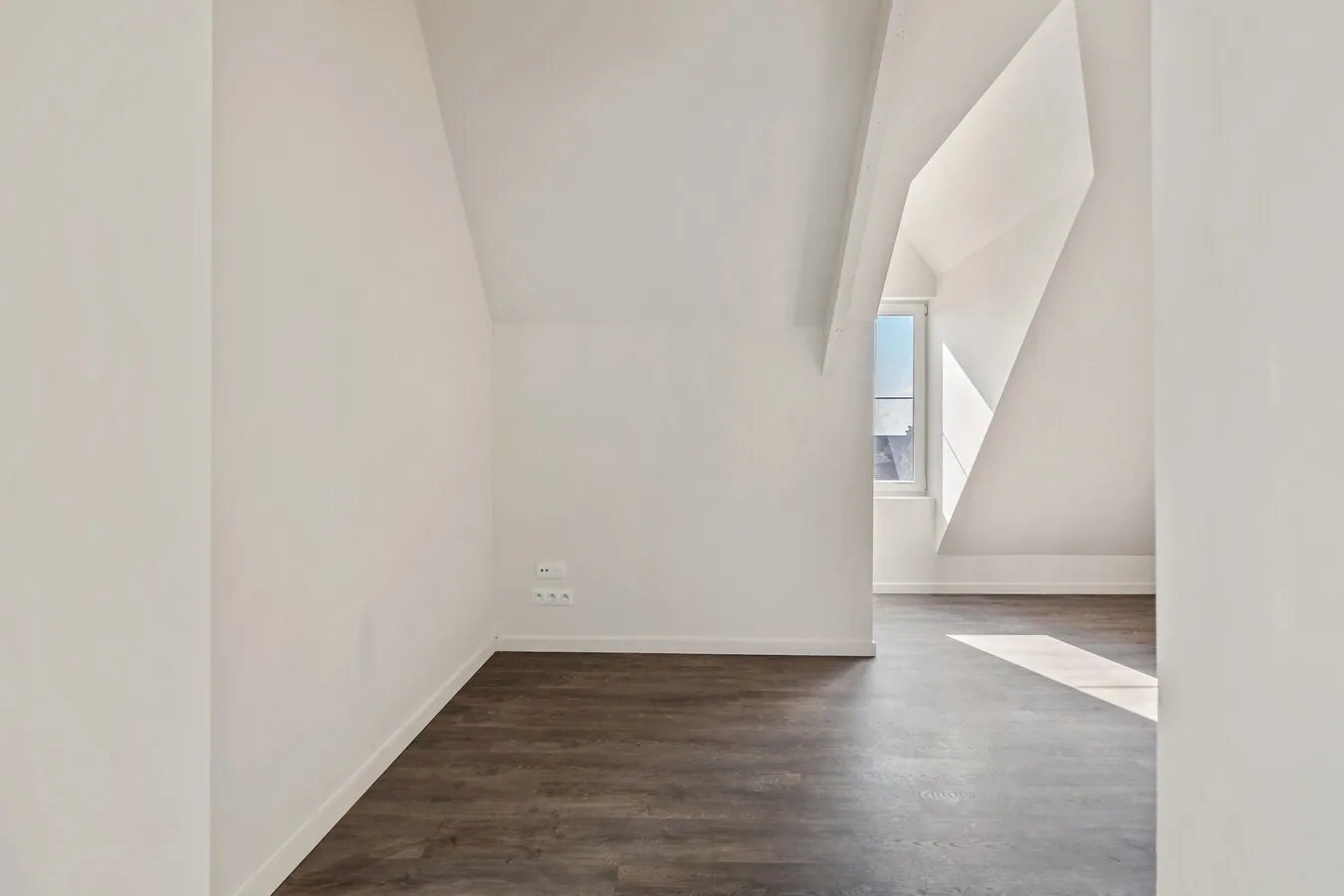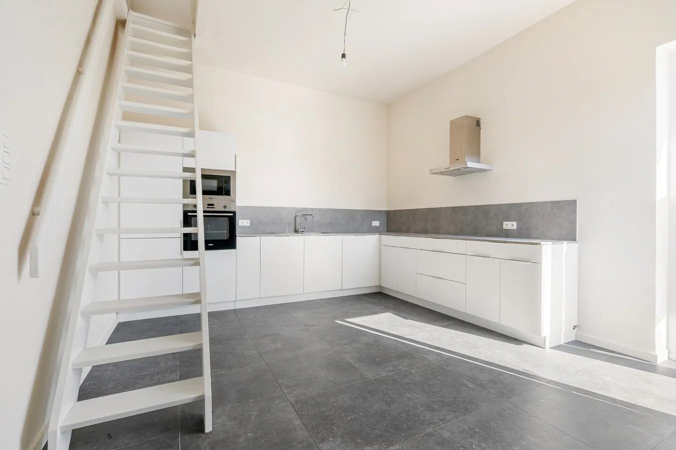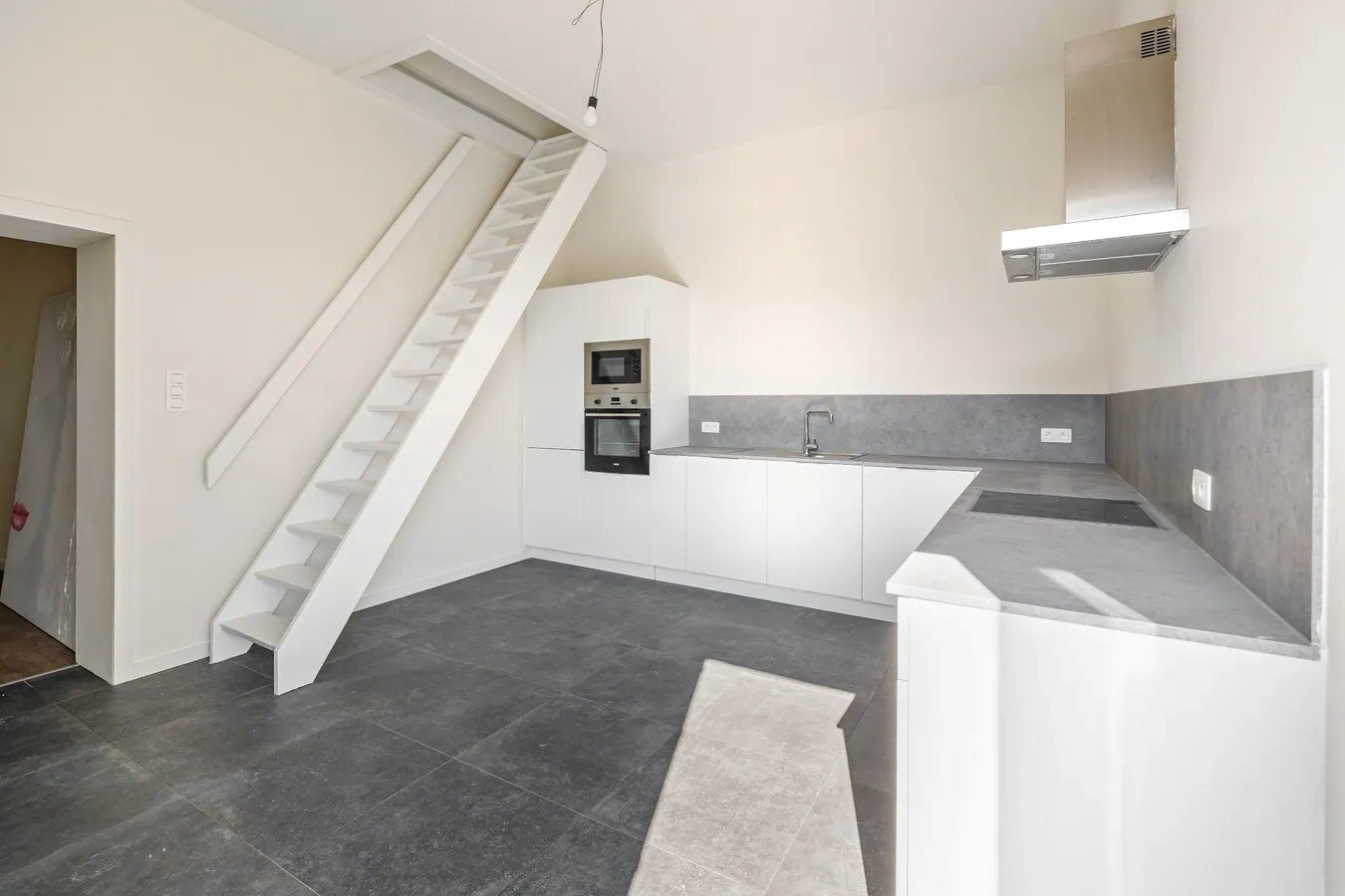 Het grootste appartement betreft een triplex en situeert zich aan de linkerkant.