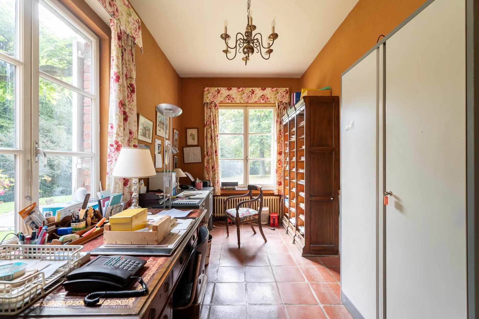 Met zijn authentieke architectuur en royale volumes biedt deze woning een ideale basis voor een ambitieus renovatieproject. Het dak moet heroverwogen worden, ruimtes moeten herverdeeld worden, en er zijn mogelijkheden voor uitbreiding: er zijn tal van perspectieven om dit zeldzaam proportionele domein nieuw leven in te blazen.