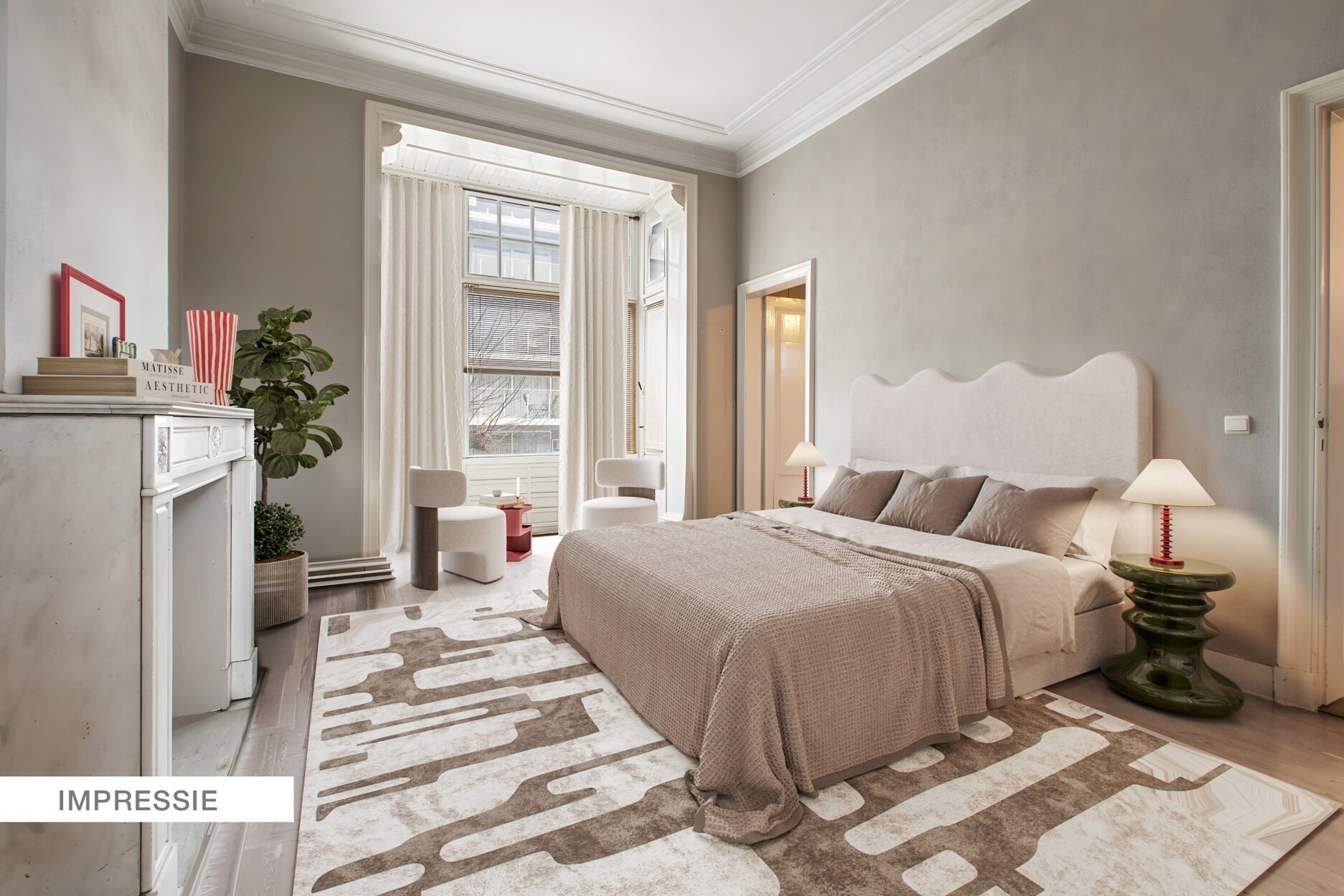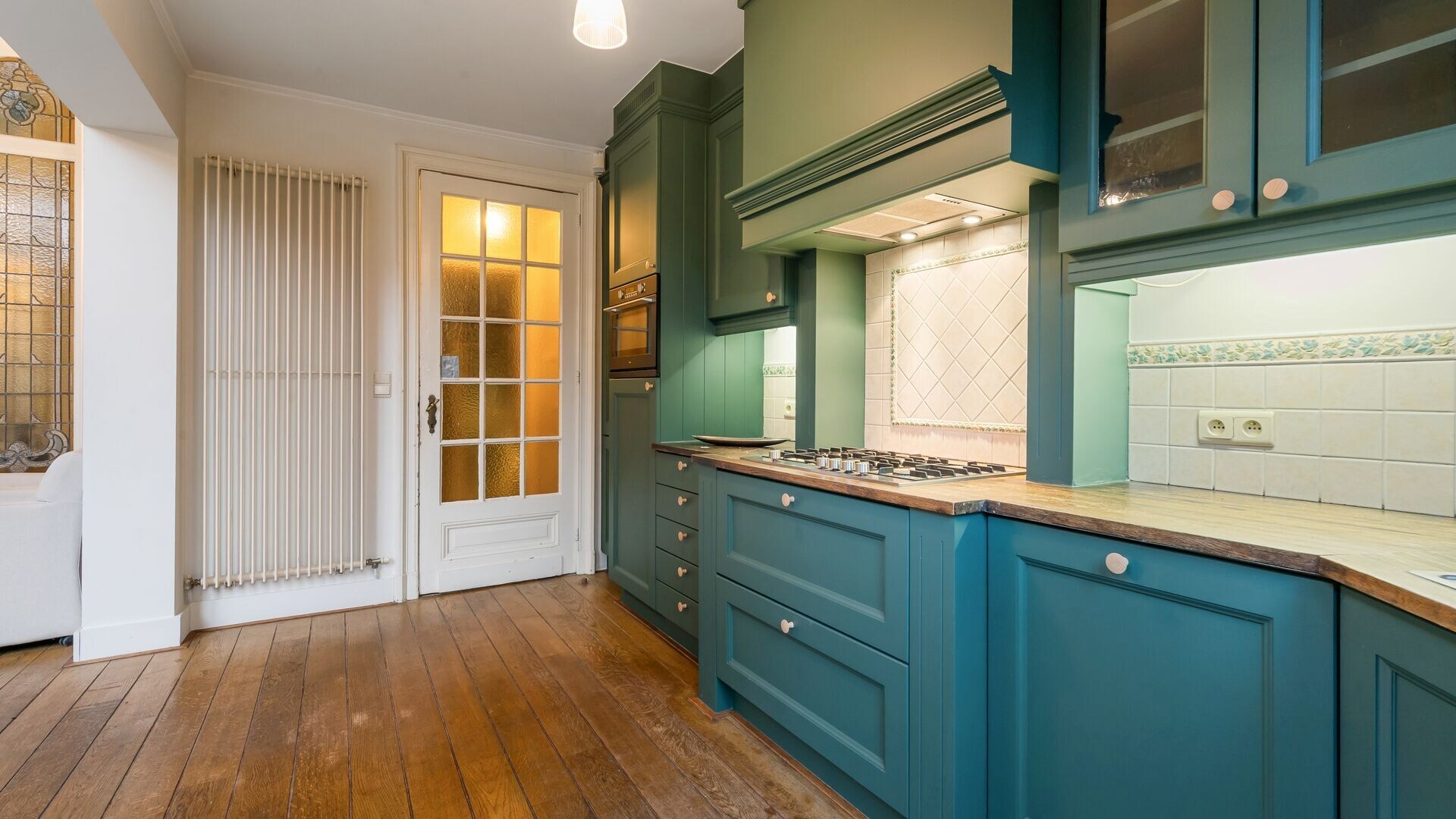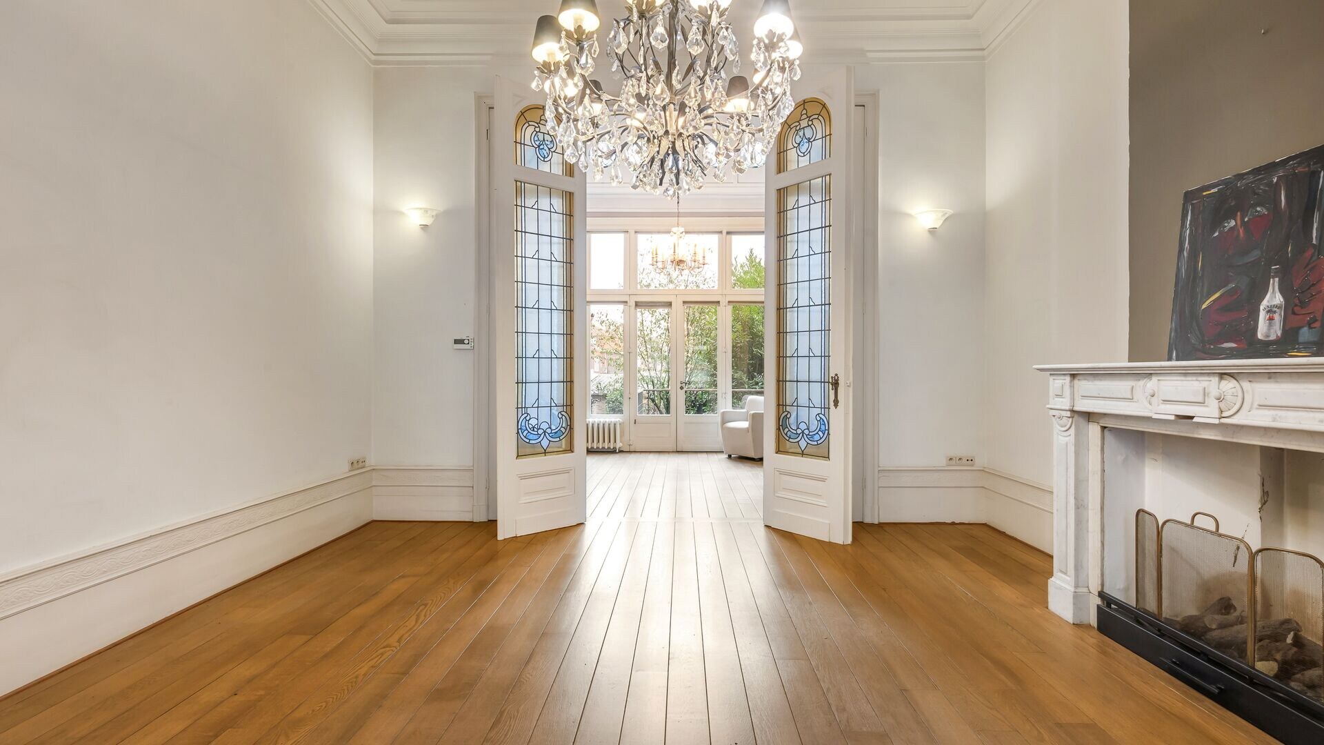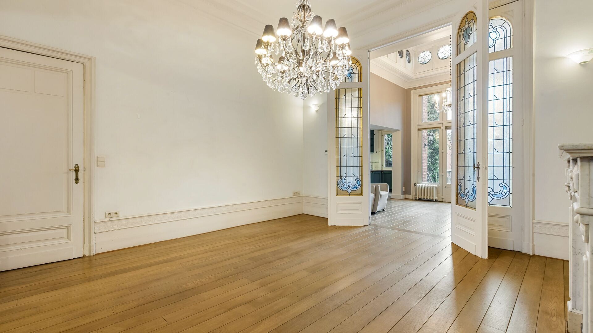 Bij het betreden van deze statige woning naar de hand van architect Jules Taeymans word je meteen verwelkomd in een indrukwekkende inkomhal die naadloos overgaat in een karaktervolle traphal. Op deze verdieping bevinden zich een recent vernieuwde keuken (Interieurstudio Hoskens), een sfeervol salon met hoge plafonds en verfijnde ornamenten, een ruime eetkamer en een lichtrijke tuinkamer die uitkijkt op de tuin.