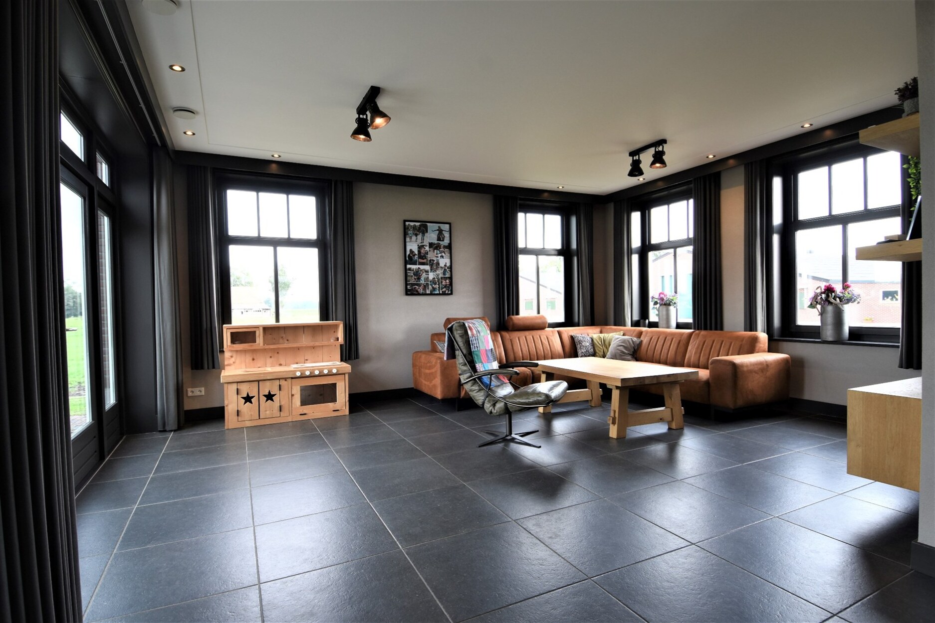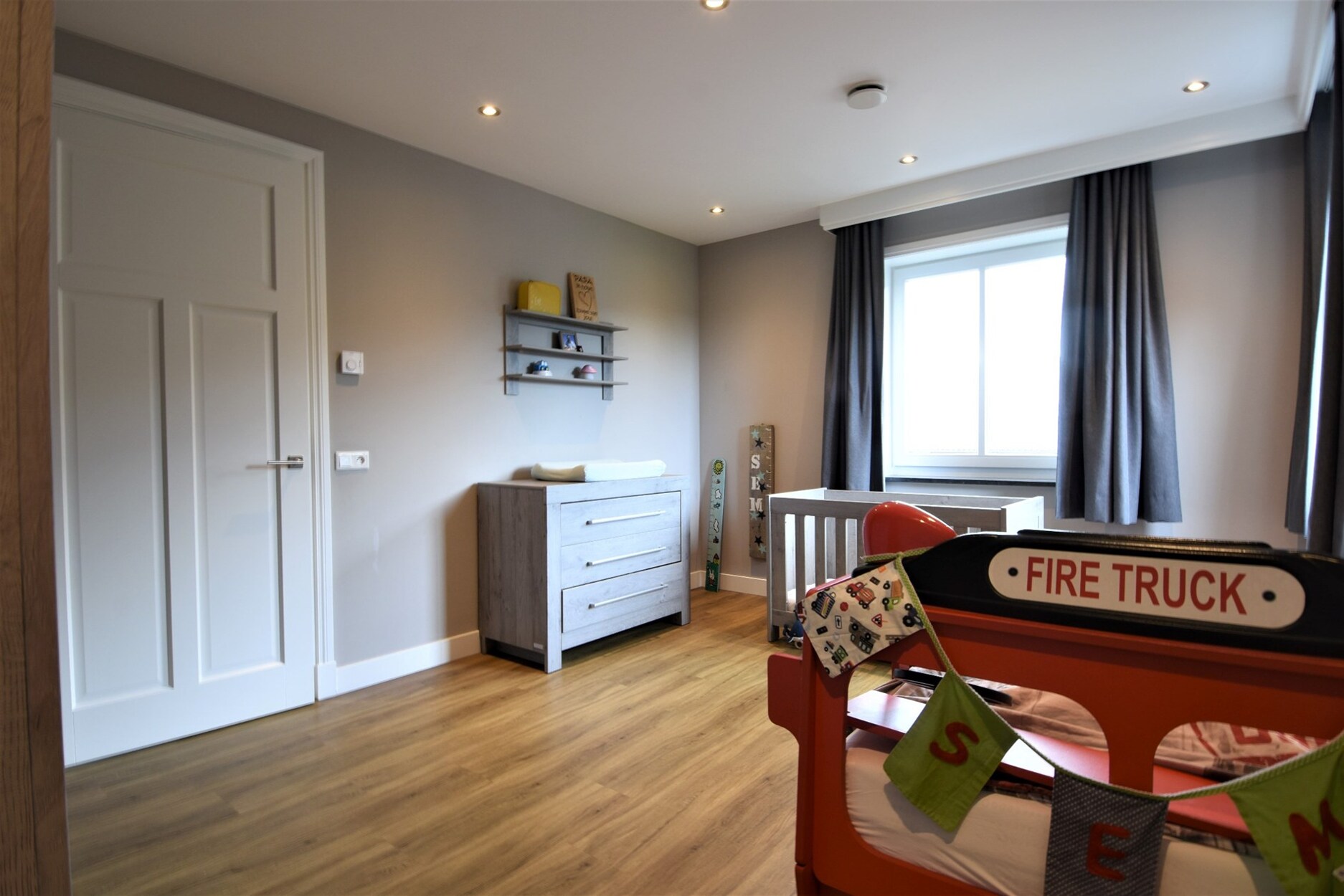 - Gordijnen + verlichting aanwezig