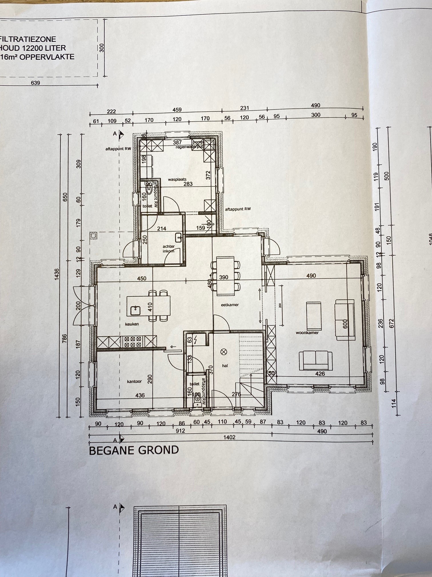 Verder is er op het gelijkvloers nog een ruimte die kan dienen als bureau, een kelderruimte om wat voorraad te stockeren, een 2de apart toilet in de grote inkomhal en een vestiaire.