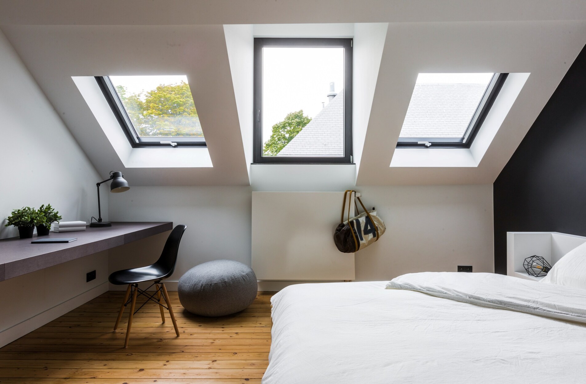 Op de eerste verdieping bevinden zich twee slaapkamers, elk met dressing en douchekamer. De tweede verdieping omvat twee bijkomende slaapkamers met privatieve ruimtes. Op de derde verdieping bevinden zich nog twee slaapkamers met douchekamer en dressing.