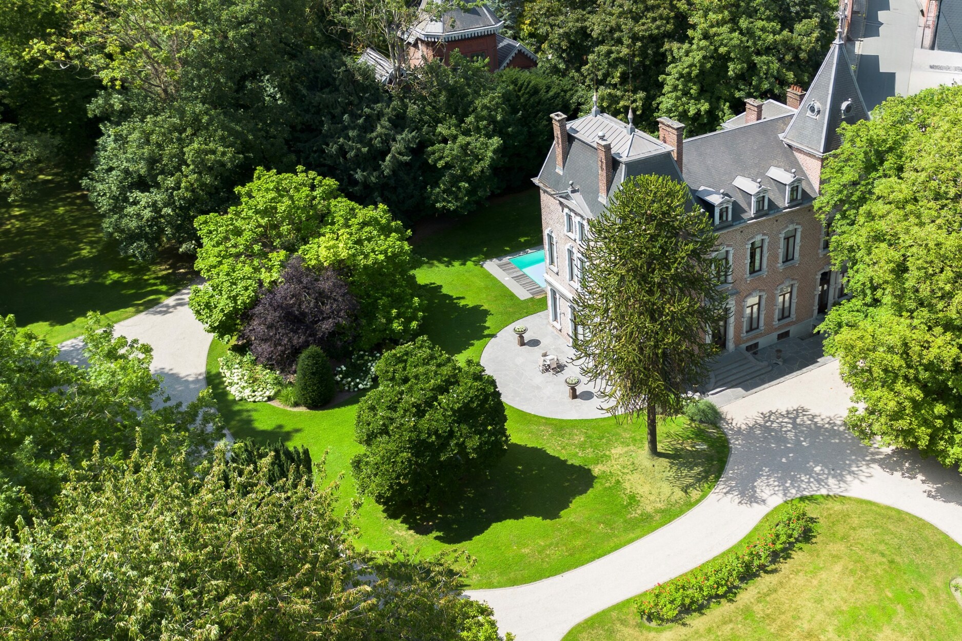 Deze uitzonderlijke eigendom uit de 19e eeuw strekt zich uit over een privépark van ongeveer 1,5 hectare. Met een rustig en groen kader geniet zij van een bevoorrechte geografische ligging, in de nabijheid van de grote verkeersassen zonder er de nadelen van te hebben.