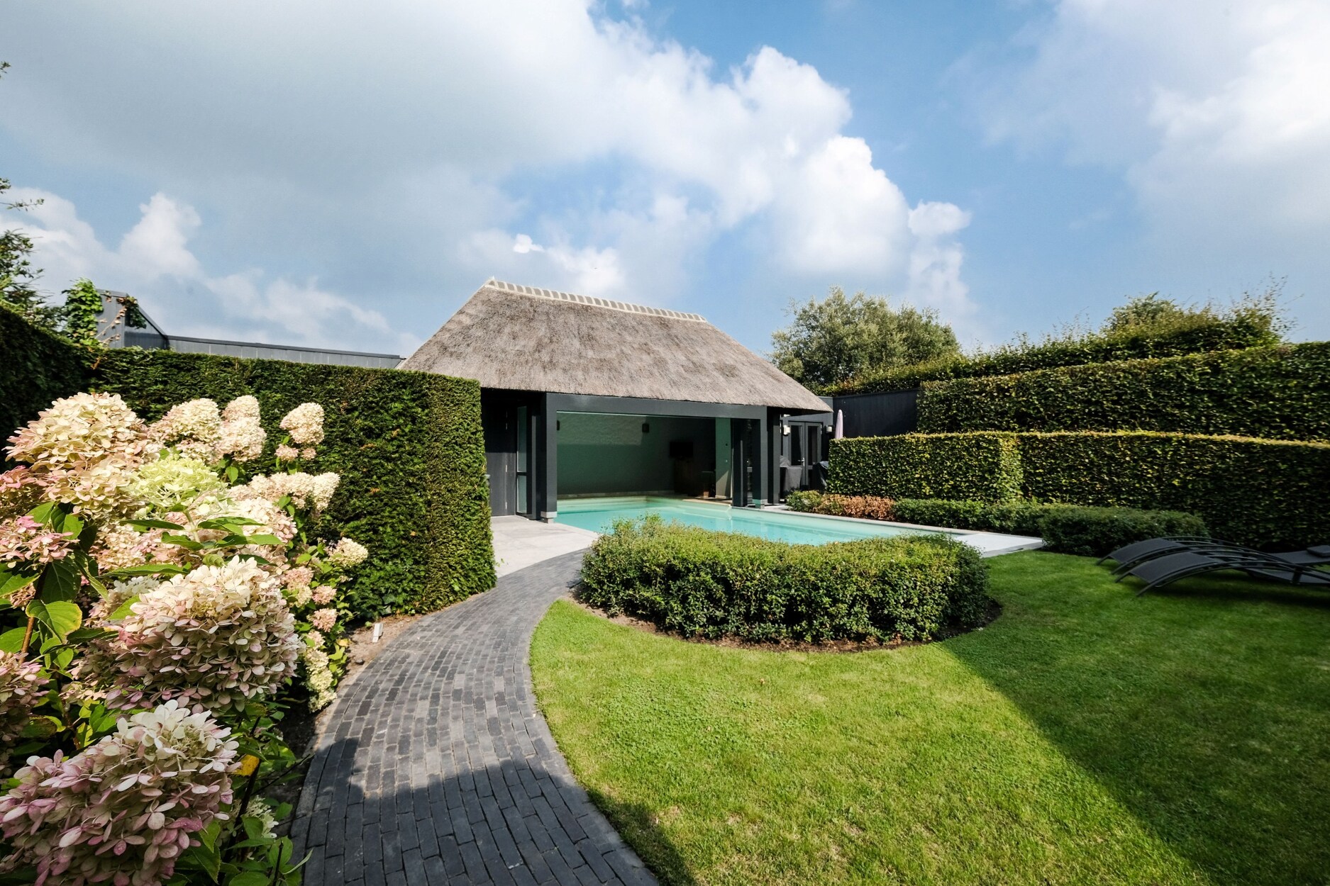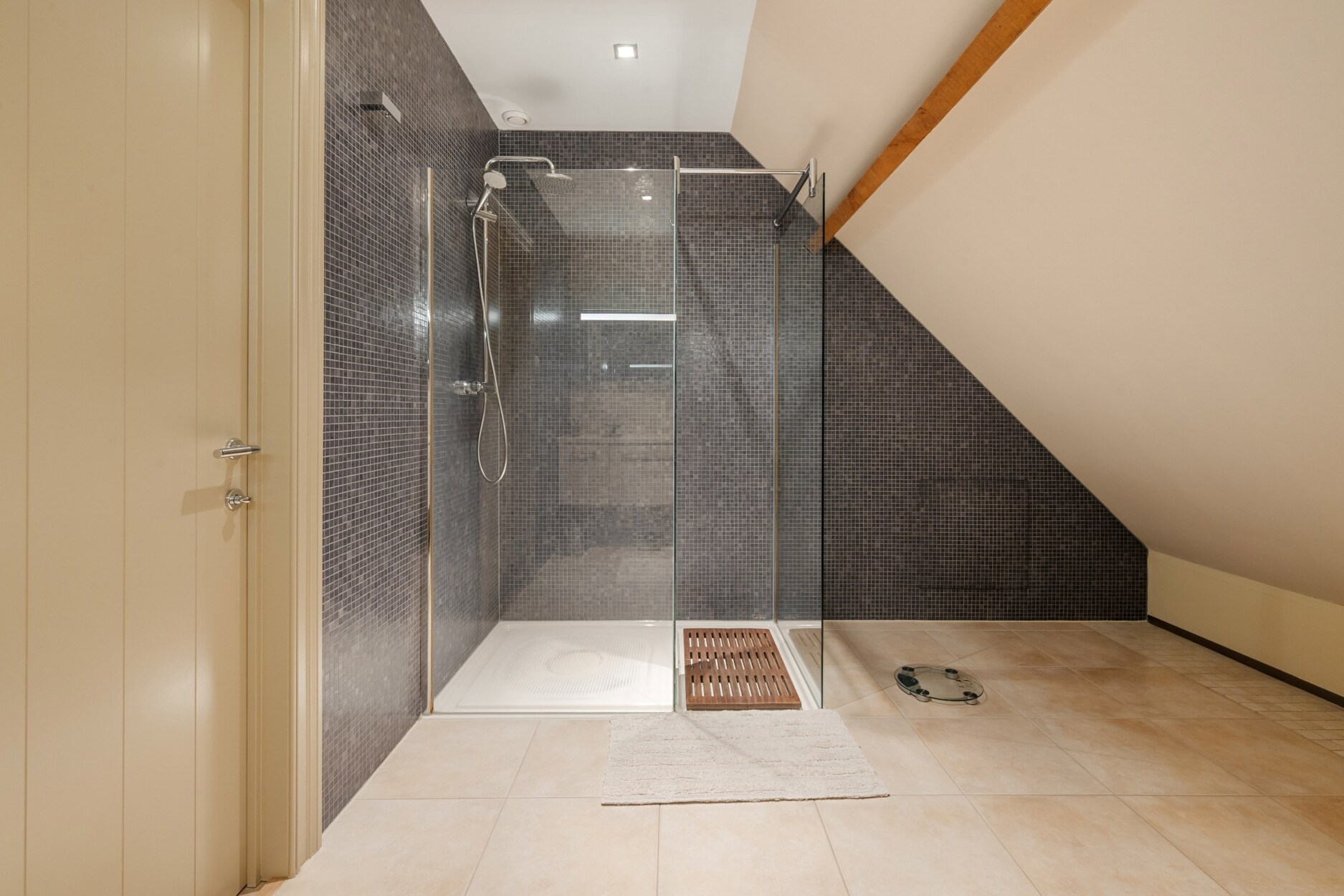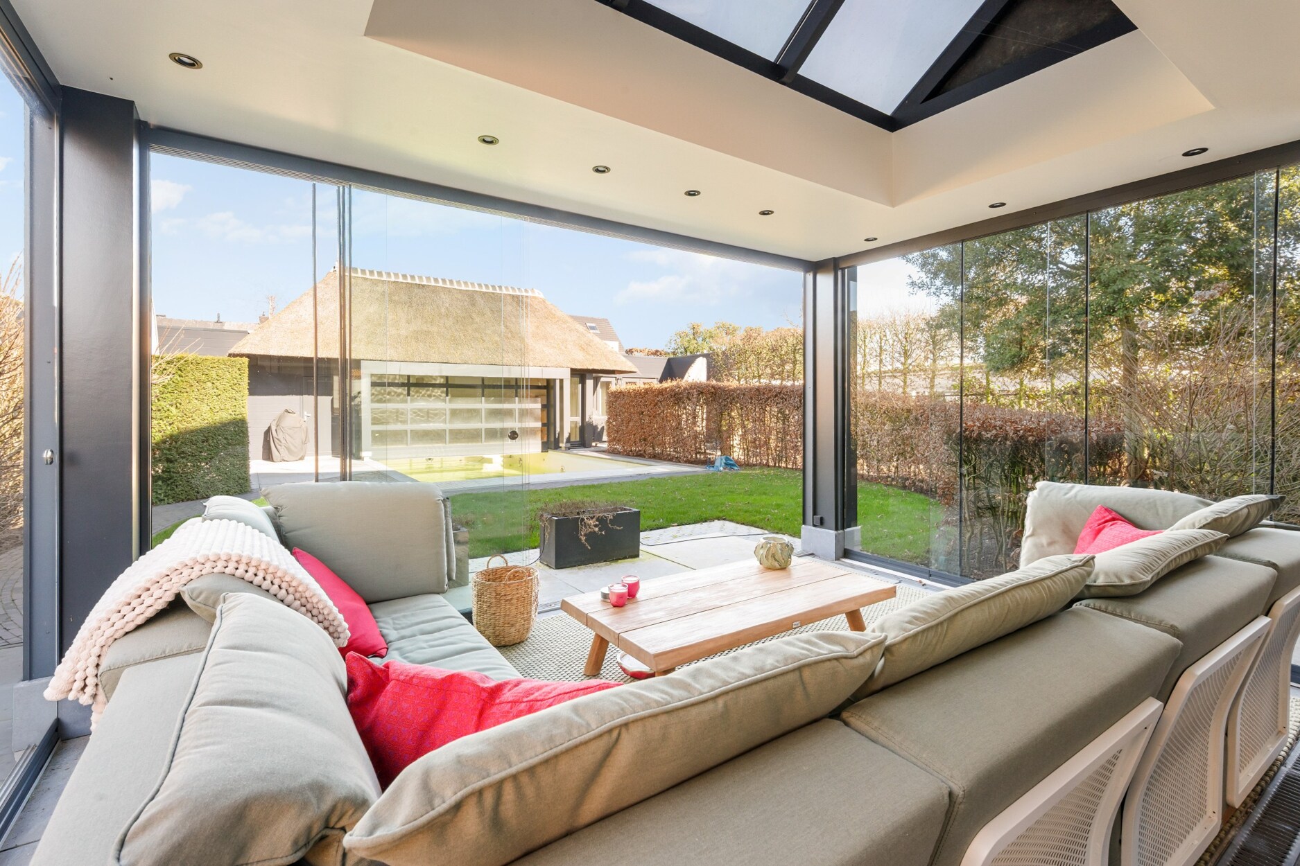 Een bijzondere troef van deze eigendom is de unieke combinatie van zwembad en poolhouse. Het poolhouse werd deels over het zwembad gebouwd, waardoor een architecturaal geheel ontstaat dat zowel esthetisch als functioneel is. Dankzij het solardek en een afsluitbare poort kan het zwembad met jet het hele jaar door gebruikt worden. Tevens sauna aanwezig en sfeervolle zithoek met haardje.