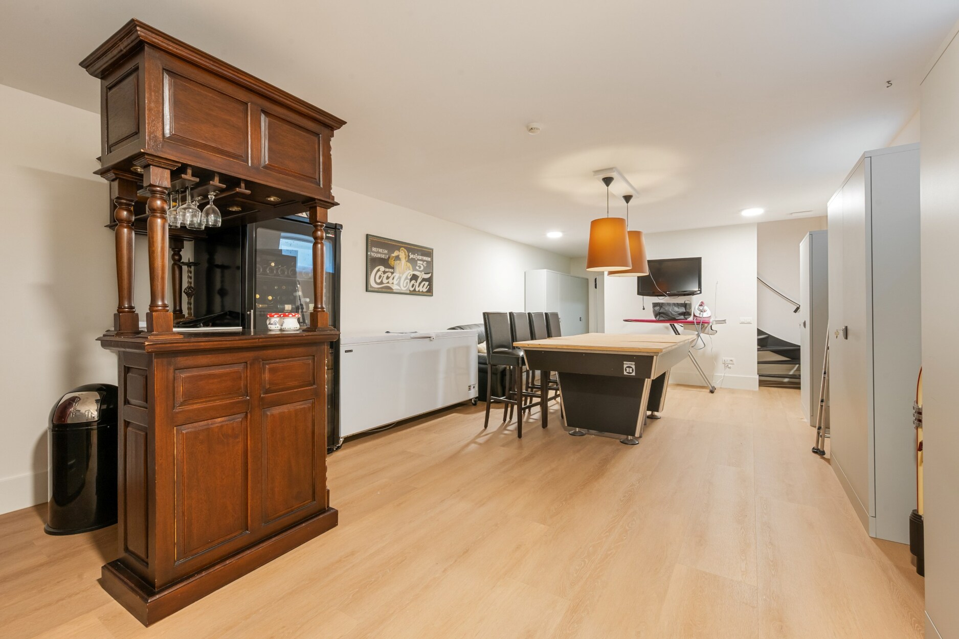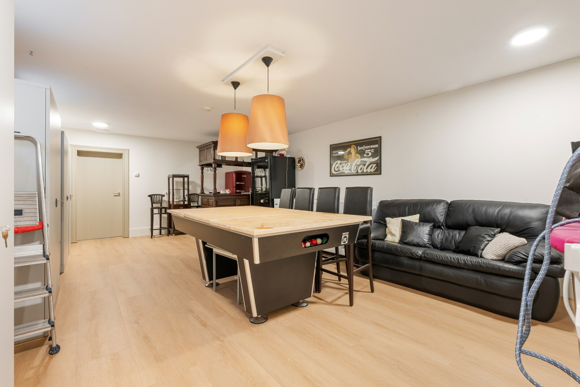 De volledig afgewerkte kelderverdieping werd ingericht als ontspanningsruimte. Daarnaast vindt u hier een berging en een gekoelde wijnkamer.
