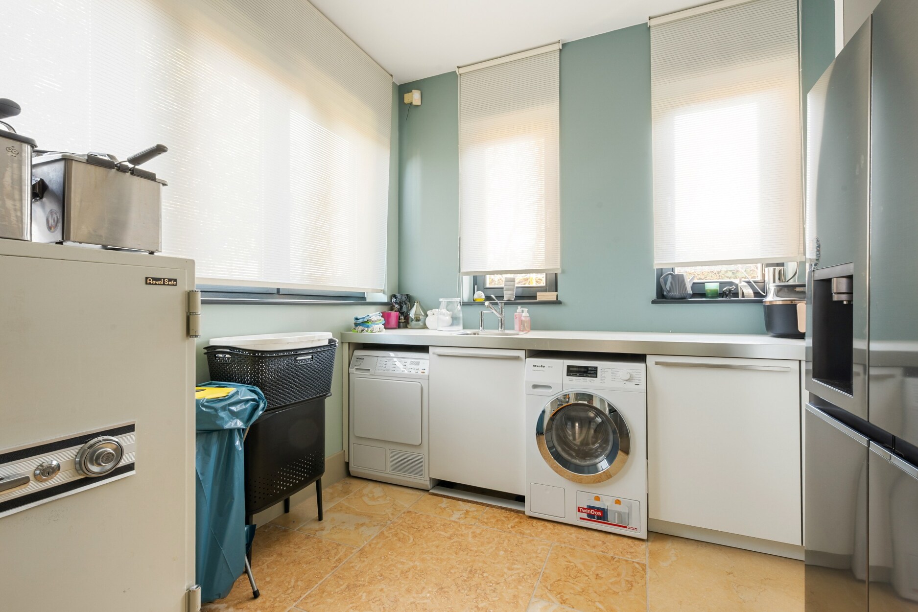 Naast de keuken bevindt zich een praktische bijkeuken met wasvoorzieningen.