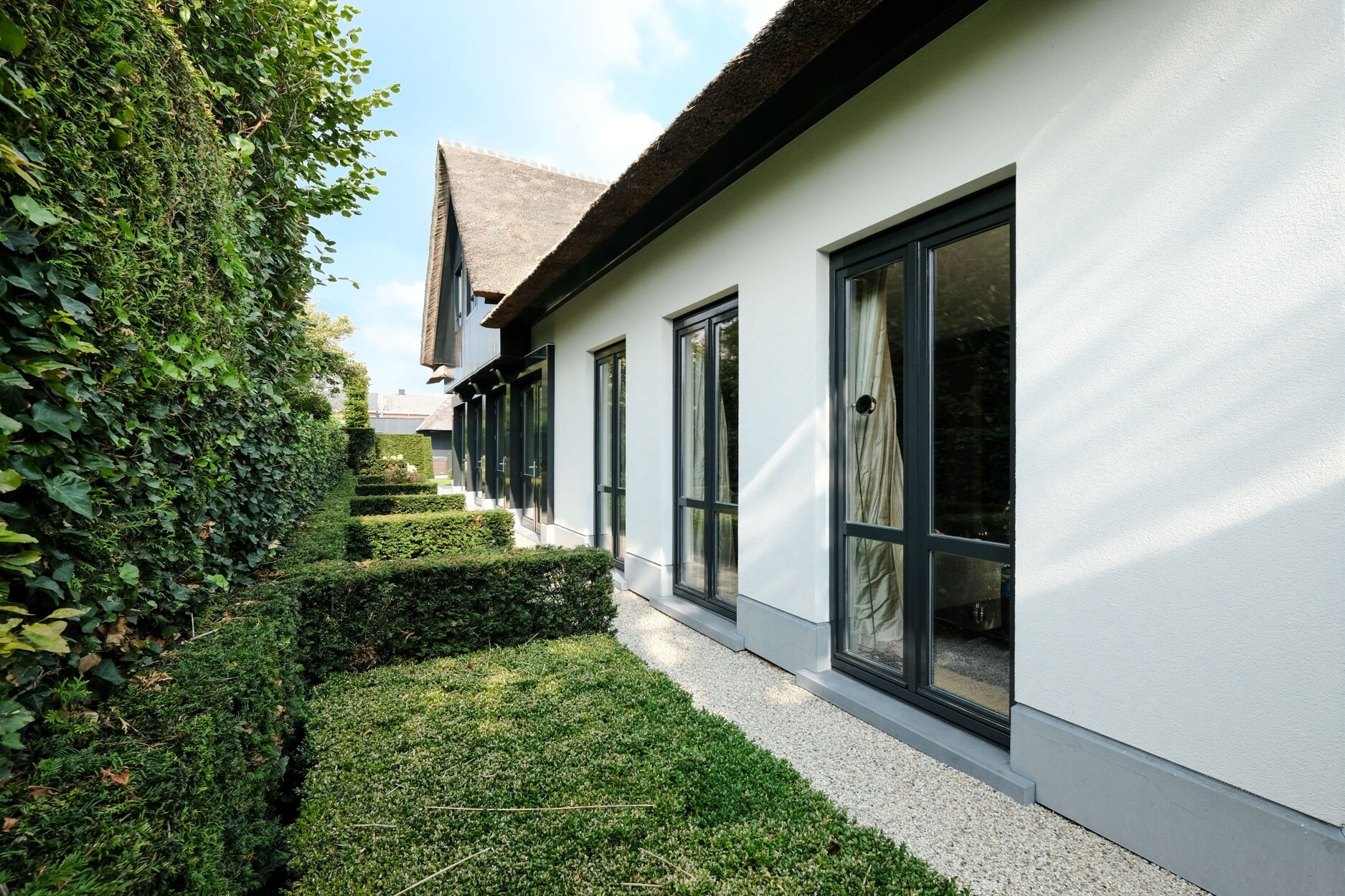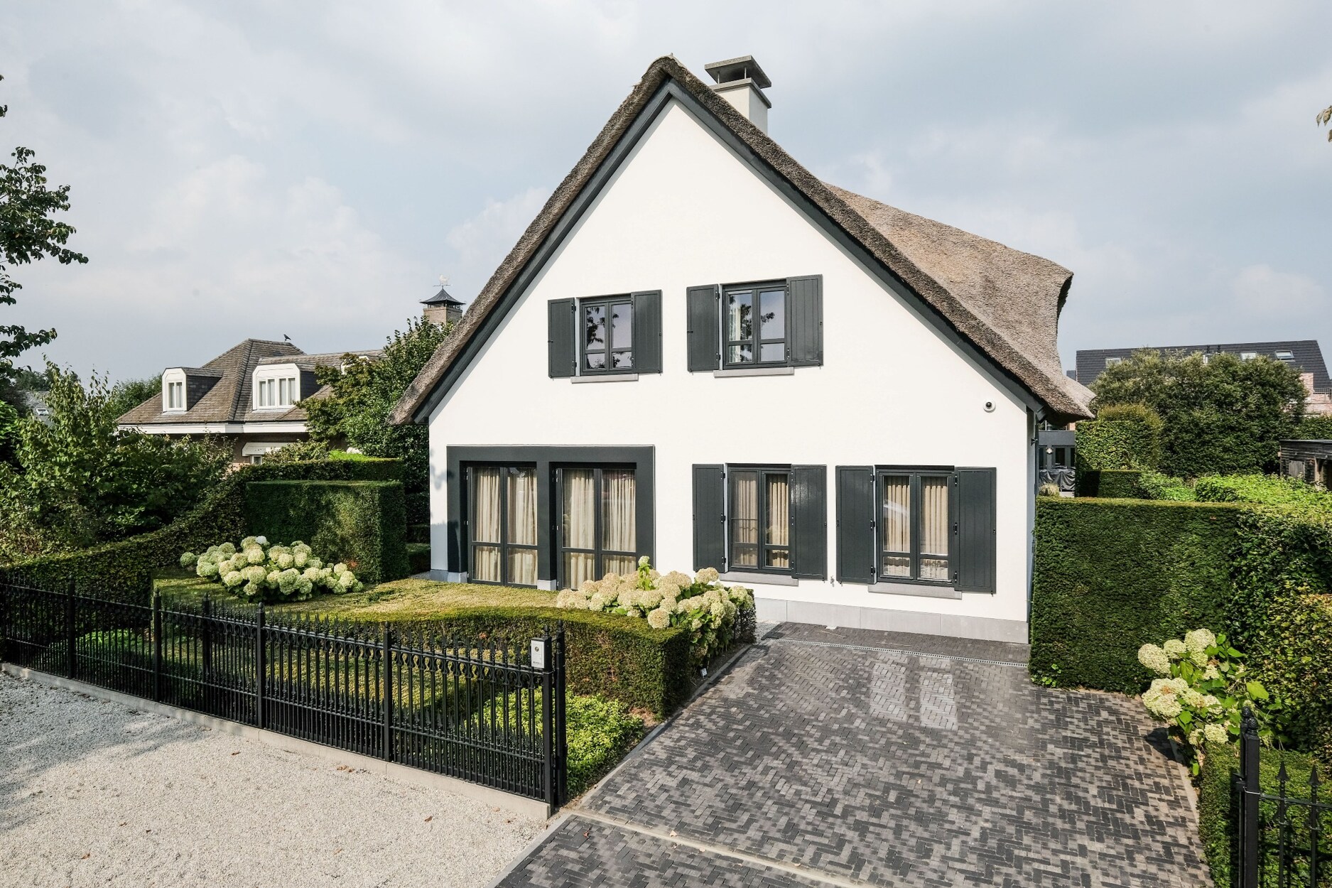 In een rustige doodlopende straat, vlakbij het centrum van Hoogstraten, bevindt zich deze stijlvolle villa (bouwjaar 2008) met rieten dak, geïnspireerd door de tijdloze signatuur van Piet Boon, op goed te onderhouden perceel van 782 m². De villa combineert hedendaagse architectuur met een bijzonder hoog afwerkingsniveau en optimaal wooncomfort.