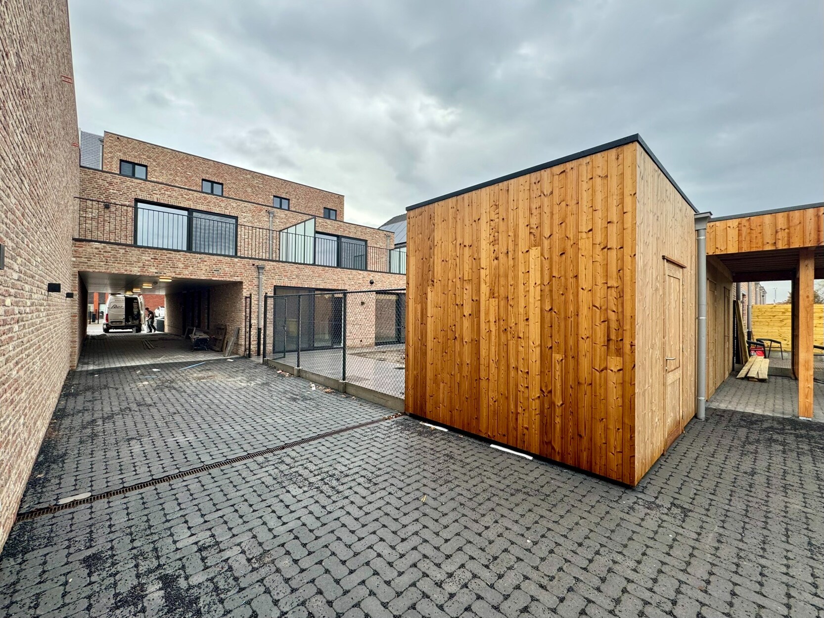 De huur omvat tevens een overdekte staanplaats en een privatieve ruime (!) buitenberging. Dit bevindt zich achter het gebouw.