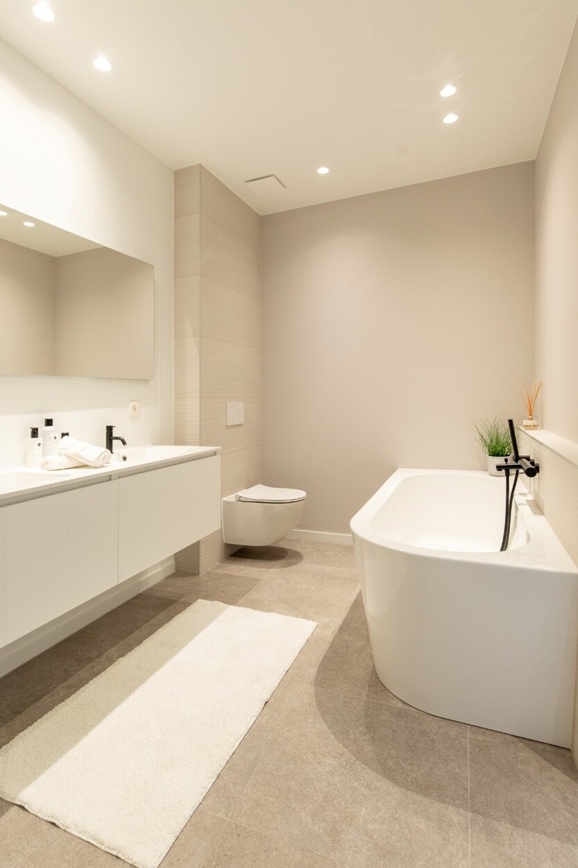 - benedenverdieping: inkomhal, berging, apart gastentoilet, 3 slaapkamers, 2 badkamers.