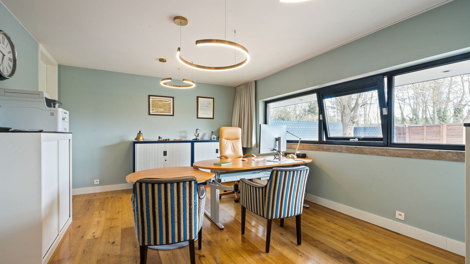Voor wie wonen en werken wil combineren, biedt de afzonderlijke praktijk- of kantoorvleugel een discrete en volwaardige professionele omgeving met eigen toegang. Cliënten worden hier ontvangen in alle comfort, met een duidelijke scheiding tussen privé en professioneel – een bijzonder sterke troef op deze zichtlocatie.