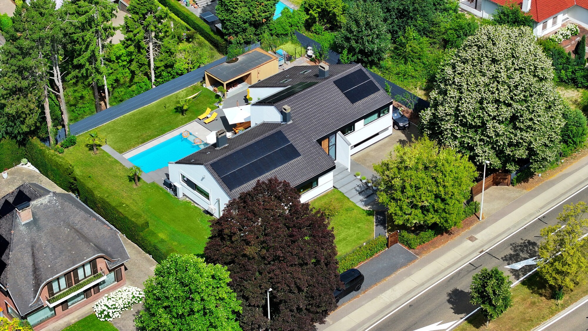 Architecturale en energiezuinige villa met praktijk- of kantoorruimte, zwembad en poolhouse te Lanaken.