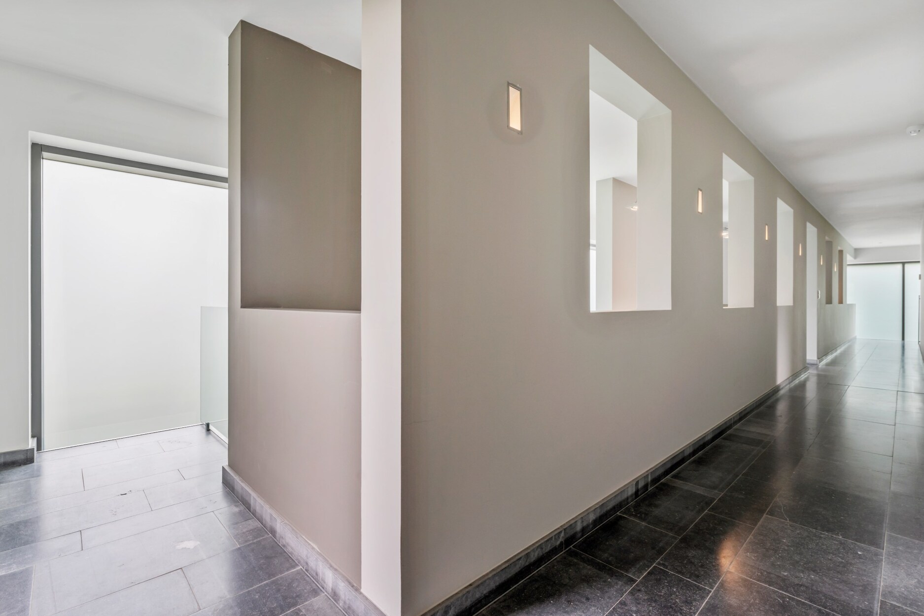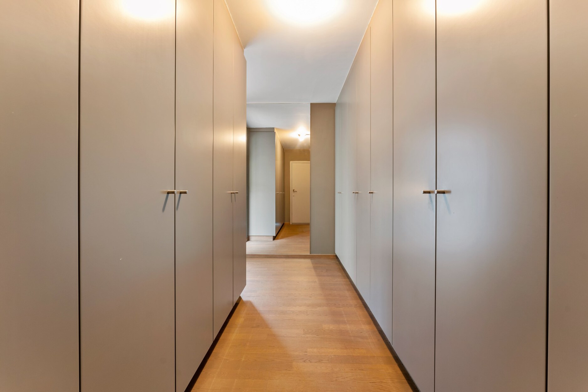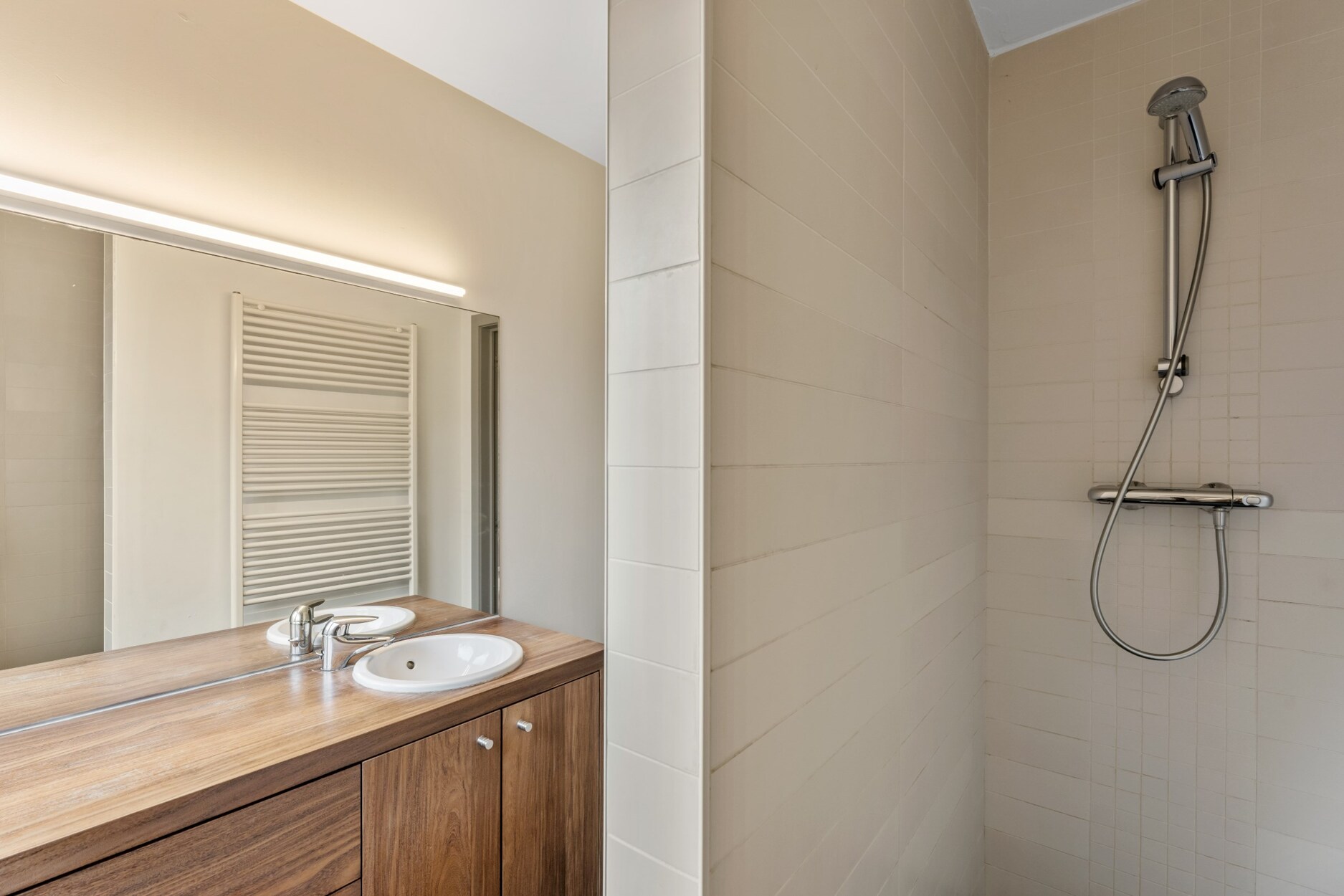 De eerste verdieping ademt dezelfde hoogwaardige afwerking als het gelijkvloers. De nachthal verbindt vier slaapkamers. De master bedroom beschikt over een eigen dressing en een luxueuze ensuite badkamer met bad, inloopdouche en wastafel, en biedt een prachtig uitzicht op de tuin. De drie kinderkamers zijn stuk voor stuk voorzien van ingebouwde kasten en ingebouwde bureaus. Verder vind je hier een tweede douchekamer, een aparte wasplaats en een afzonderlijk toilet.
