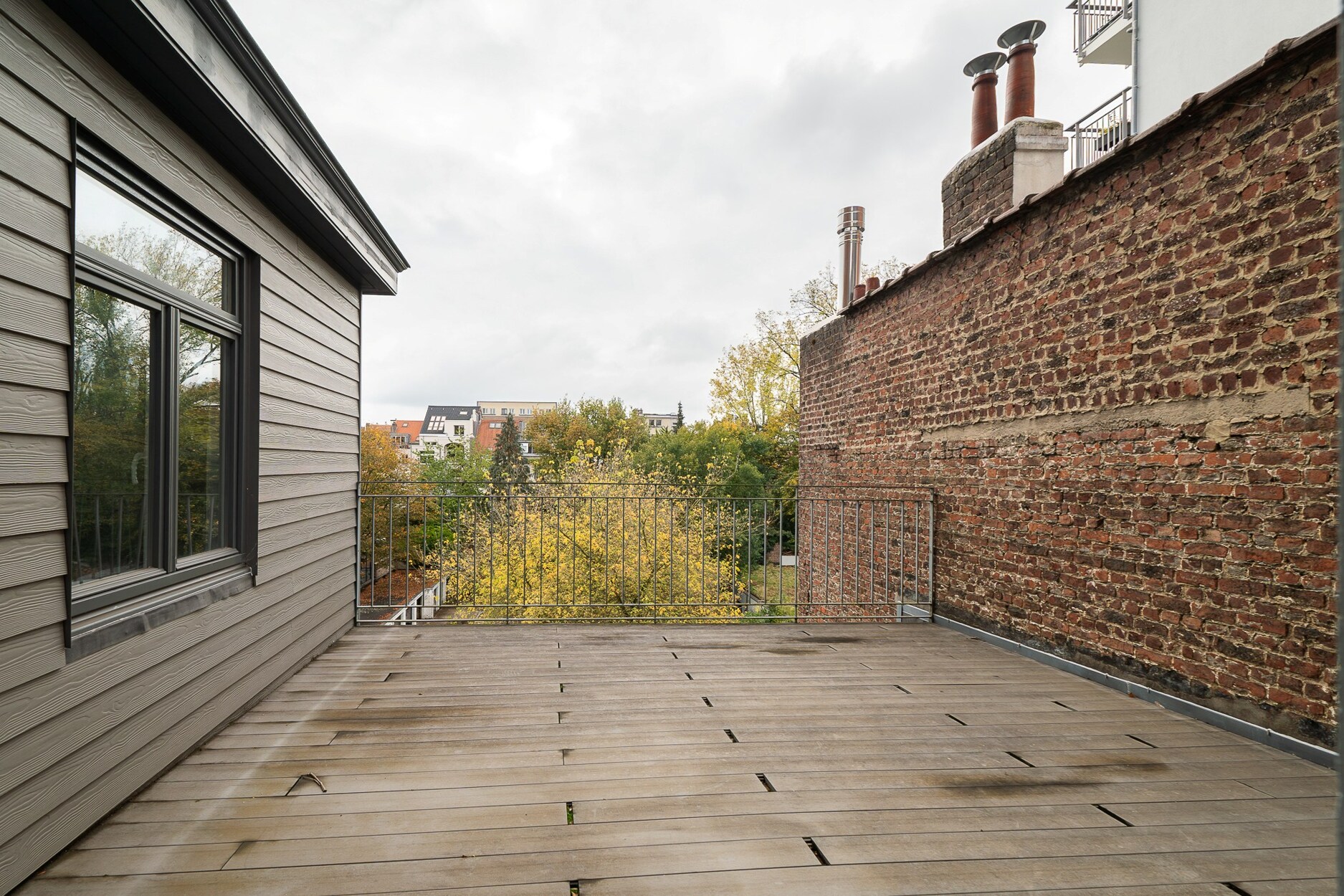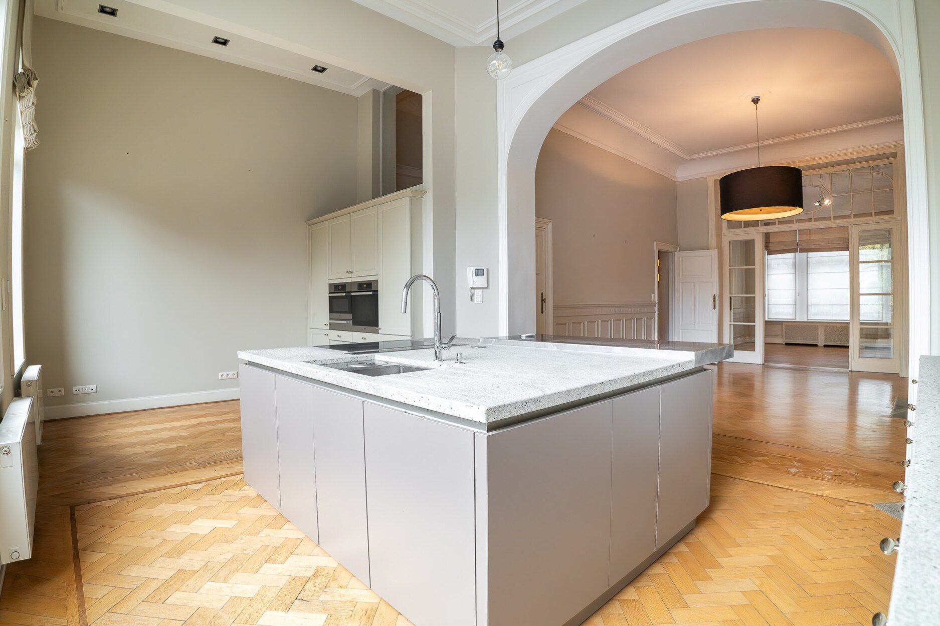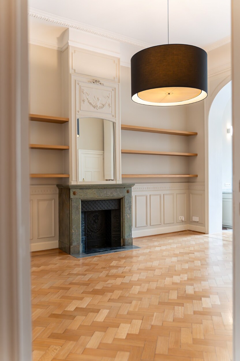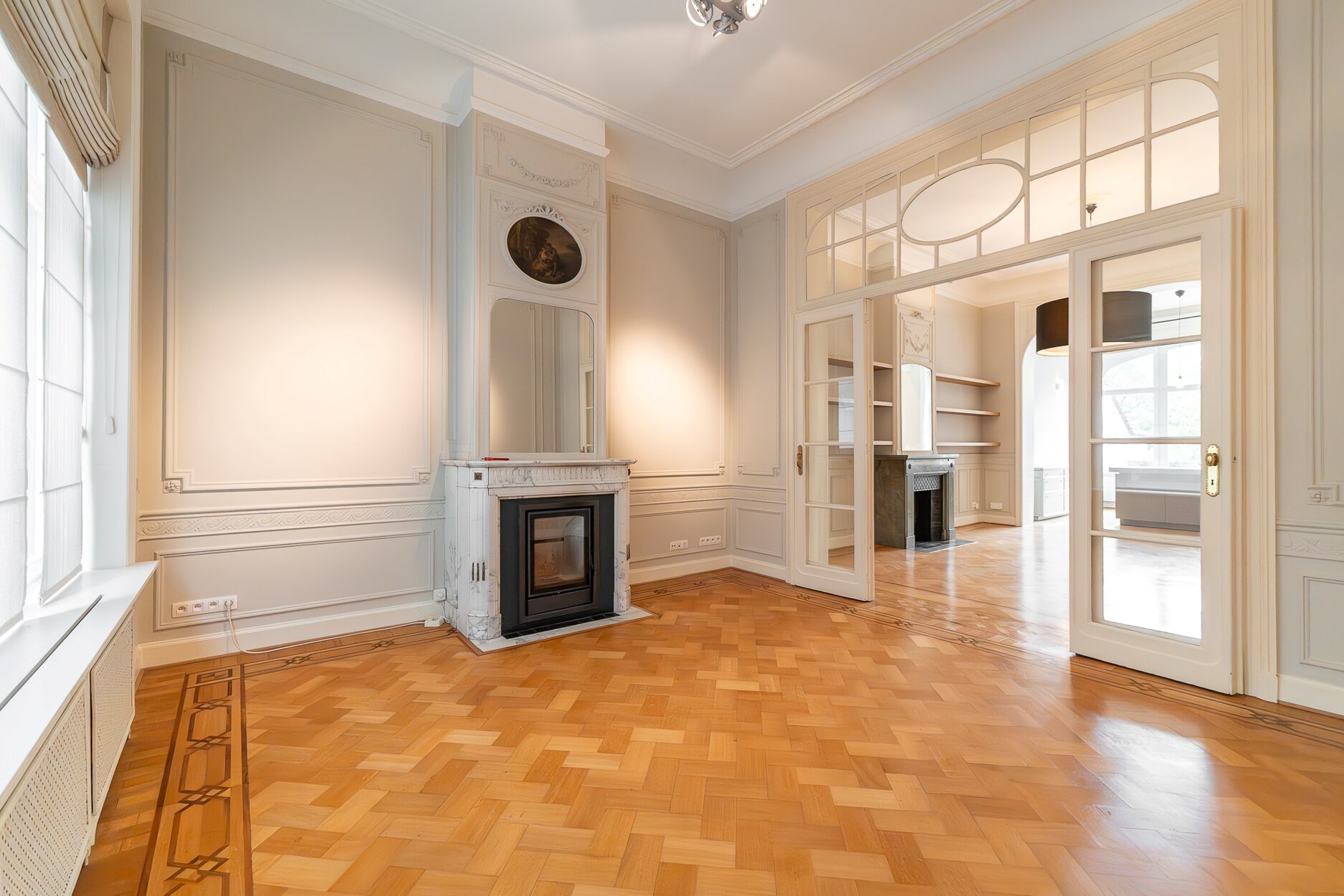 Gelegen in de gewilde Molièrewijk, onderscheidt deze volledig gerenoveerde herenwoning van ongeveer 520 m² zich door haar elegante Franse natuurstenen gevel van 7,5 meter en haar zuidgerichte tuin op een perceel van ± 3 are. De woning beschikt over vijf slaapkamers en een dubbele garage met twee bijkomende buitenstaanplaatsen.