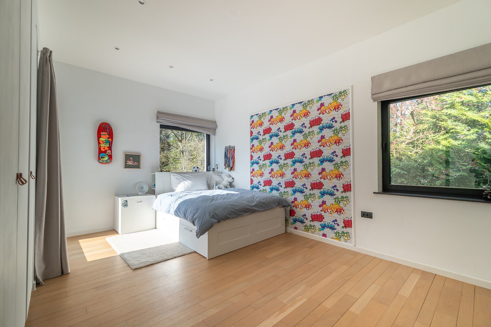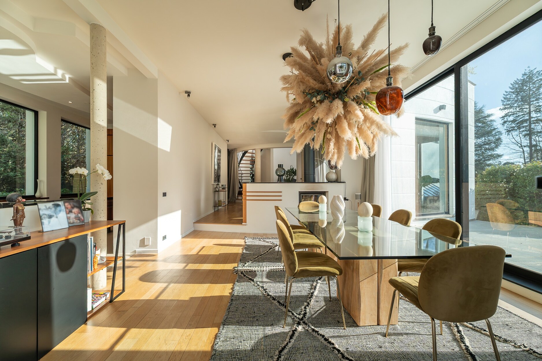 Met haar royale volumes, overvloedige lichtinval en bevoorrechte ligging nabij het Zoniënwoud biedt deze eigendom een verfijnde en unieke woonbeleving.