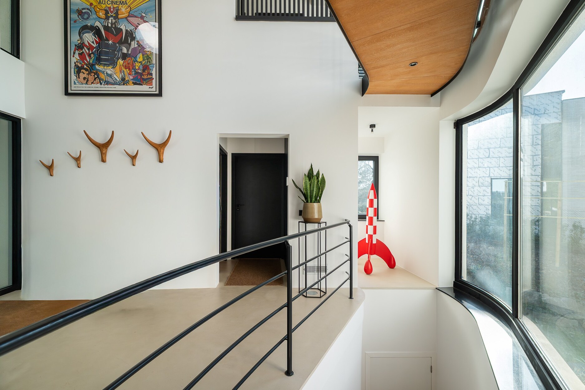 Gelegen in een gegeerde residentiële wijk in Sint-Genesius-Rode, onderscheidt deze architectenvilla zich door haar originele volumes en biedt zij een bewoonbare oppervlakte van circa 684 m² volgens het EPC.