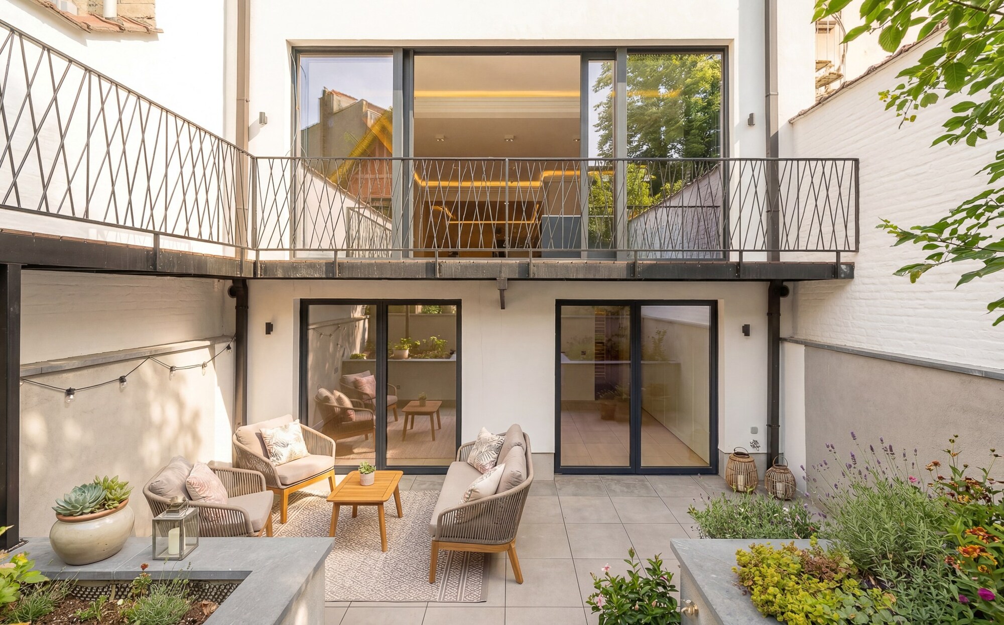 Gelegen op de gelijkvloerse verdieping van een gerenoveerde karaktervolle woning, biedt dit duplexappartement van circa 236 m² 3 slaapkamers en 3 badkamers, evenals een privatieve tuin van circa 200 m², georiënteerd op het zuidwesten.