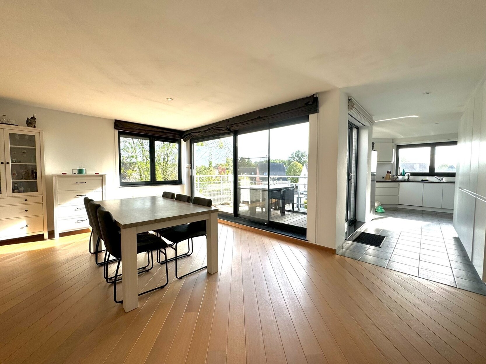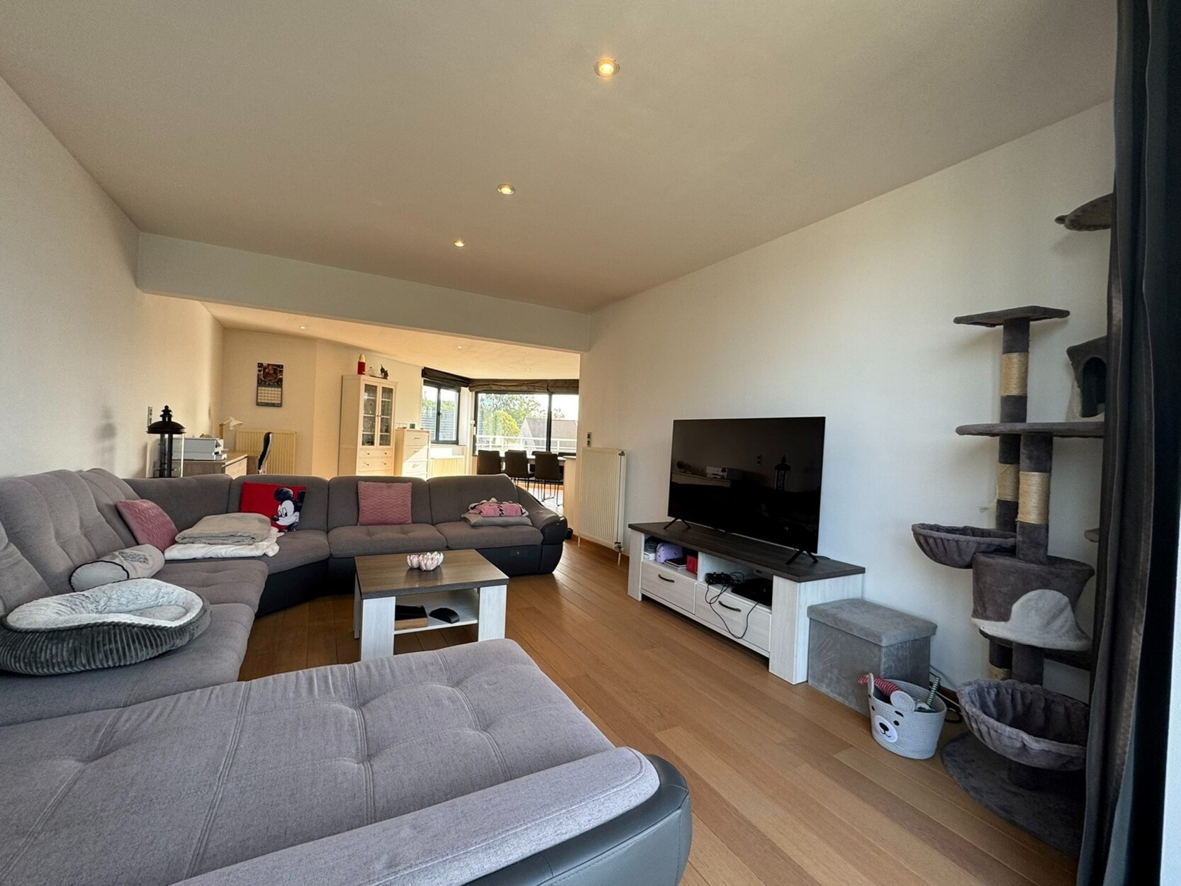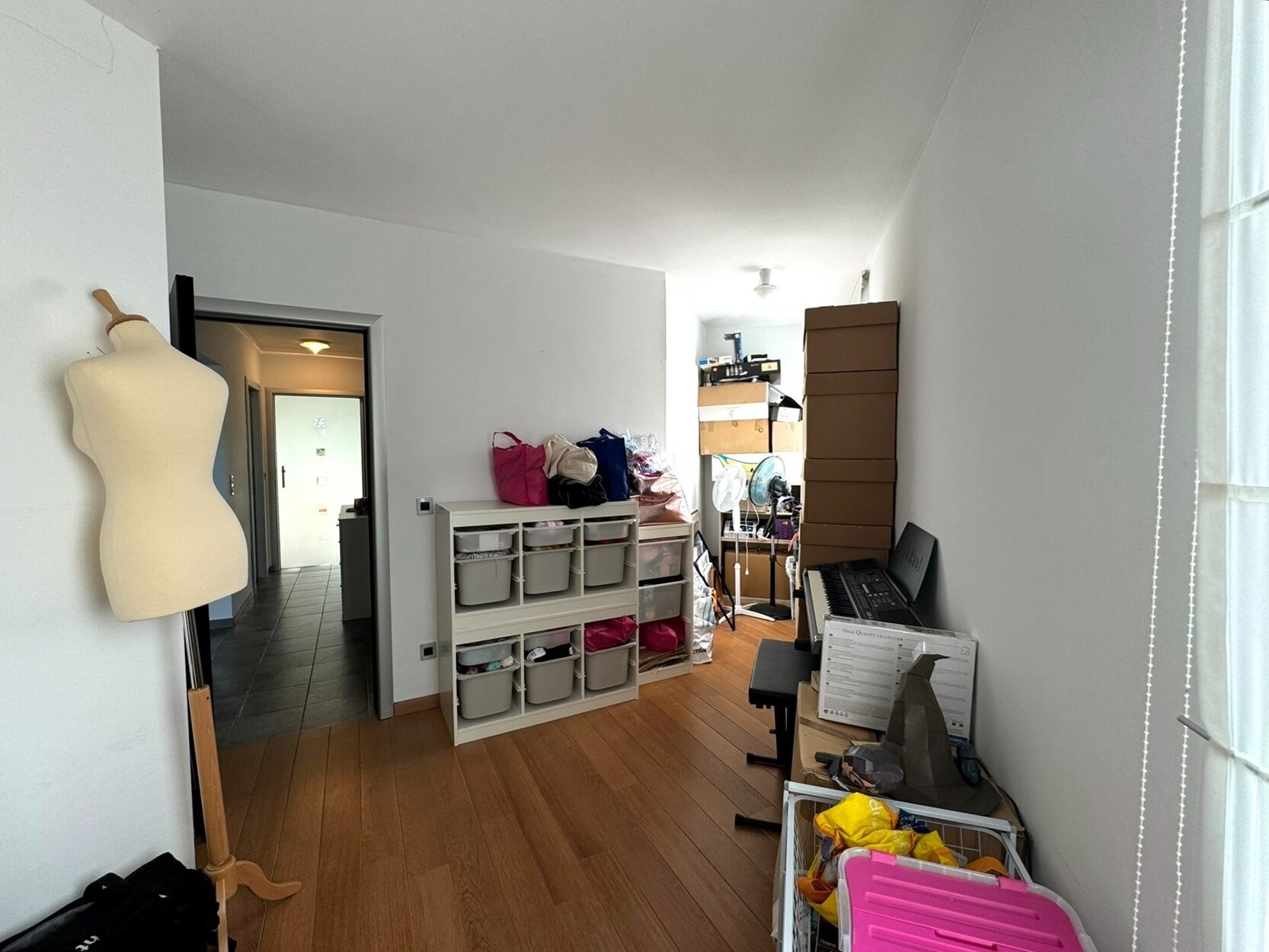 Het appartement beschikt over een heerlijk ruime en lichte woonkamer. De parket en vele ramen geven het geheel een warme sfeer. Hier is voldoende plaats om een gezellig zitgedeelte en een grote tafel te plaatsen. Er is zelfs nog ruimte om een bureauhoekje te creëeren.