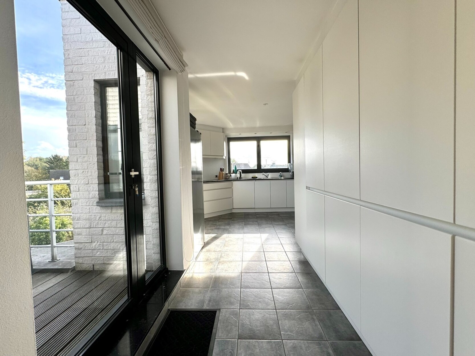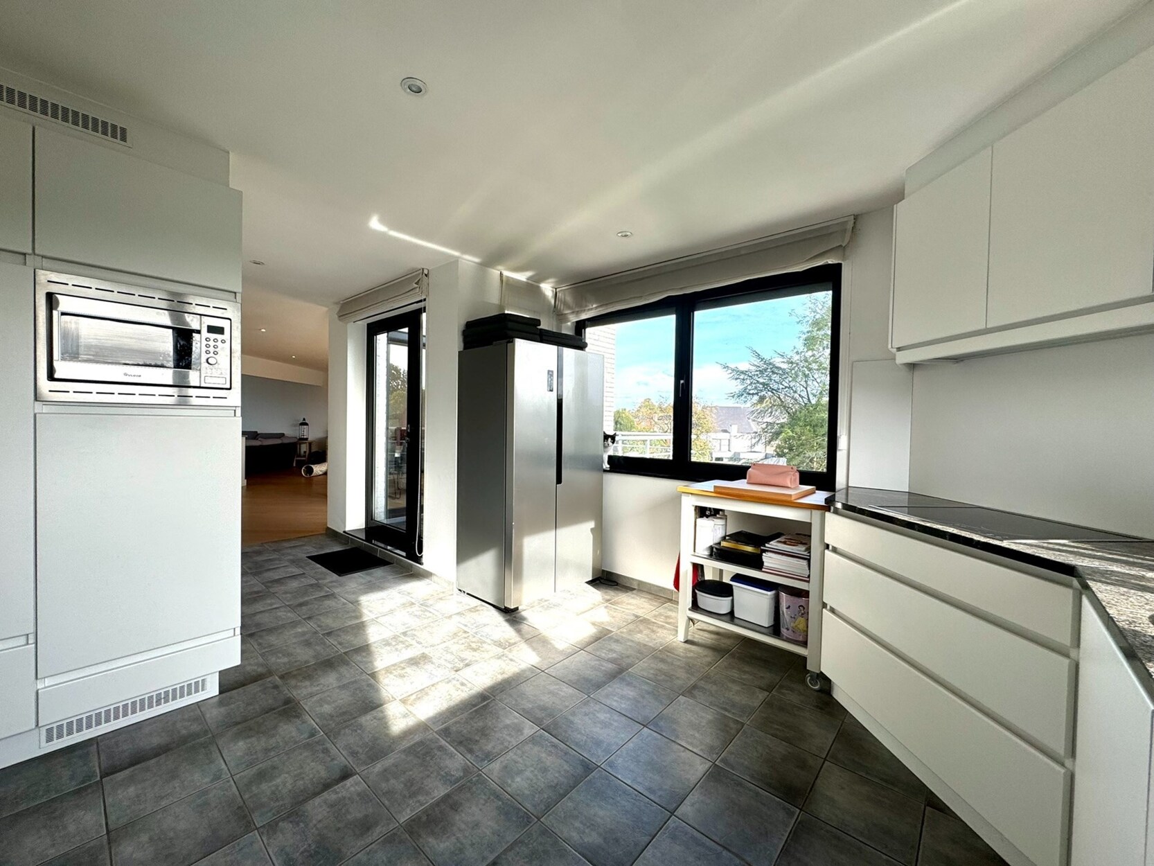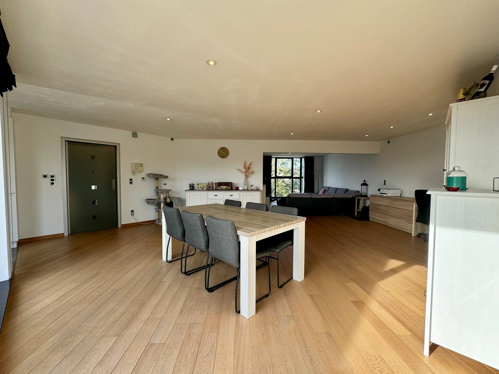 Het appartement beschikt over een heerlijk ruime en lichte woonkamer. De parket en vele ramen geven het geheel een warme sfeer. Hier is voldoende plaats om een gezellig zitgedeelte en een grote tafel te plaatsen. Er is zelfs nog ruimte om een bureauhoekje te creëeren.