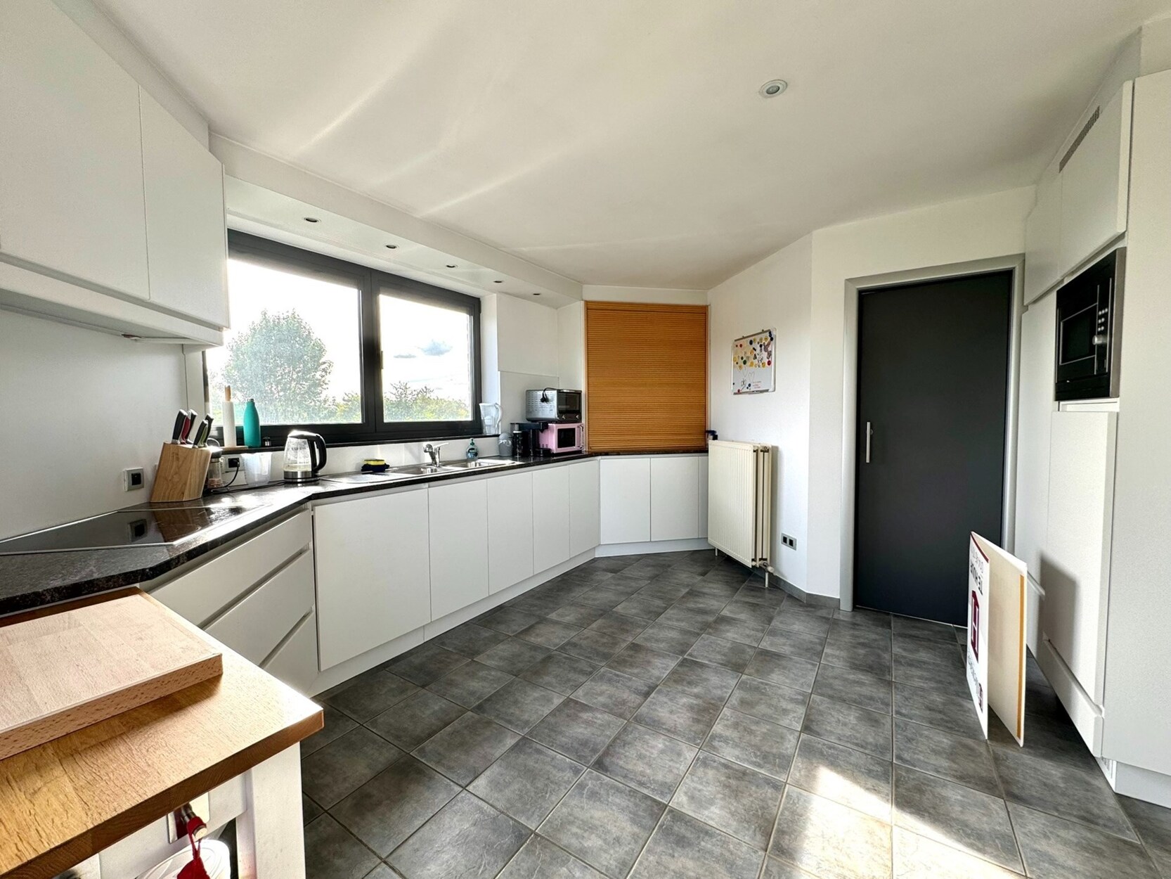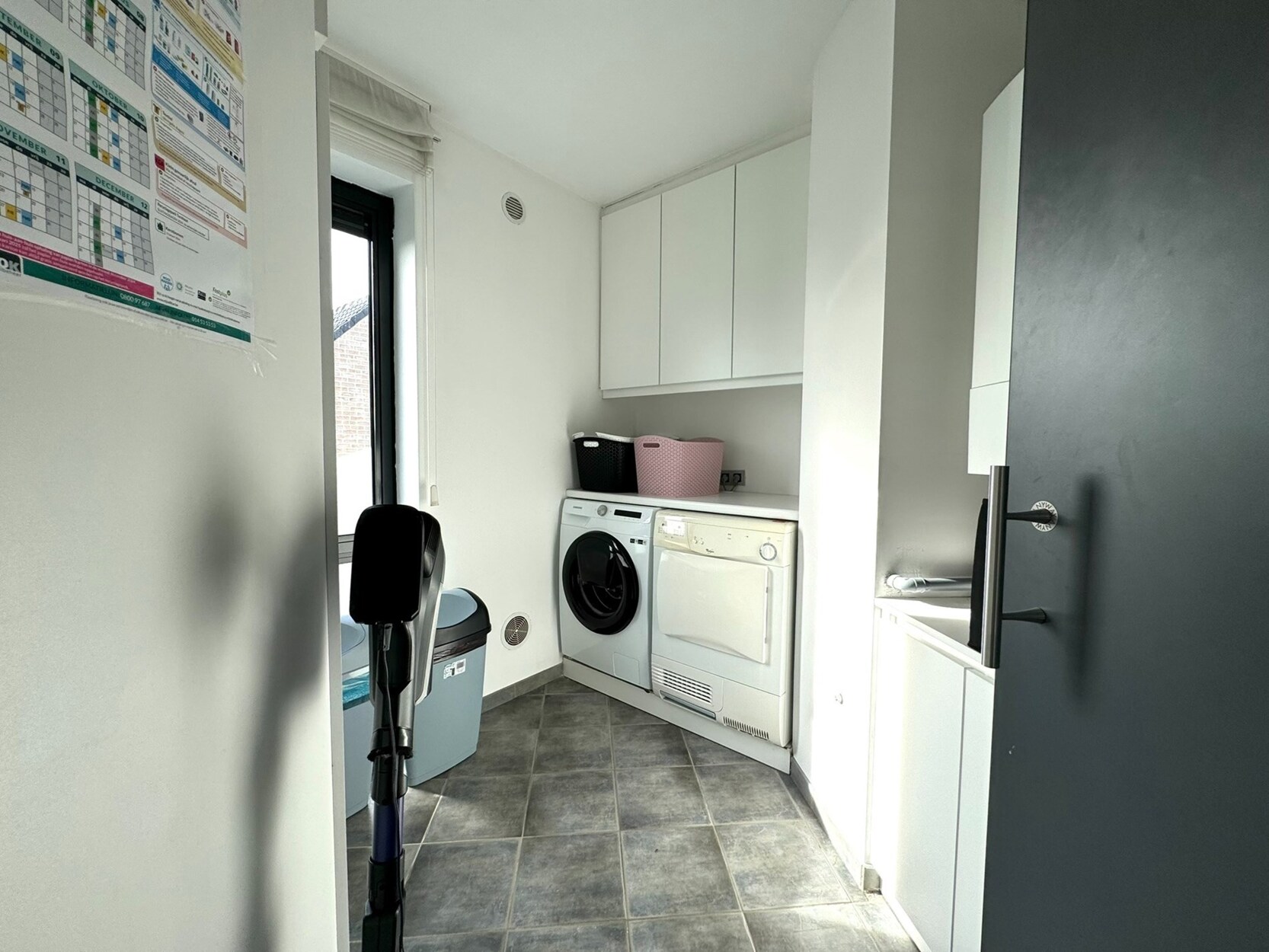 Aansluitend vinden we de volledig ingerichte keuken. Hier is geen gebrek aan kastruimte. De keuken is ingericht met een koelkast, grote vriezer, keramische kookplaat, combi-oven en een nieuwe vaatwasser. In de praktische berging zijn voorzieningen om wasmachine en droogkast te plaatsen.