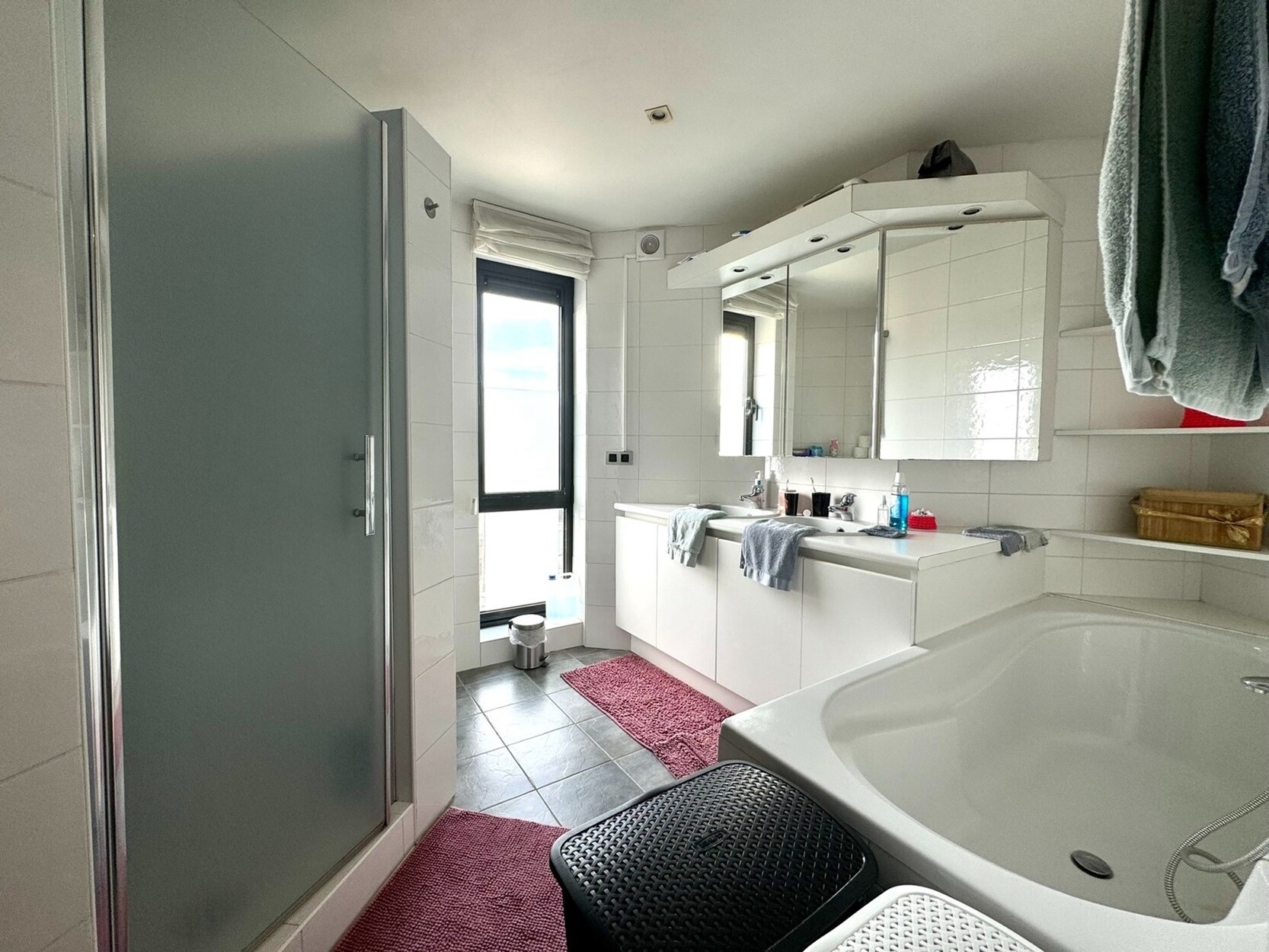 De andere kant van het appartement omvat het slaapgedeelte. Hier tref je nog 2 slaapkamers, ook op parket. De badkamer is ingericht met een ligbad, douche en dubbele wastafel. In de nachthal heb je nog een apart toilet.