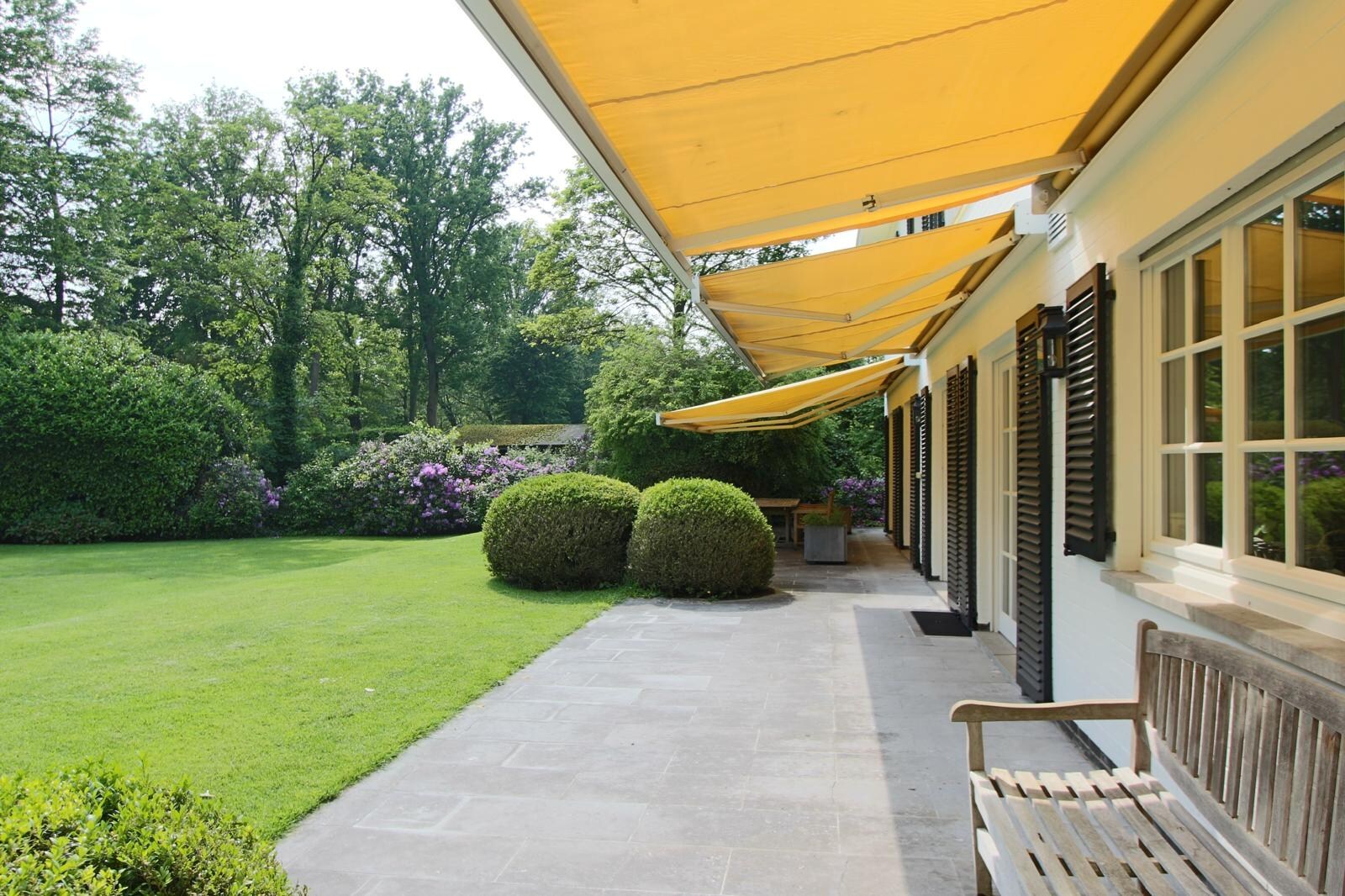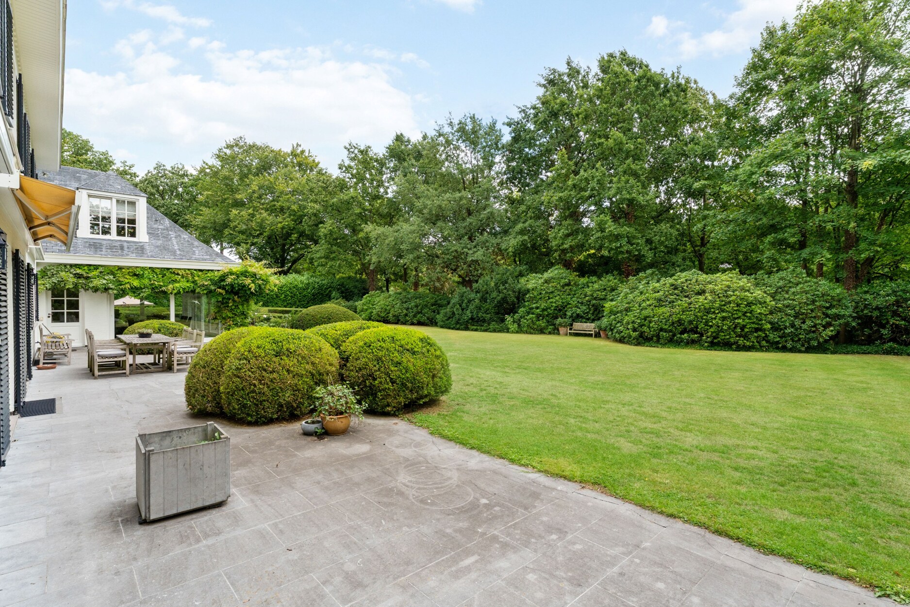 De tuin werd strak en onderhoudsvriendelijk aangelegd met oog voor privacy en rust. De zuidgerichte tuin en terrassen bieden een idyllische omgeving om in alle seizoenen te genieten. Het verwarmde zwembad werd voorzien van een nieuw solardek en een vernieuwde, automatische installatie en ademt een luxueuze hotelsfeer.