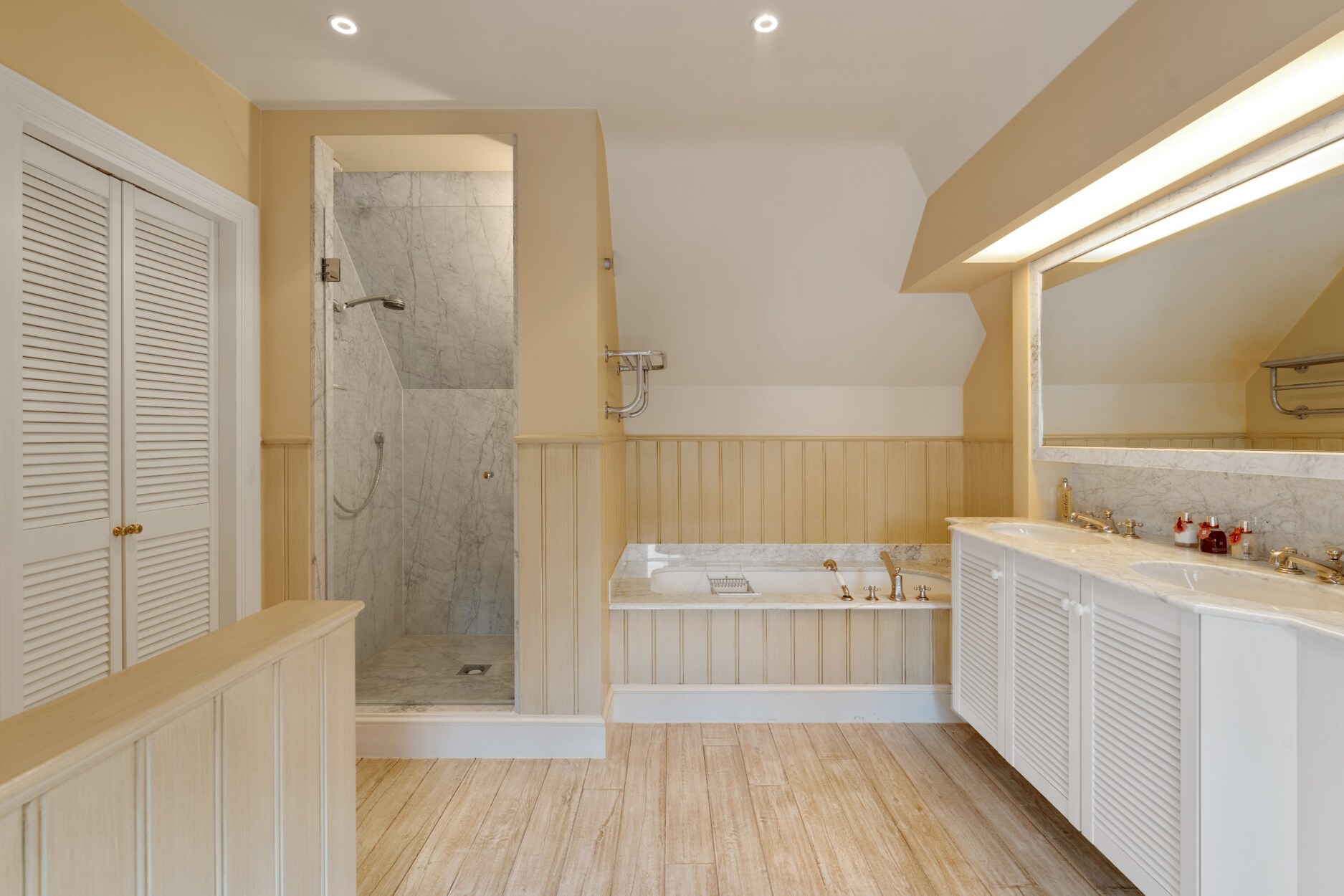De master suite beschikt over een slaapkamer, dressing en ensuite badkamer.
