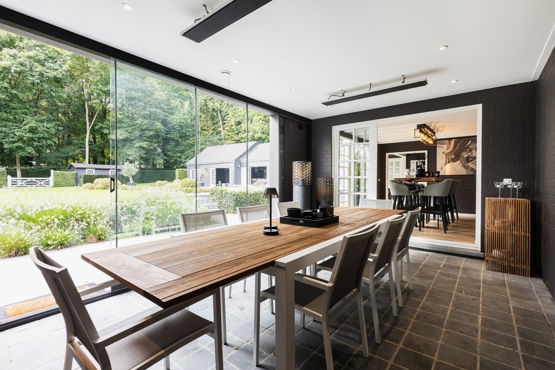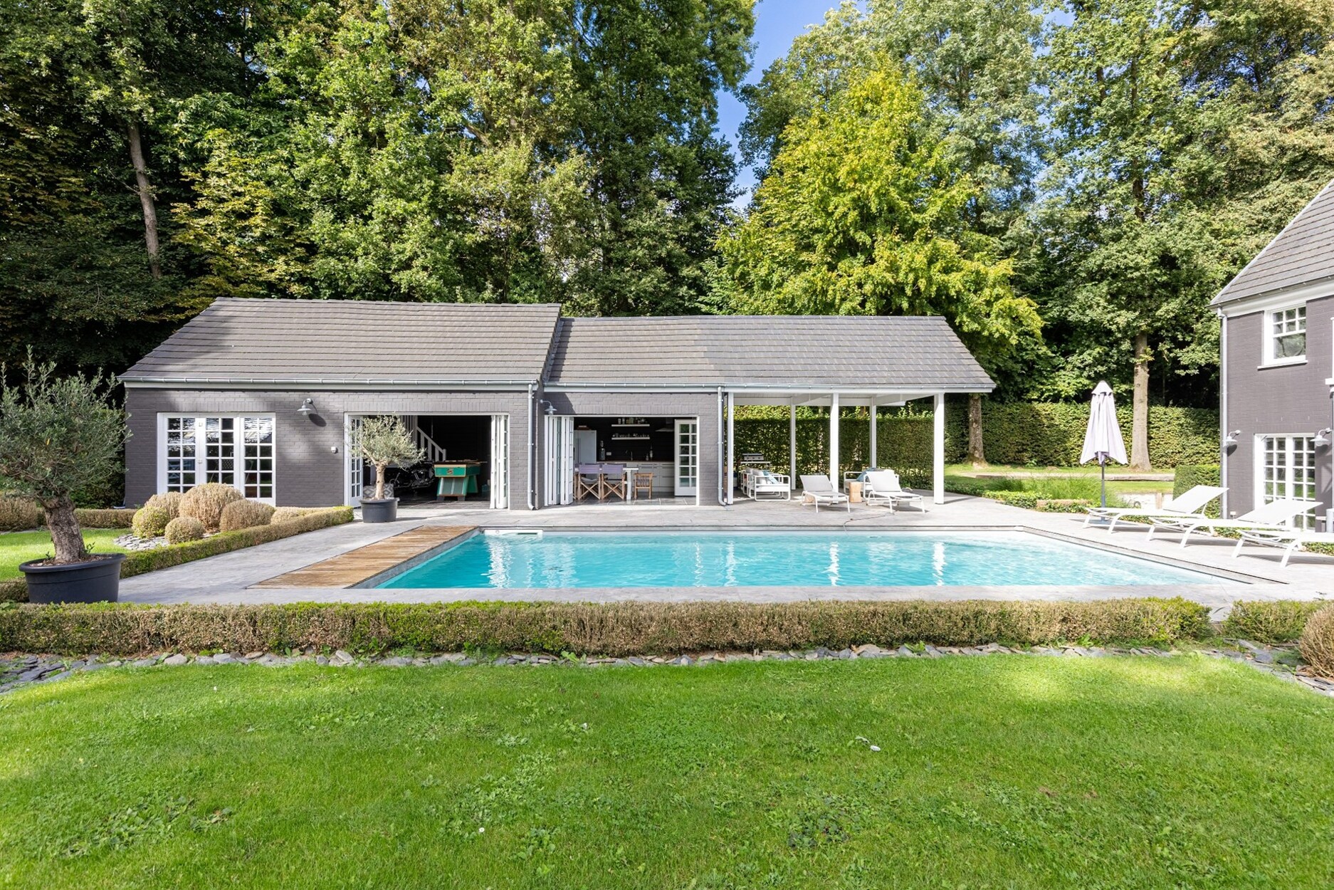 De aangelegde tuin is ingericht rondom brede terrassen, een verwarmd zwembad, een poolhouse van ongeveer 100 m² (leefruimte, open keuken, slaapkamer, doucheruimte, sportruimte) en een pétanquebaan.