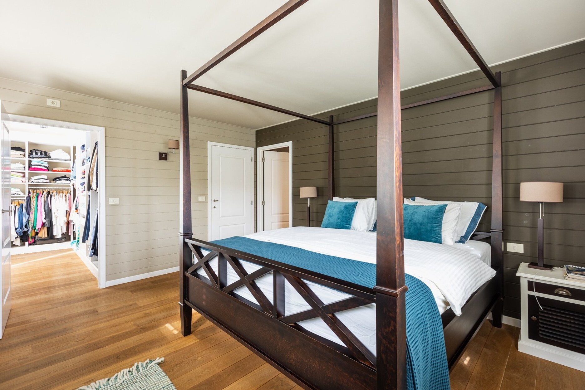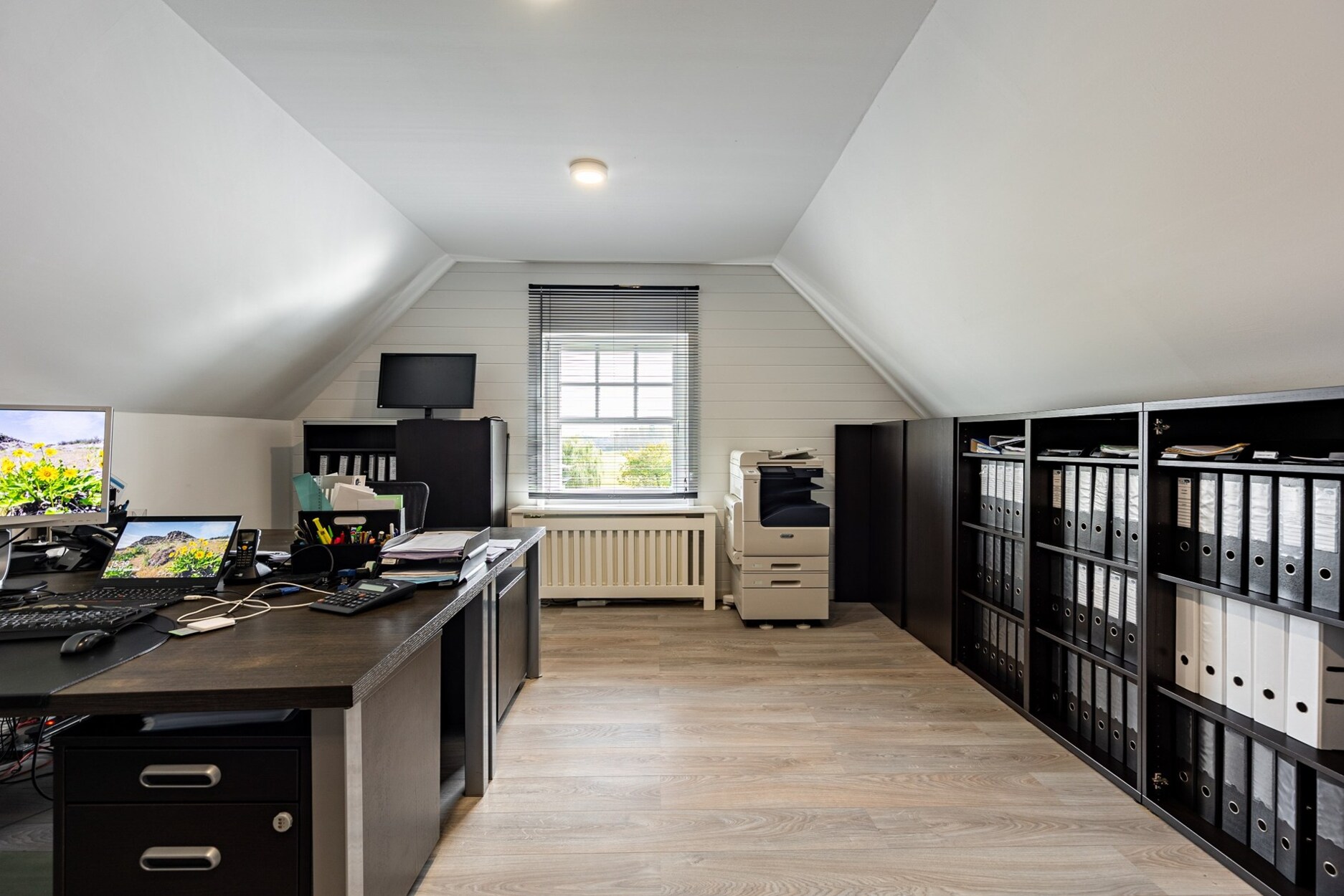 Op de eerste verdieping bevinden zich een ouderslaapkamer met dressing en volledige badkamer met toegang tot een privéterras, twee slaapkamers en een aparte doucheruimte. Op het tweede niveau zijn er twee slaapkamers (momenteel in gebruik als kantoren) met de mogelijkheid om een extra badkamer te creëren.