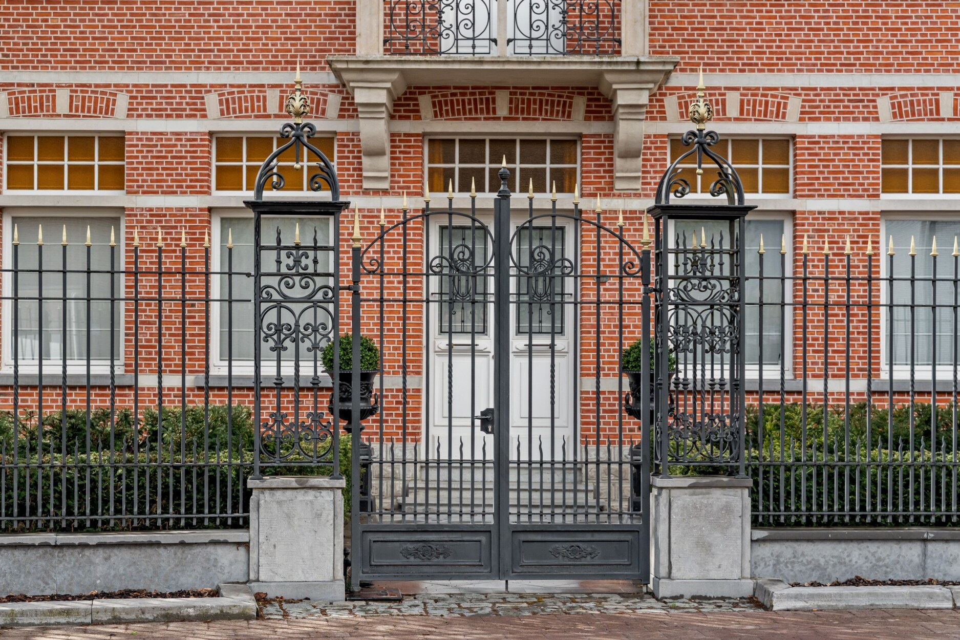 Het perceel is volledig omheind en toegankelijk via een statig hekwerk, wat garant staat voor optimale privacy en discretie. Er is ruime parkeergelegenheid voorzien voor meerdere wagens, zowel voor bewoners als gasten.