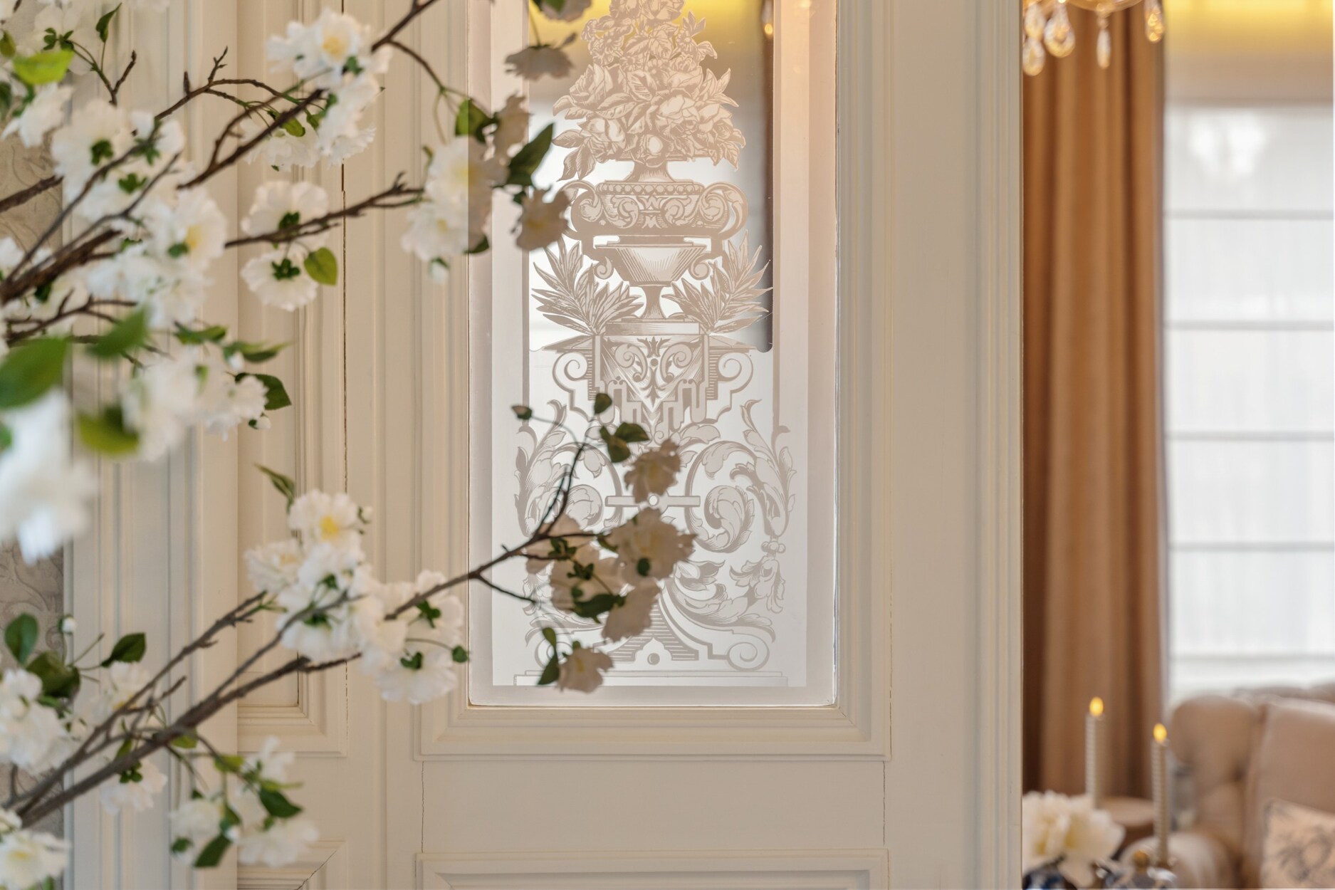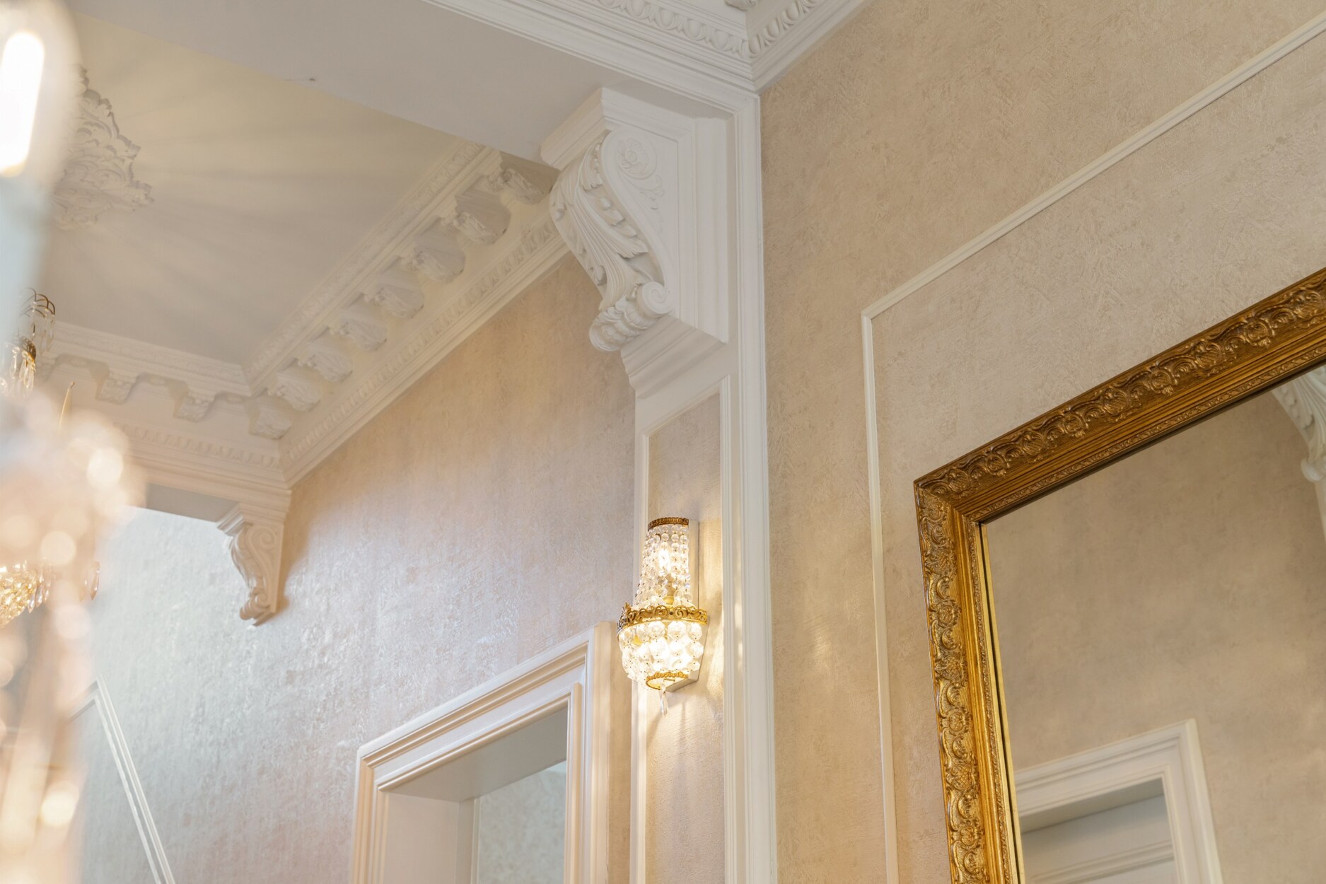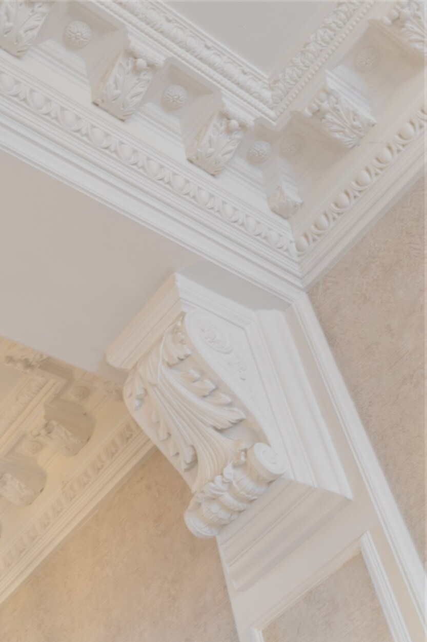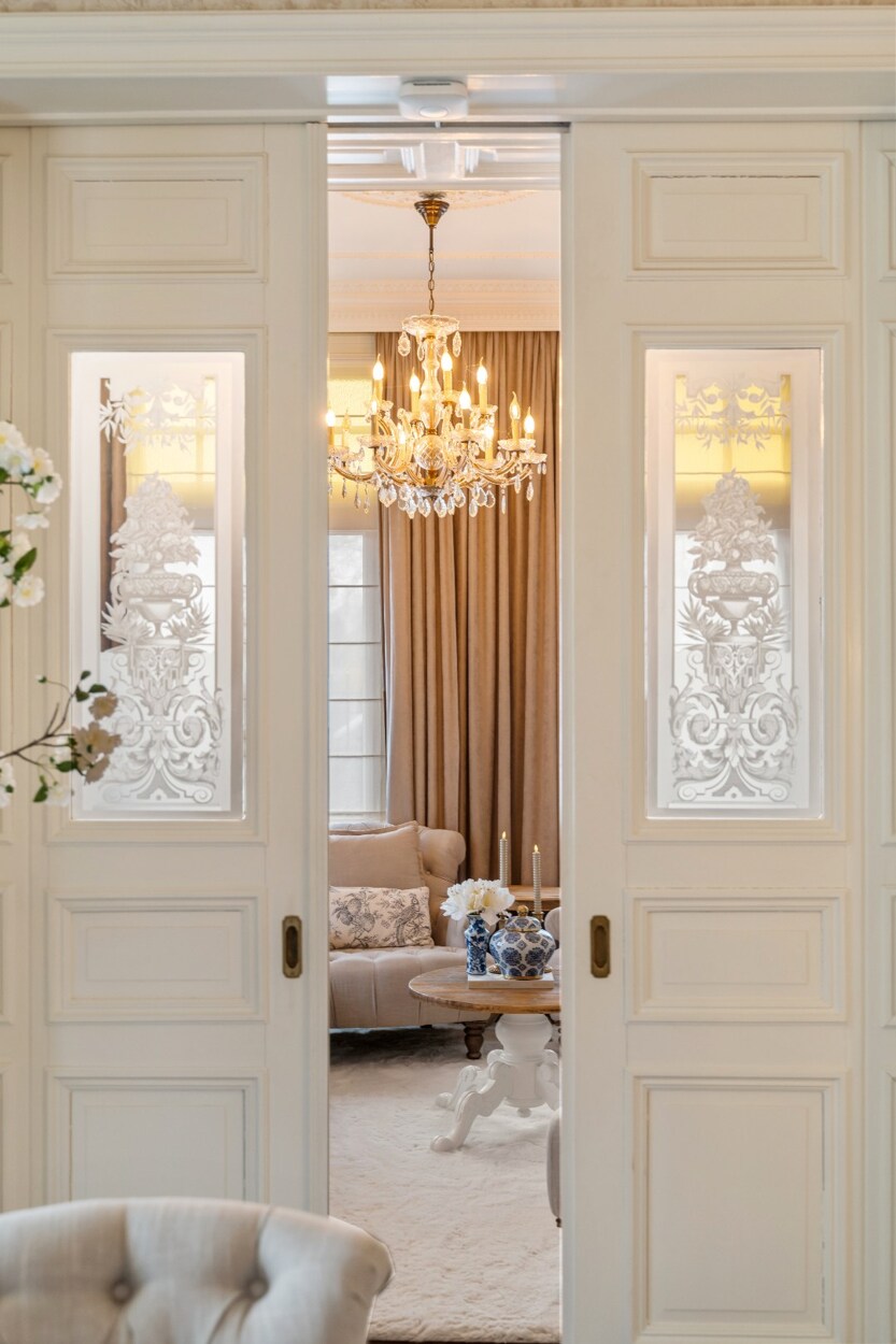 Bij het betreden van de woning wordt u verwelkomd in een majestueuze inkomhal die meteen de toon zet. Van hieruit bereikt u enerzijds de elegante dubbele leefruimte met authentieke ensuite deuren, en anderzijds een ruime kantoorruimte met haard, ideaal voor wie wonen en werken wenst te combineren.