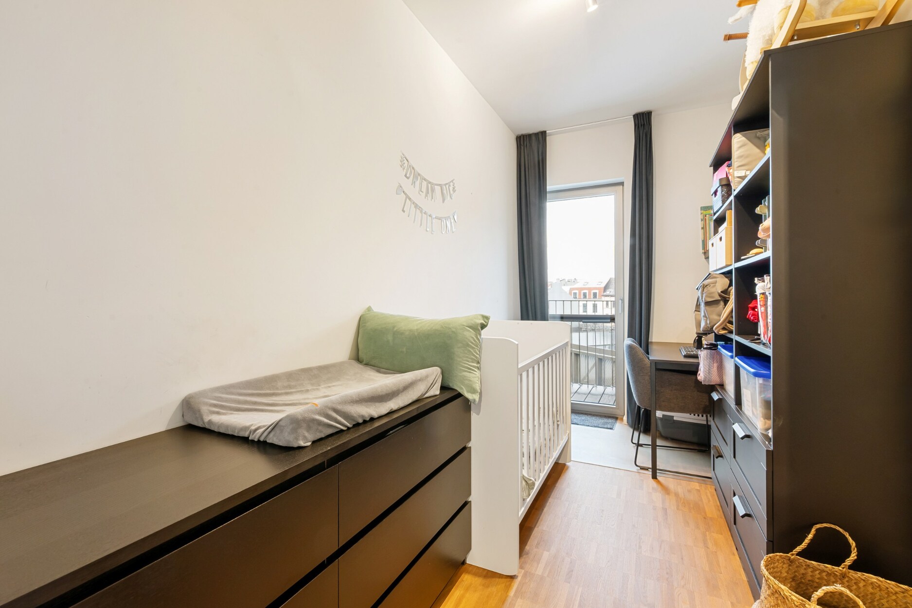 • Doorlopend parket in leefruimte, hal en slaapkamers