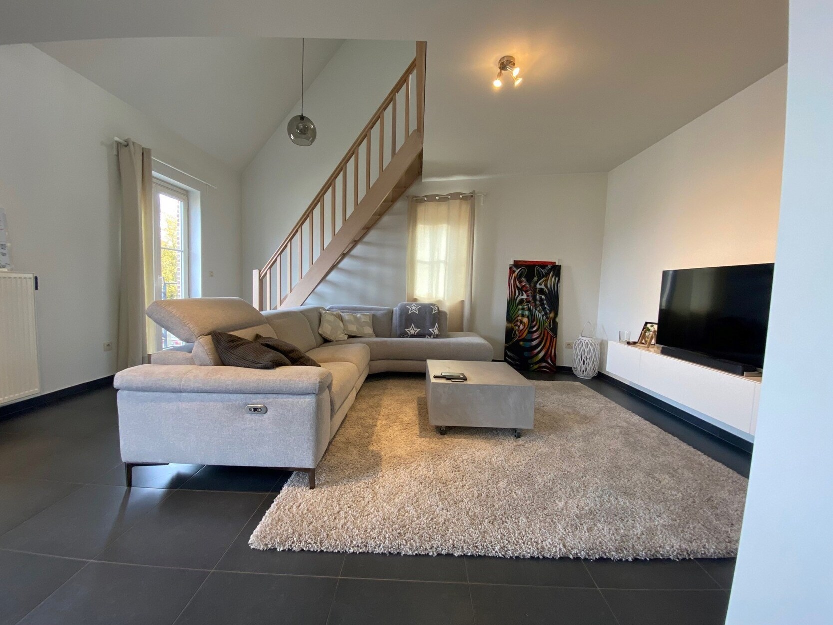 De huur omvat ook een overdekte staanplaats achteraan en een ruime private kelderberging.