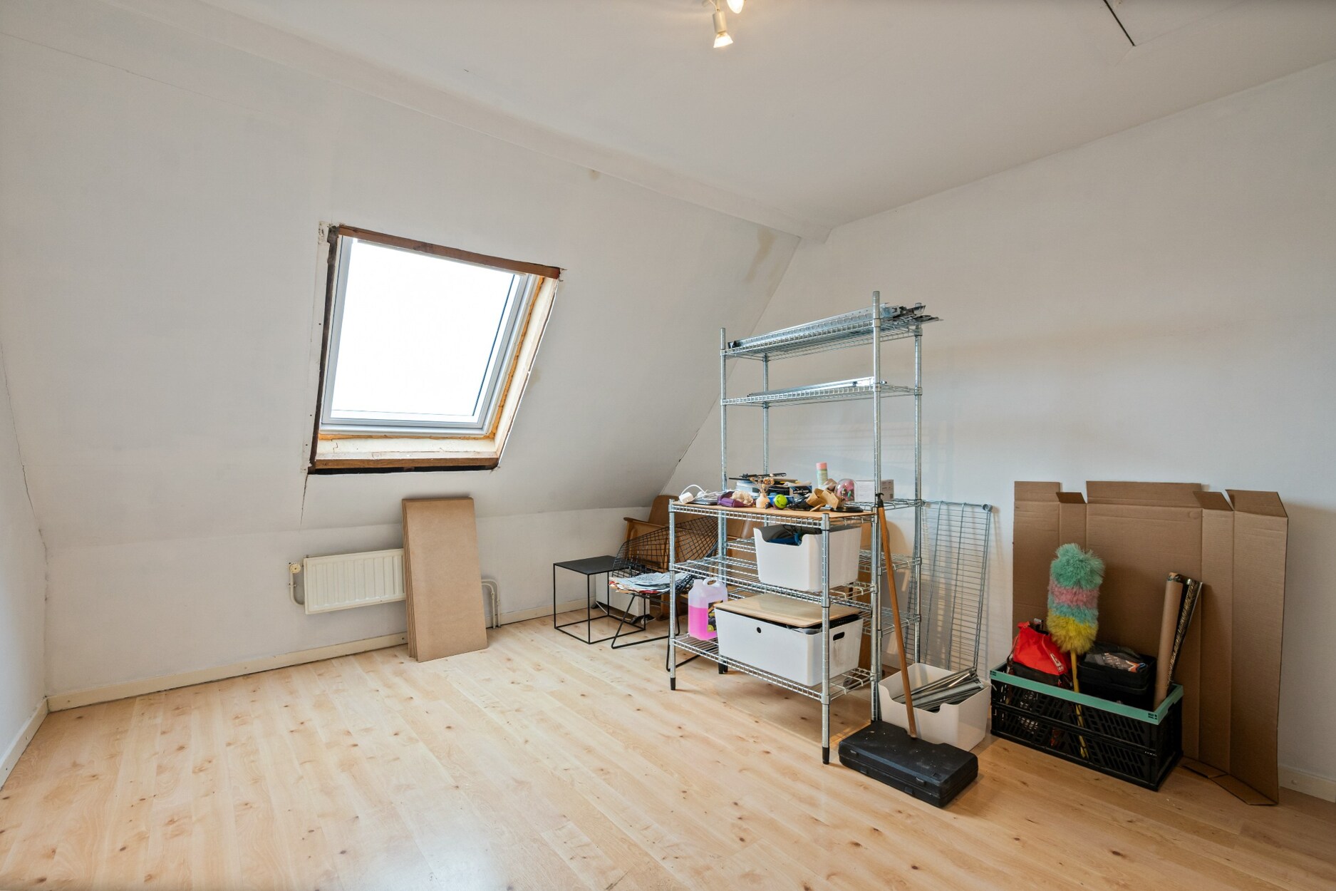 Via een zolderluik bereik je de zolder, die perfect dienst doet als extra bergruimte.