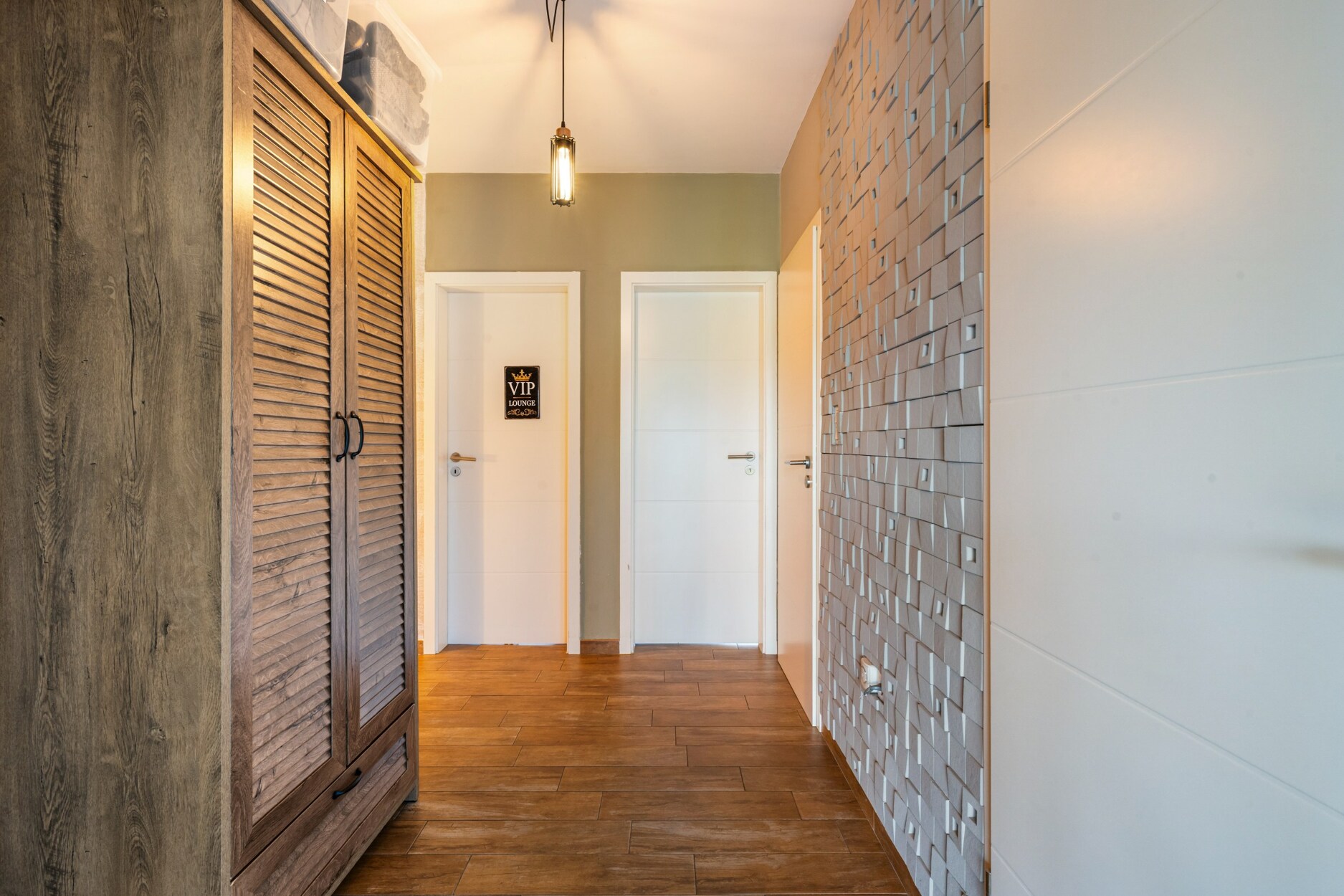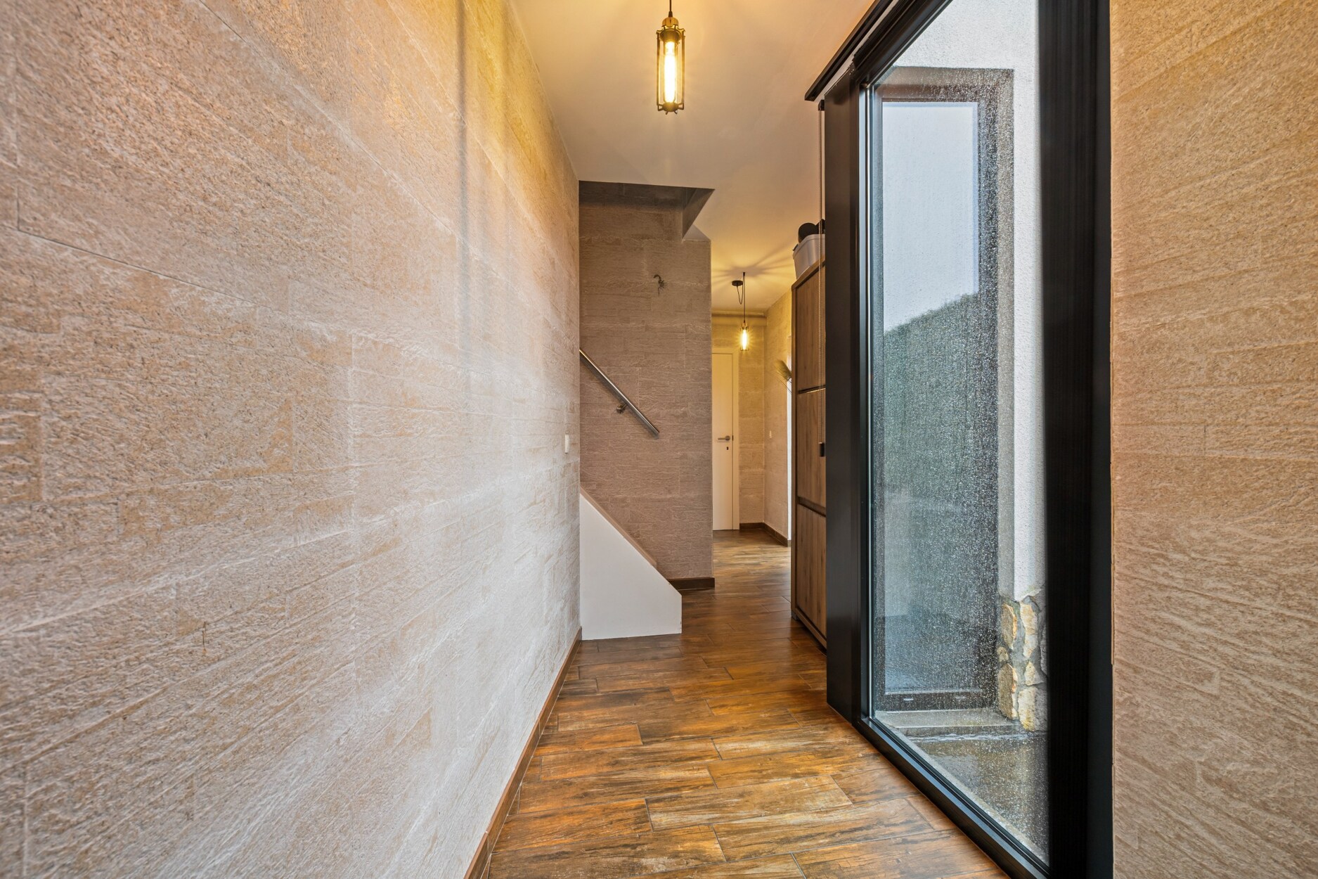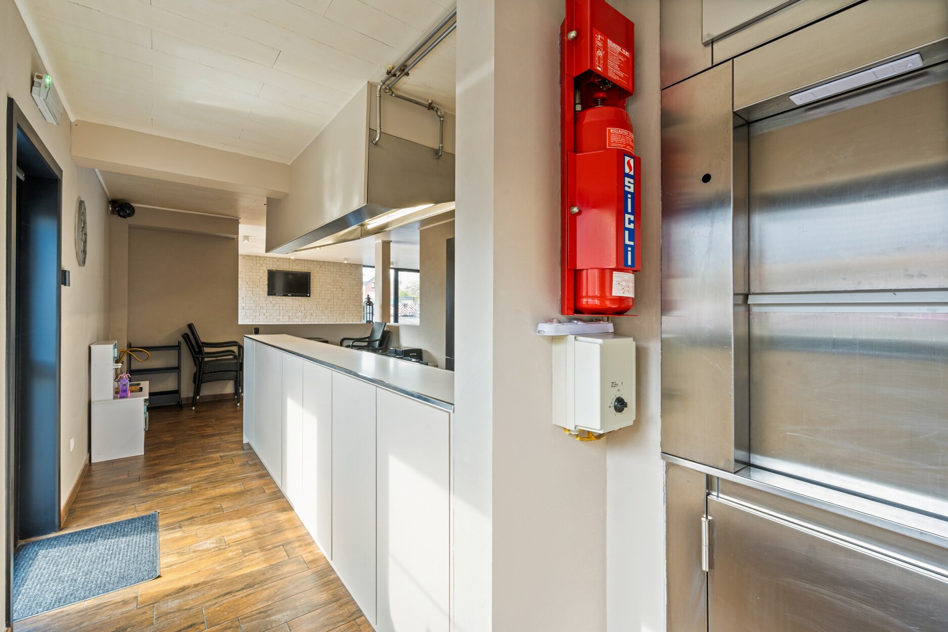 De woning beschikt over een bijzonder grote kelder die zowel van binnenuit als via een aparte buitentoegang bereikbaar is. Hier bevinden zich meerdere opslagruimtes en een volledig geluiddichte muziekkamer, ideaal voor hobby’s of professioneel gebruik. Dankzij de ingebouwde keukenlift is er een rechtstreekse verbinding tussen de kelder en de industriële RVS‑keuken op het gelijkvloers, wat perfect is voor horecadoeleinden.